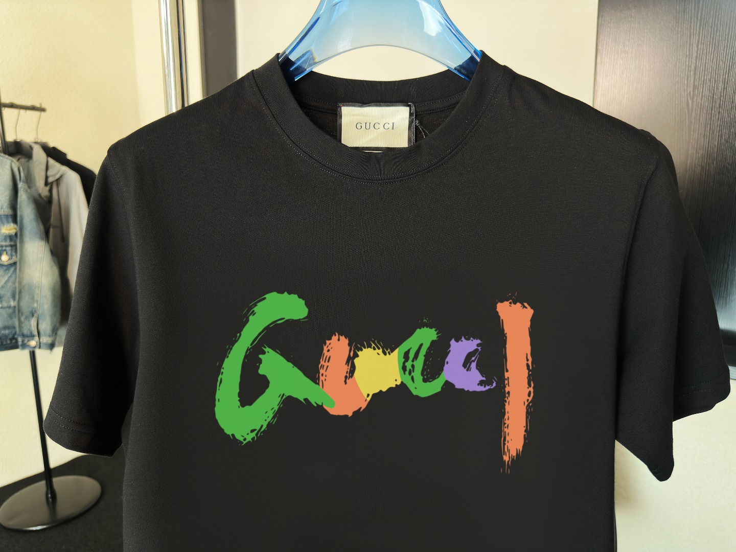 这款衣服是AAAAA 1:1 质量 (非常棒). 使用了和原版一模一样的材料. 商标部分也保持了和古奇/Gucci一样. 图片拍摄是实物衣服拍摄, 您所收到的实物保证和我们图片一模一样.