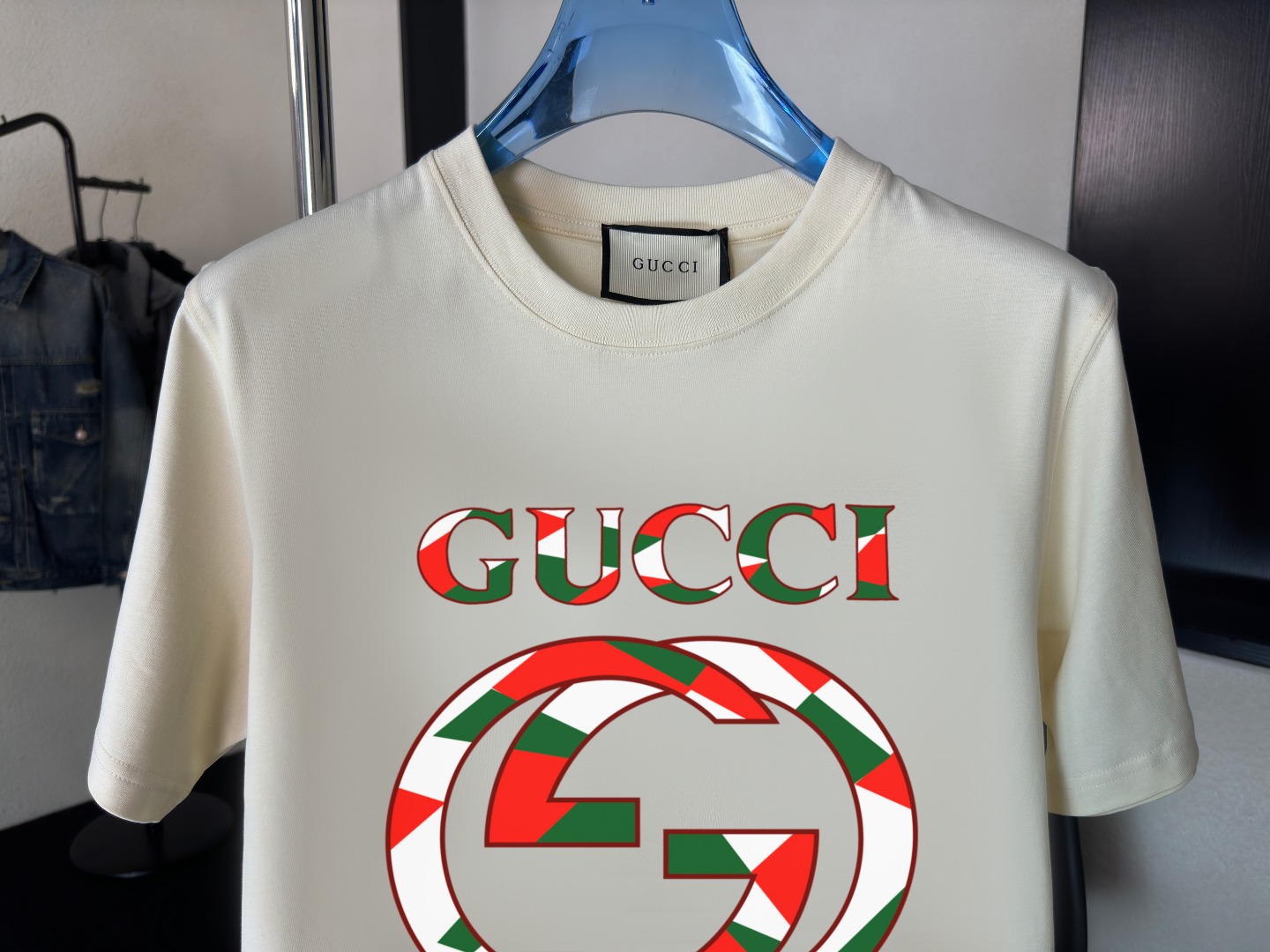 这款衣服是AAAAA 1:1 质量 (非常棒). 使用了和原版一模一样的材料. 商标部分也保持了和古奇/Gucci一样. 图片拍摄是实物衣服拍摄, 您所收到的实物保证和我们图片一模一样.