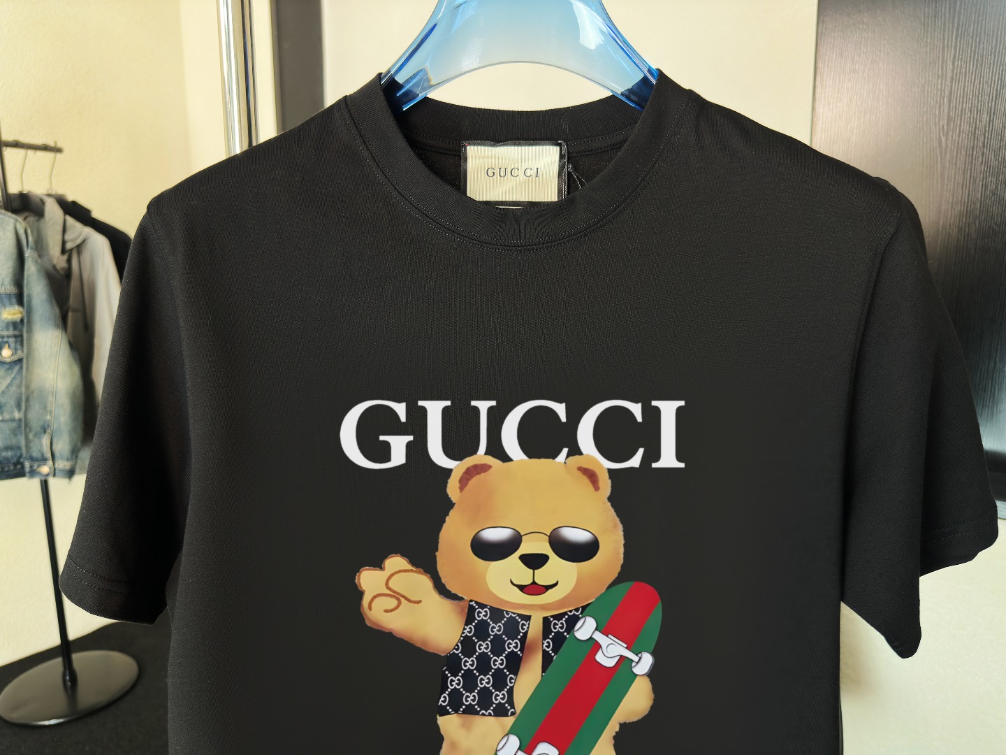 这款衣服是AAAAA 1:1 质量 (非常棒). 使用了和原版一模一样的材料. 商标部分也保持了和古奇/Gucci一样. 图片拍摄是实物衣服拍摄, 您所收到的实物保证和我们图片一模一样.