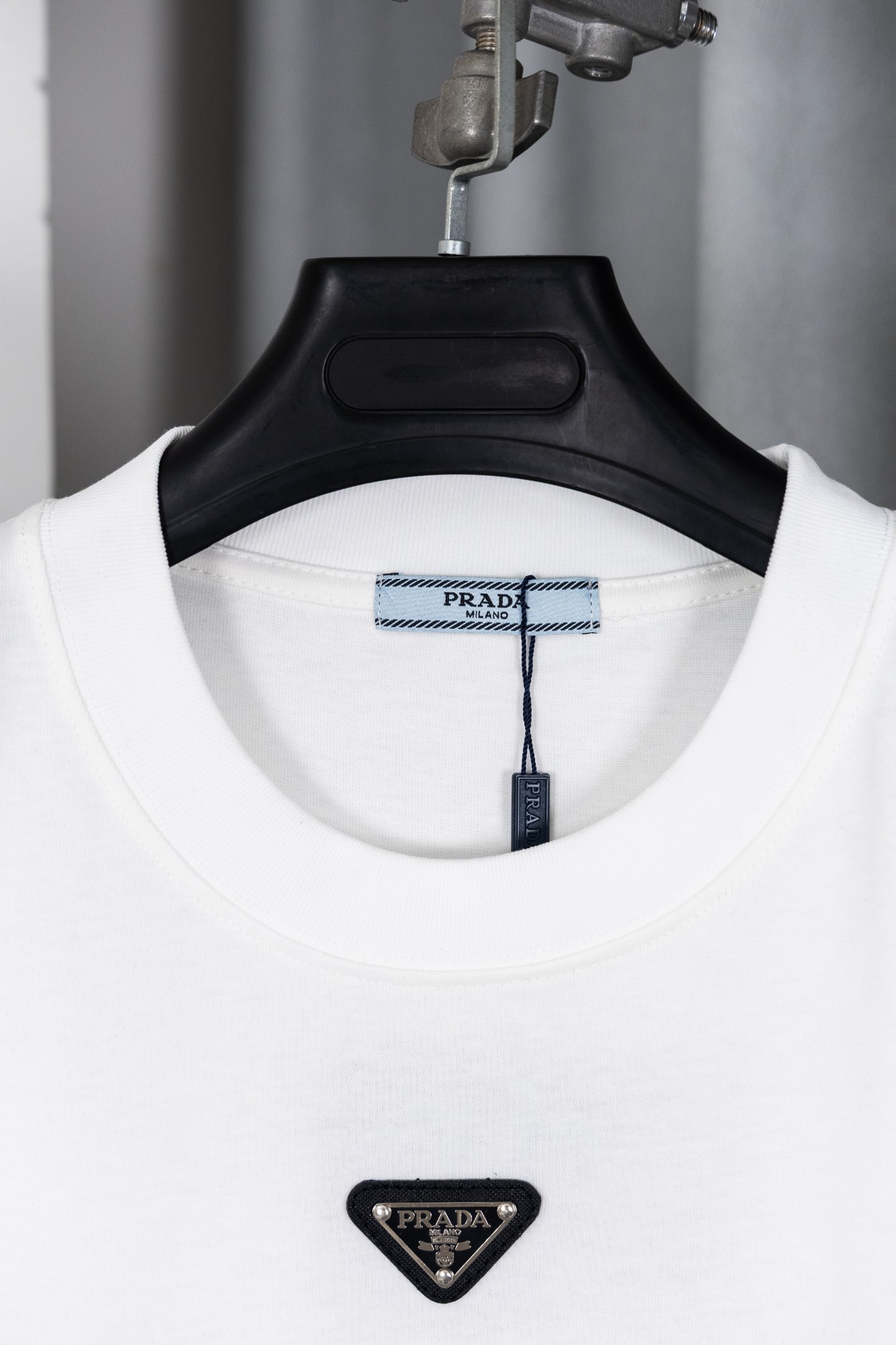 这款衣服是AAAAA 1:1 质量 (非常棒). 使用了和原版一模一样的材料. 商标部分也保持了和普拉达/Prada一样. 图片拍摄是实物衣服拍摄, 您所收到的实物保证和我们图片一模一样.