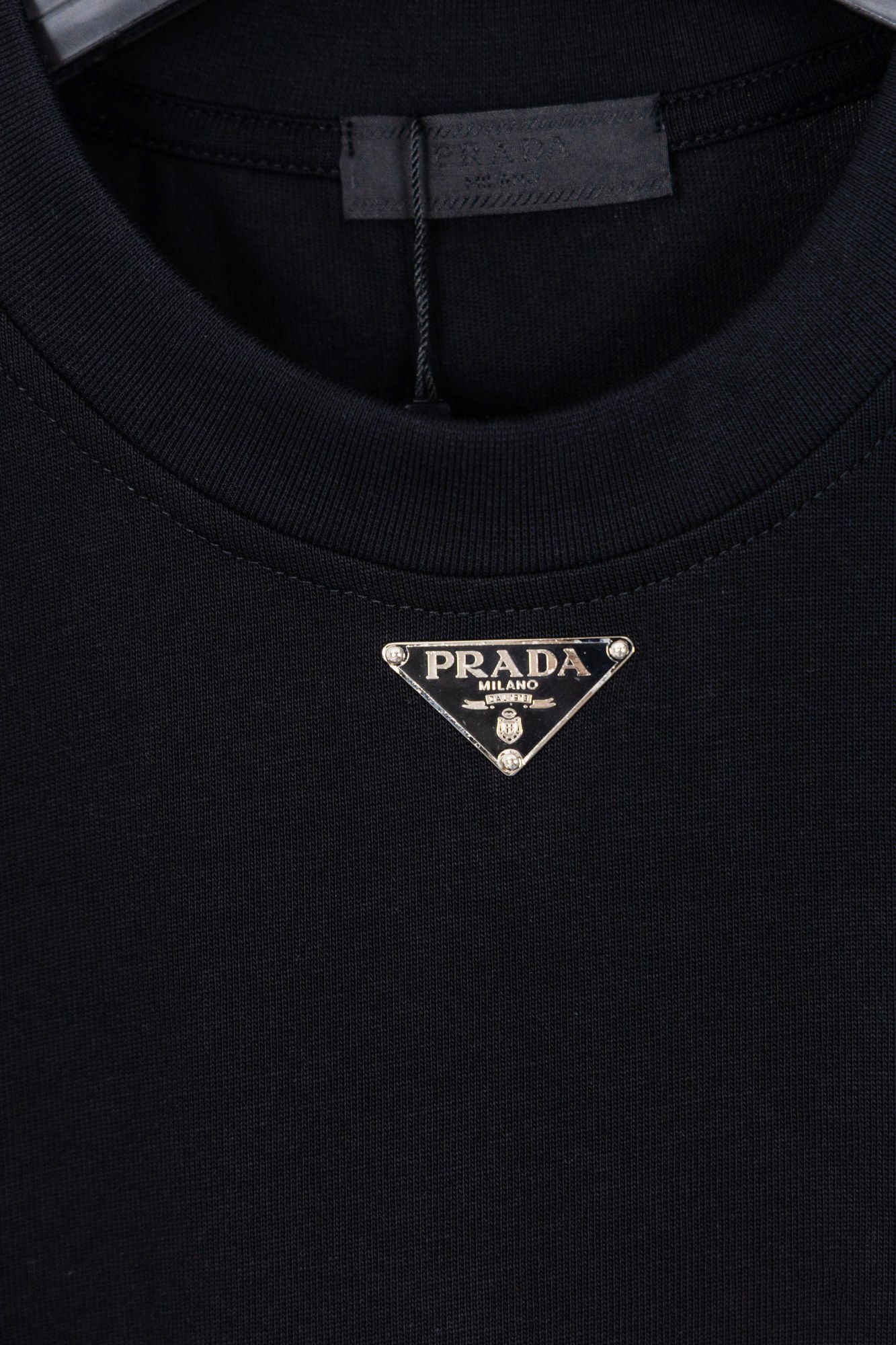 这款衣服是AAAAA 1:1 质量 (非常棒). 使用了和原版一模一样的材料. 商标部分也保持了和普拉达/Prada一样. 图片拍摄是实物衣服拍摄, 您所收到的实物保证和我们图片一模一样.