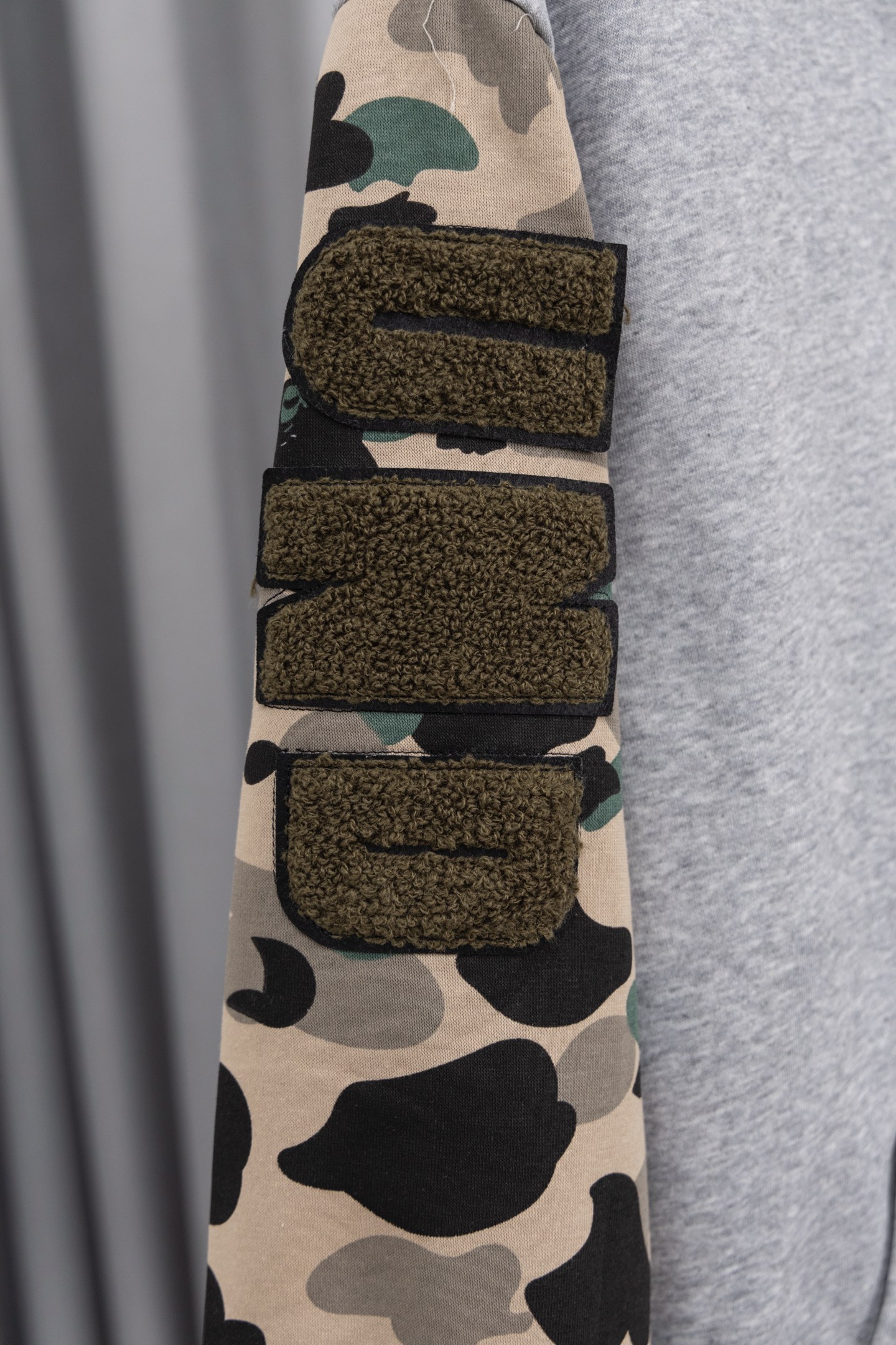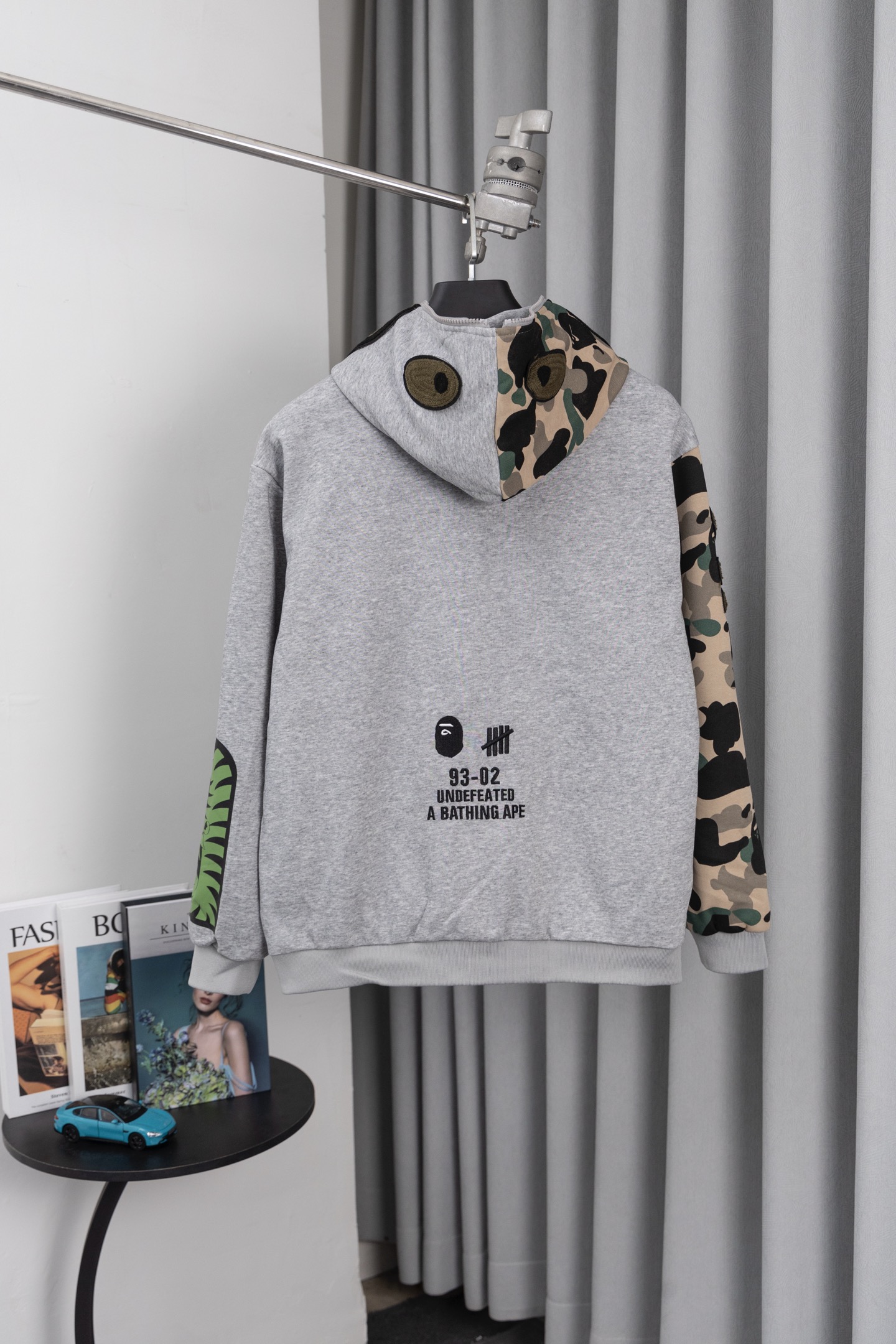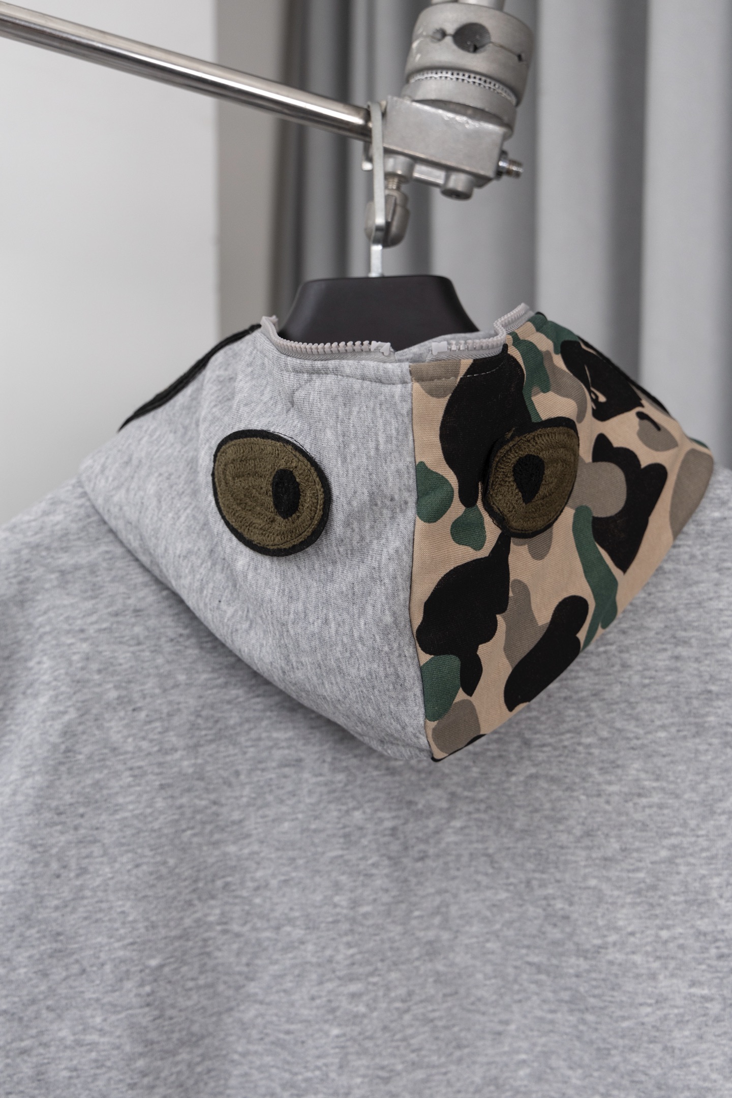 这款衣服是AAAAA 1:1 质量 (非常棒). 使用了和原版一模一样的材料. 商标部分也保持了和Bape一样. 图片拍摄是实物衣服拍摄, 您所收到的实物保证和我们图片一模一样.