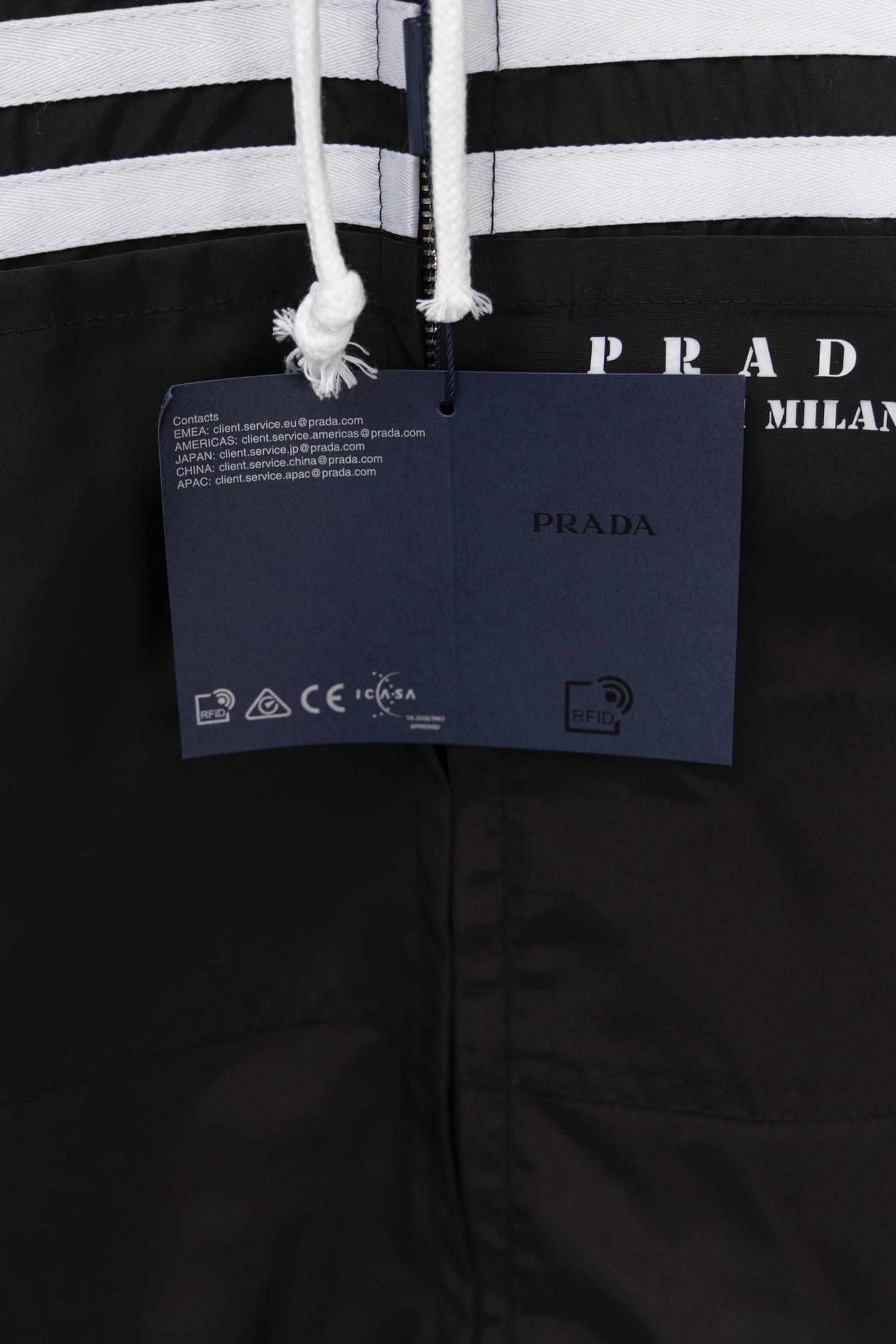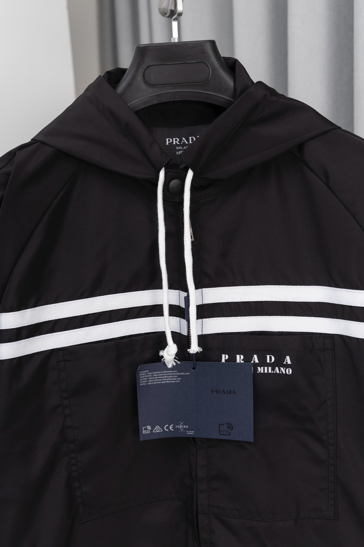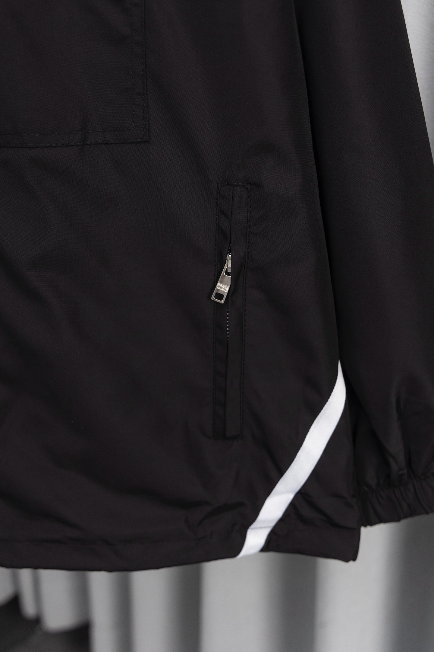 这款衣服是AAAAA 1:1 质量 (非常棒). 使用了和原版一模一样的材料. 商标部分也保持了和普拉达/Prada一样. 图片拍摄是实物衣服拍摄, 您所收到的实物保证和我们图片一模一样.