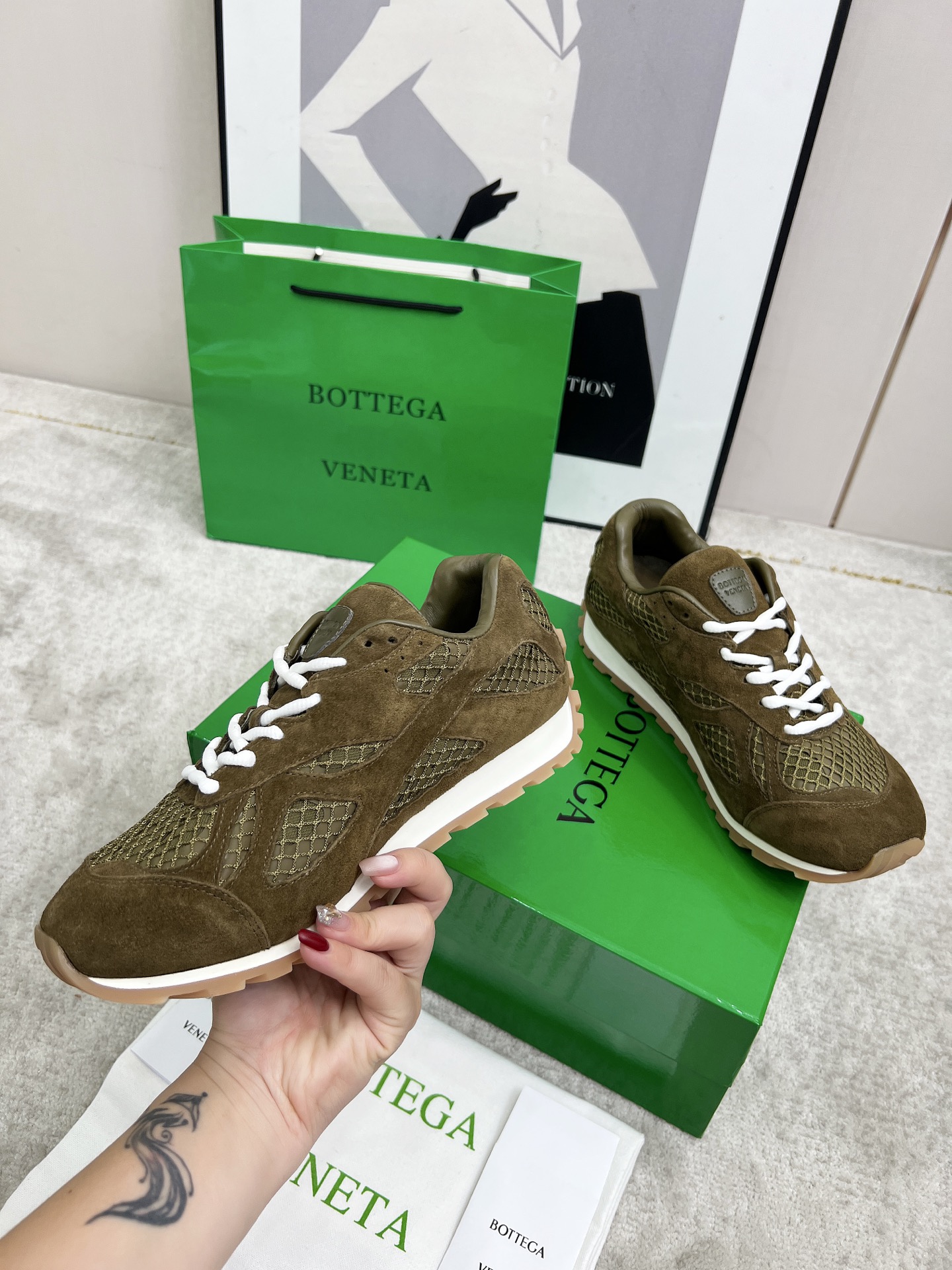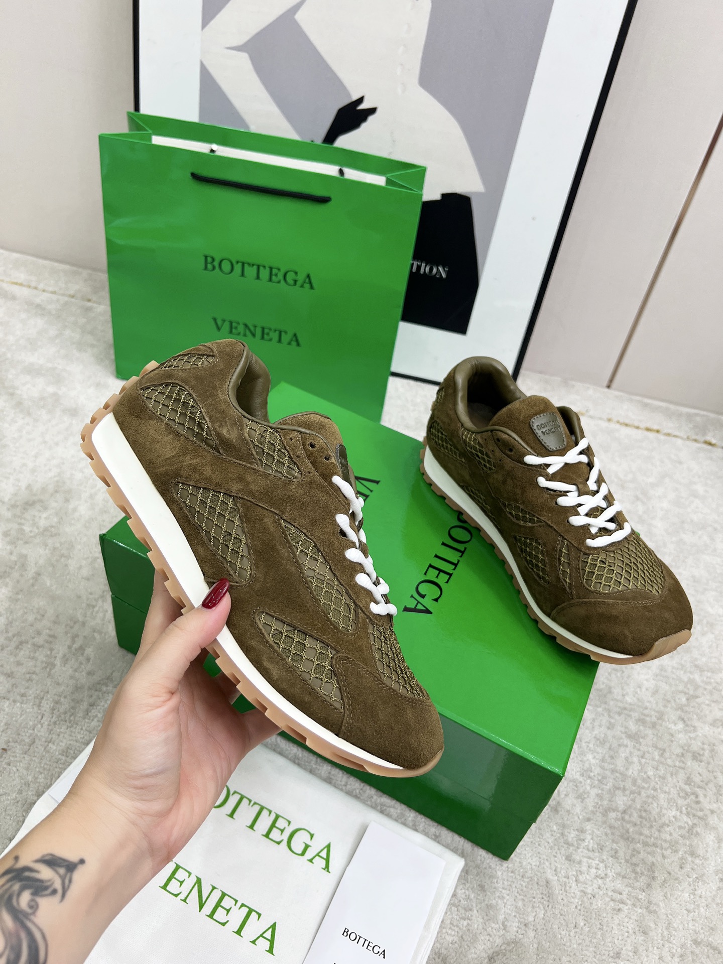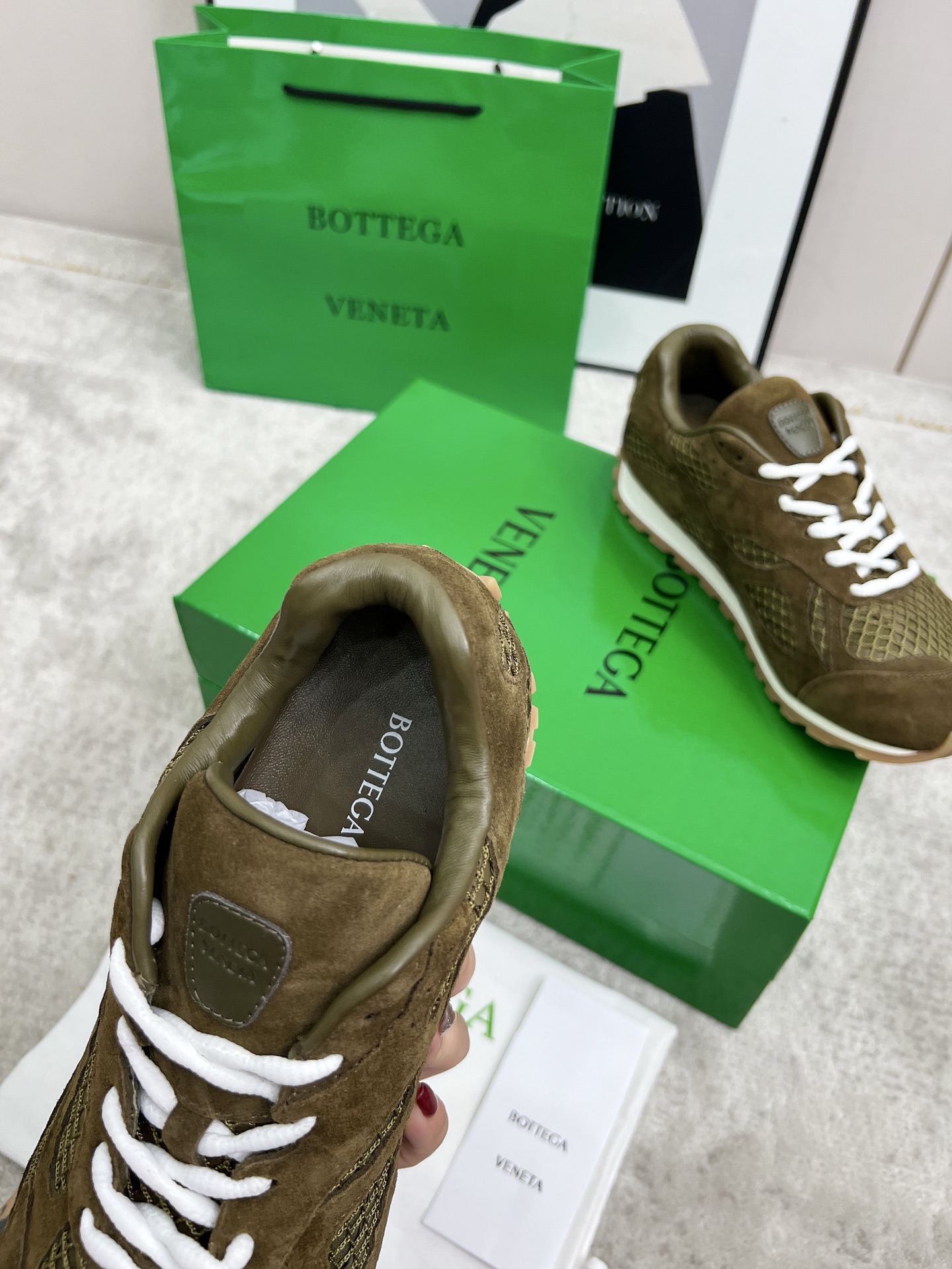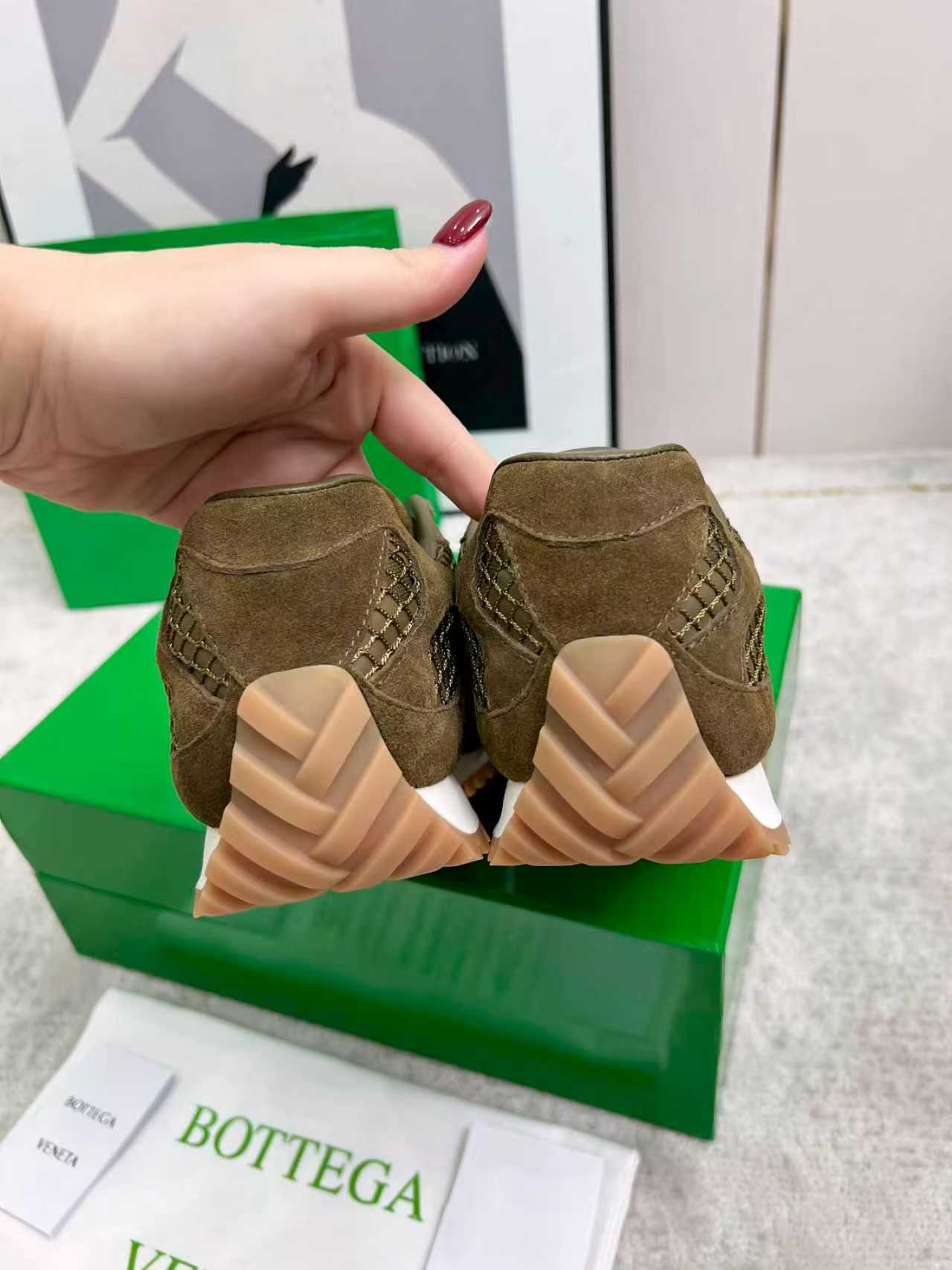 这款鞋子是AAAAA 1:1 质量 (非常棒). 使用了和原版一模一样的材料. 商标部分也保持了和葆蝶家/Bottega Veneta一样. 图片拍摄是实物鞋子拍摄, 您所收到的实物保证和我们图片一模一样.