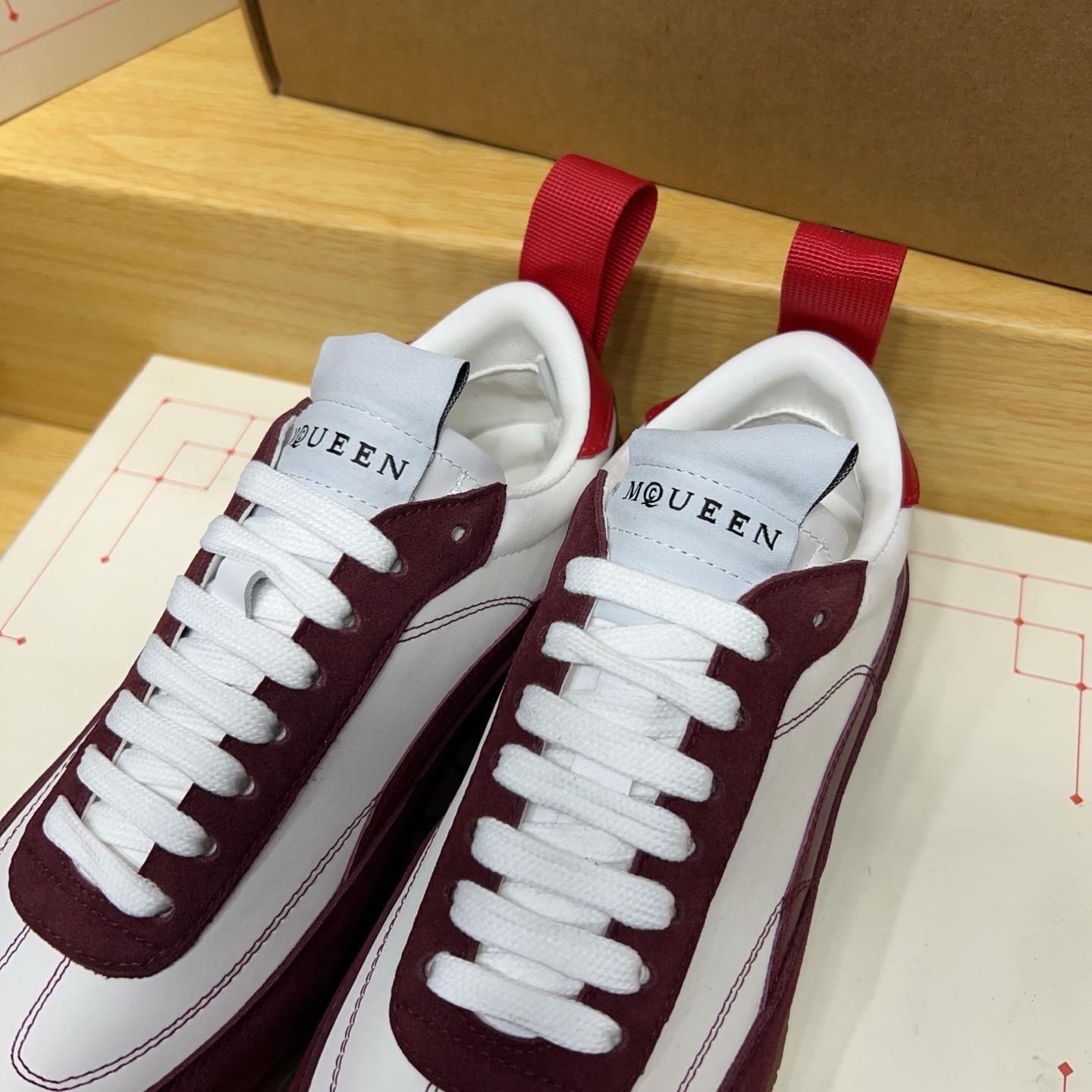 这款鞋子是AAAAA 1:1 质量 (非常棒). 使用了和原版一模一样的材料. 商标部分也保持了和亚历山大·麦昆/McQueen一样. 图片拍摄是实物鞋子拍摄, 您所收到的实物保证和我们图片一模一样.
