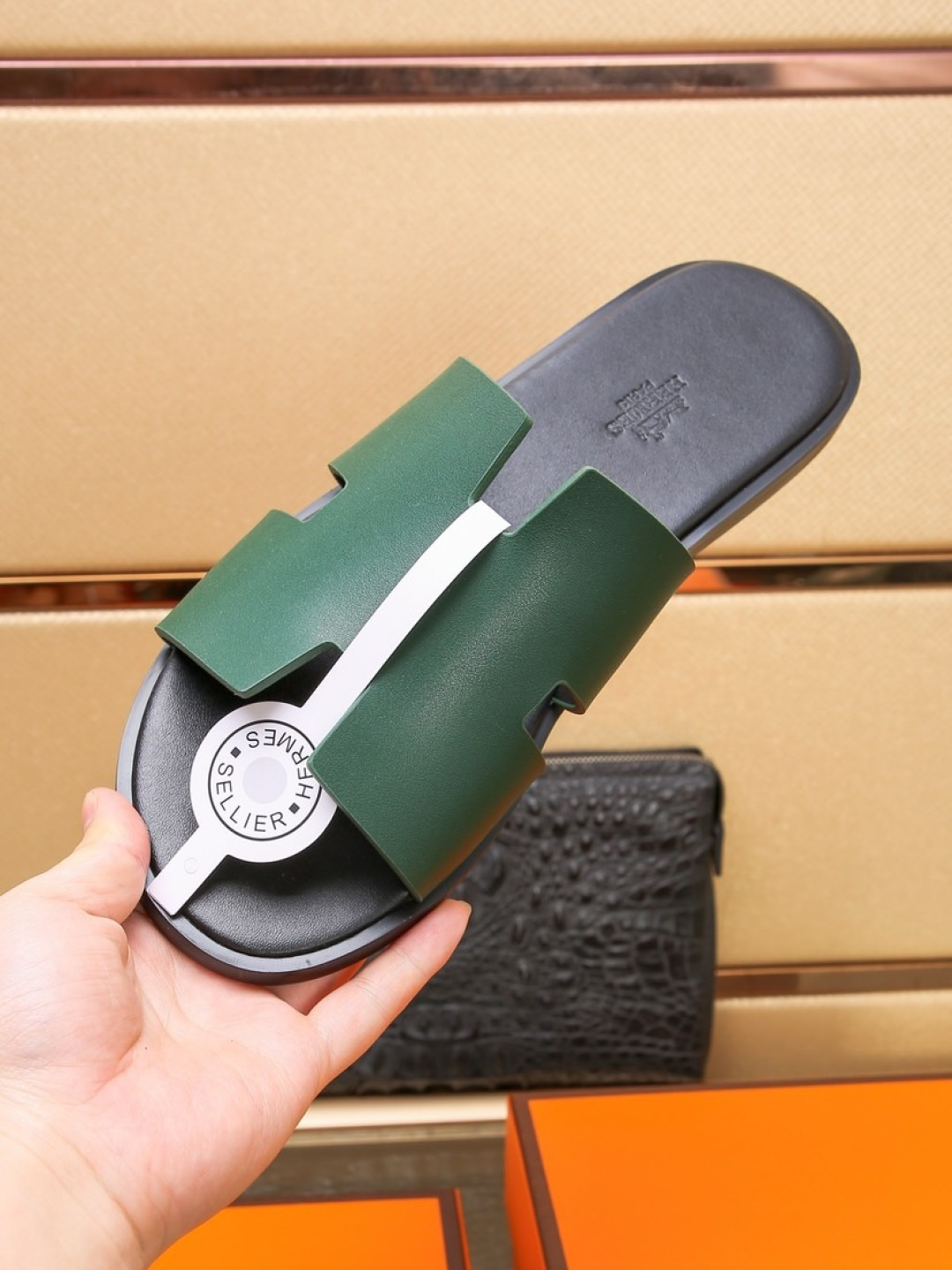 这款鞋子是AAAAA 1:1 质量 (非常棒). 使用了和原版一模一样的材料. 商标部分也保持了和爱马仕/Hermes一样. 图片拍摄是实物鞋子拍摄, 您所收到的实物保证和我们图片一模一样.