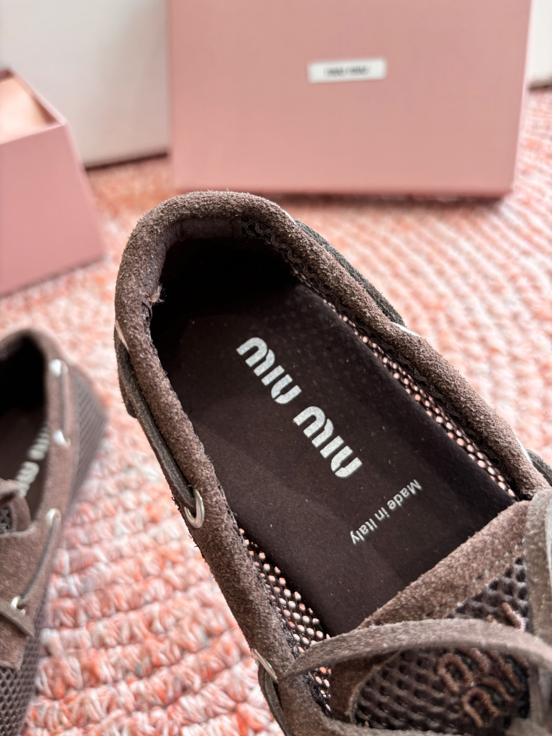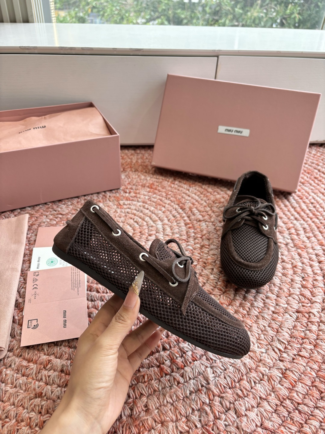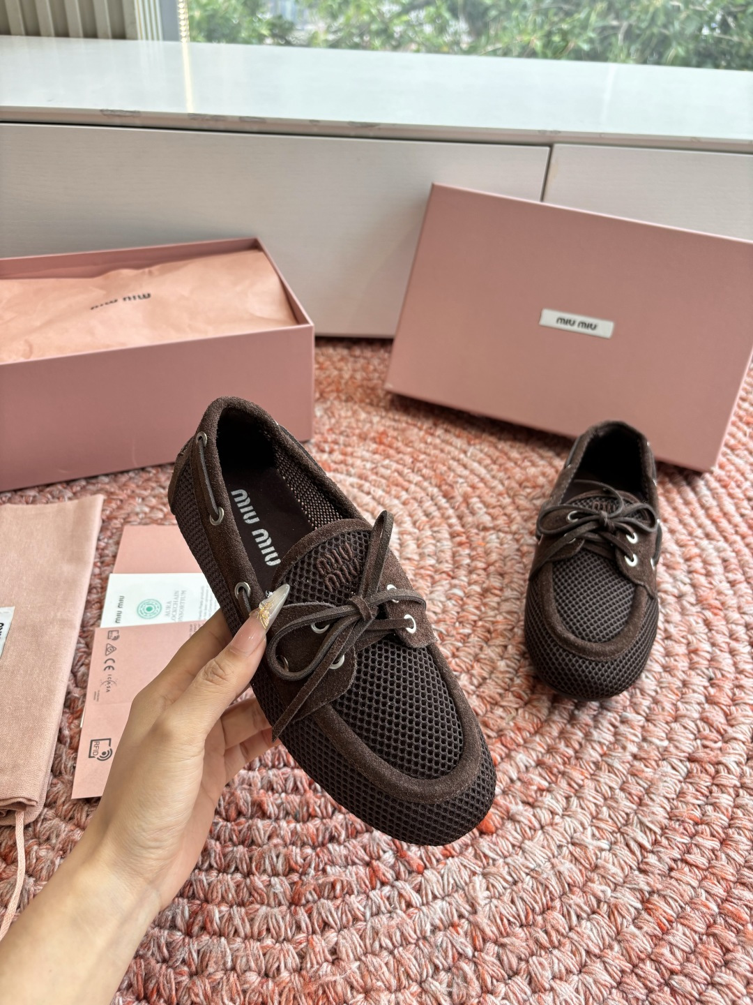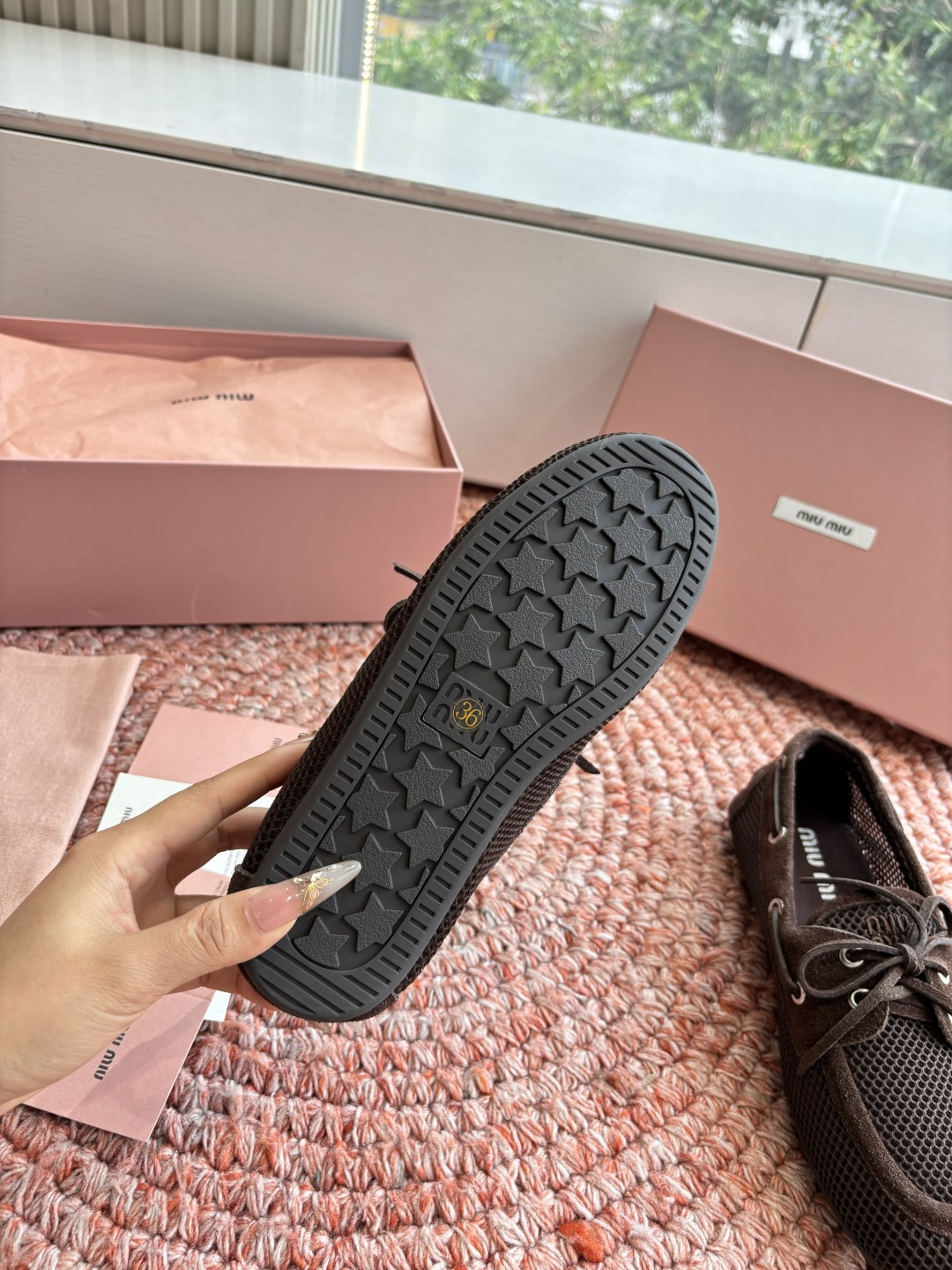 这款鞋子是AAAAA 1:1 质量 (非常棒). 使用了和原版一模一样的材料. 商标部分也保持了和缪缪/Miu Miu一样. 图片拍摄是实物鞋子拍摄, 您所收到的实物保证和我们图片一模一样.