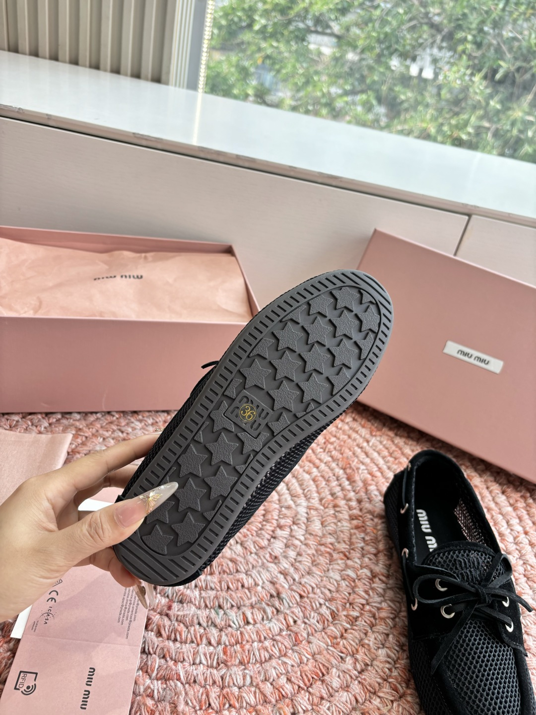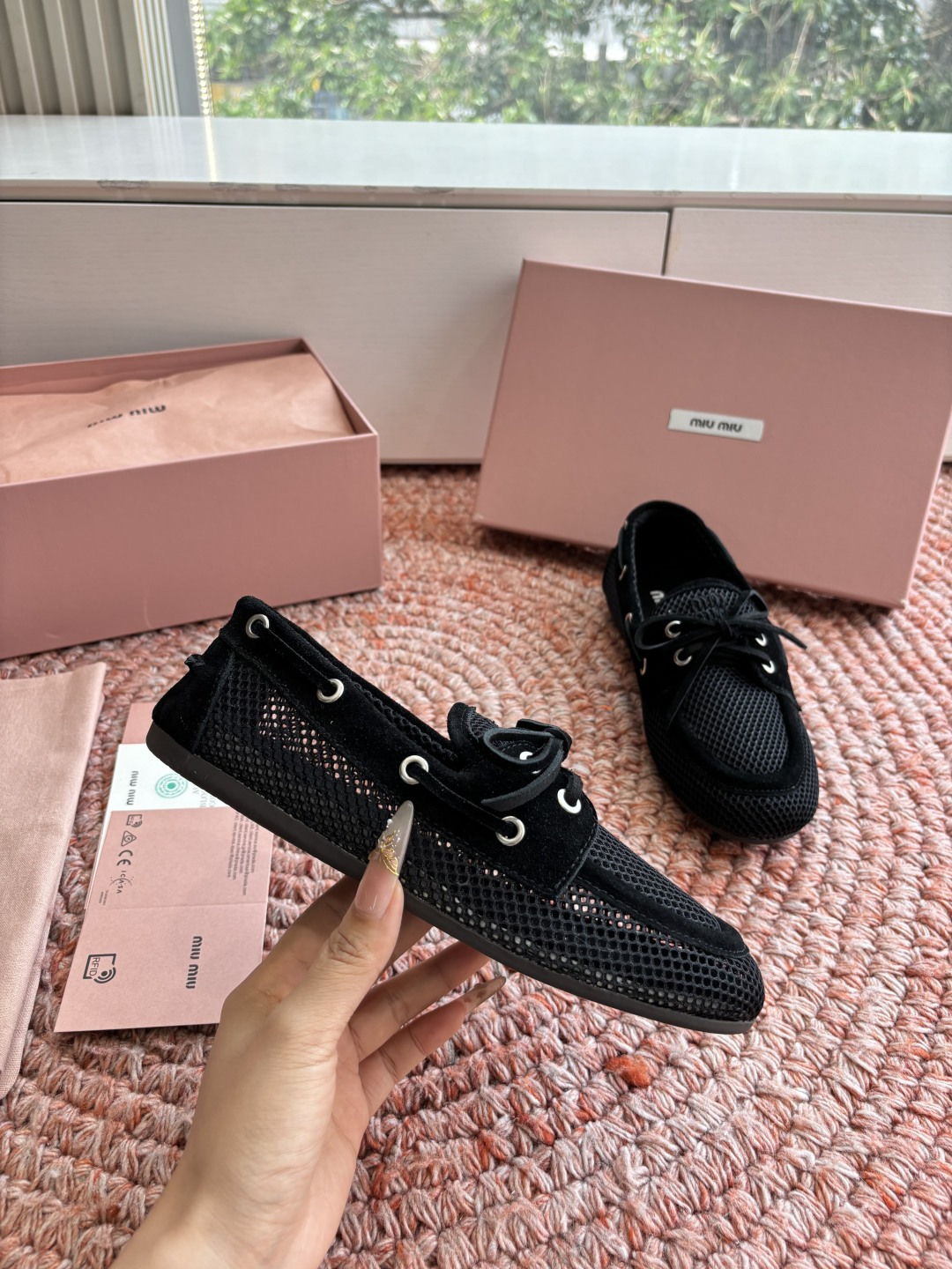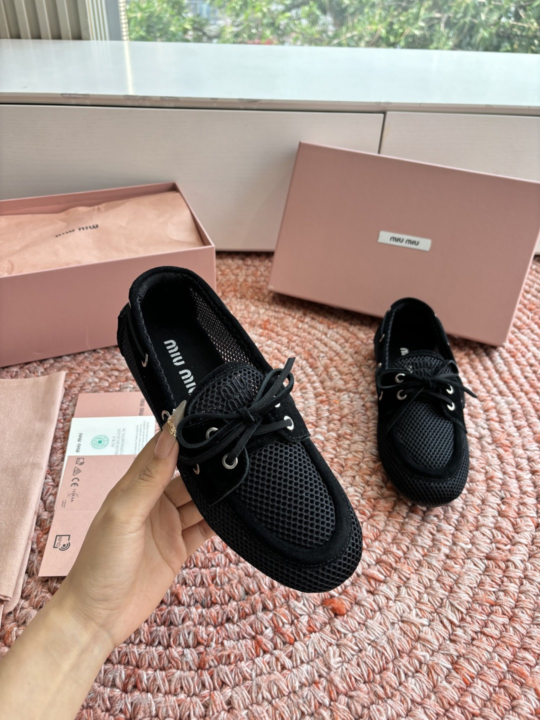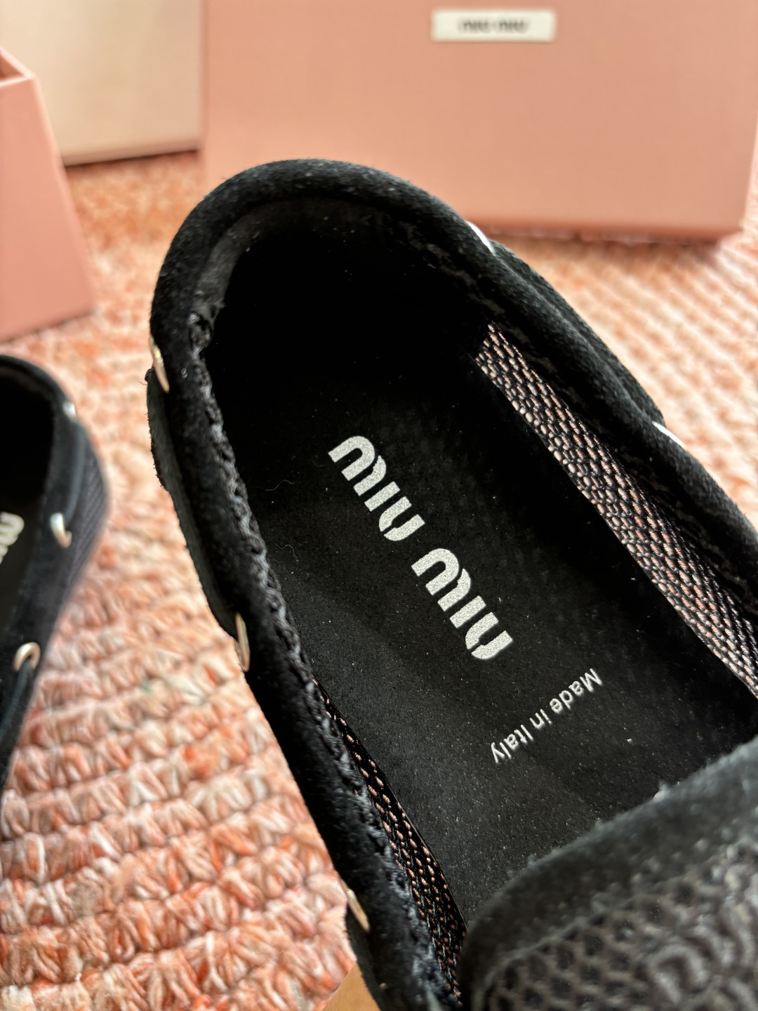 这款鞋子是AAAAA 1:1 质量 (非常棒). 使用了和原版一模一样的材料. 商标部分也保持了和缪缪/Miu Miu一样. 图片拍摄是实物鞋子拍摄, 您所收到的实物保证和我们图片一模一样.