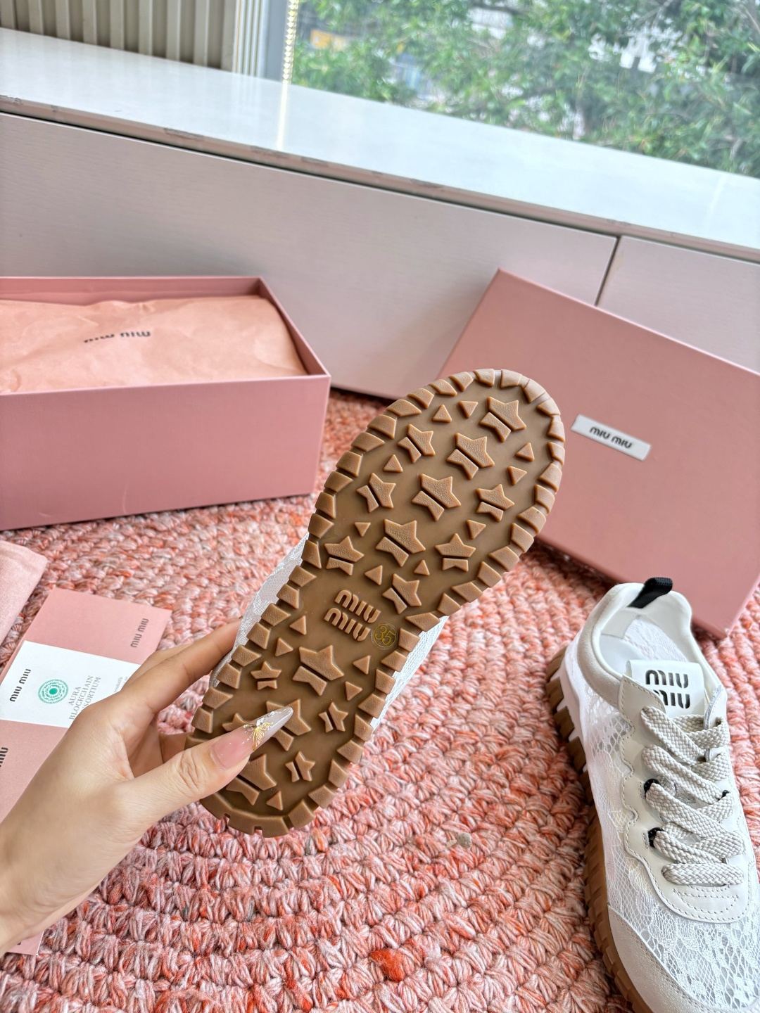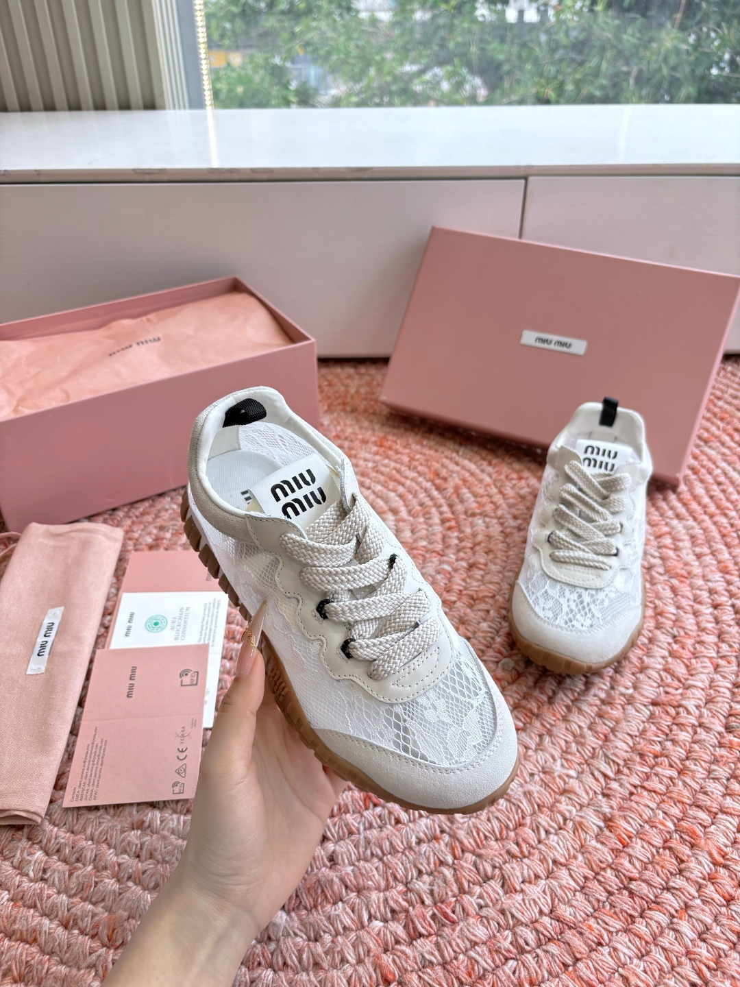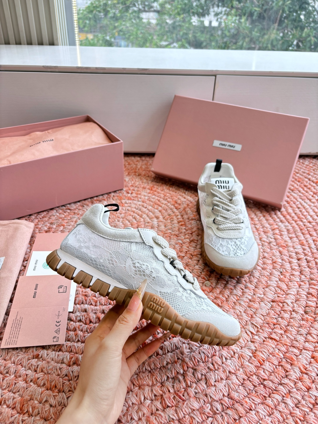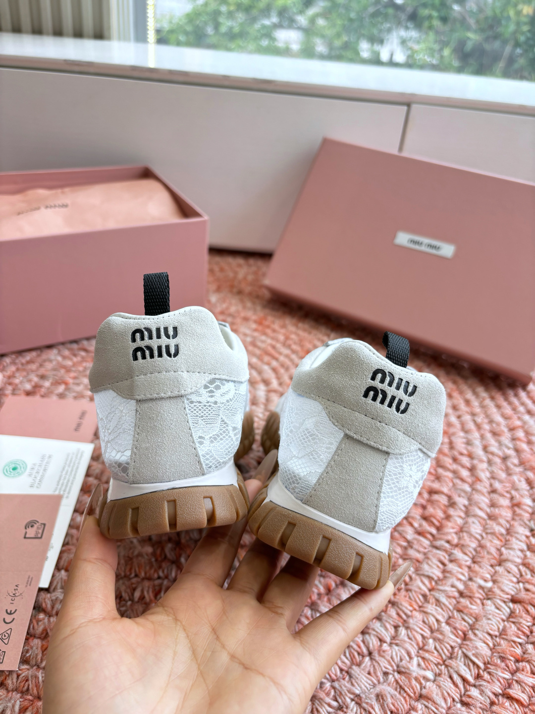 这款鞋子是AAAAA 1:1 质量 (非常棒). 使用了和原版一模一样的材料. 商标部分也保持了和缪缪/Miu Miu一样. 图片拍摄是实物鞋子拍摄, 您所收到的实物保证和我们图片一模一样.