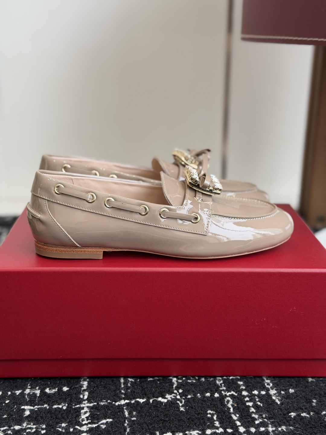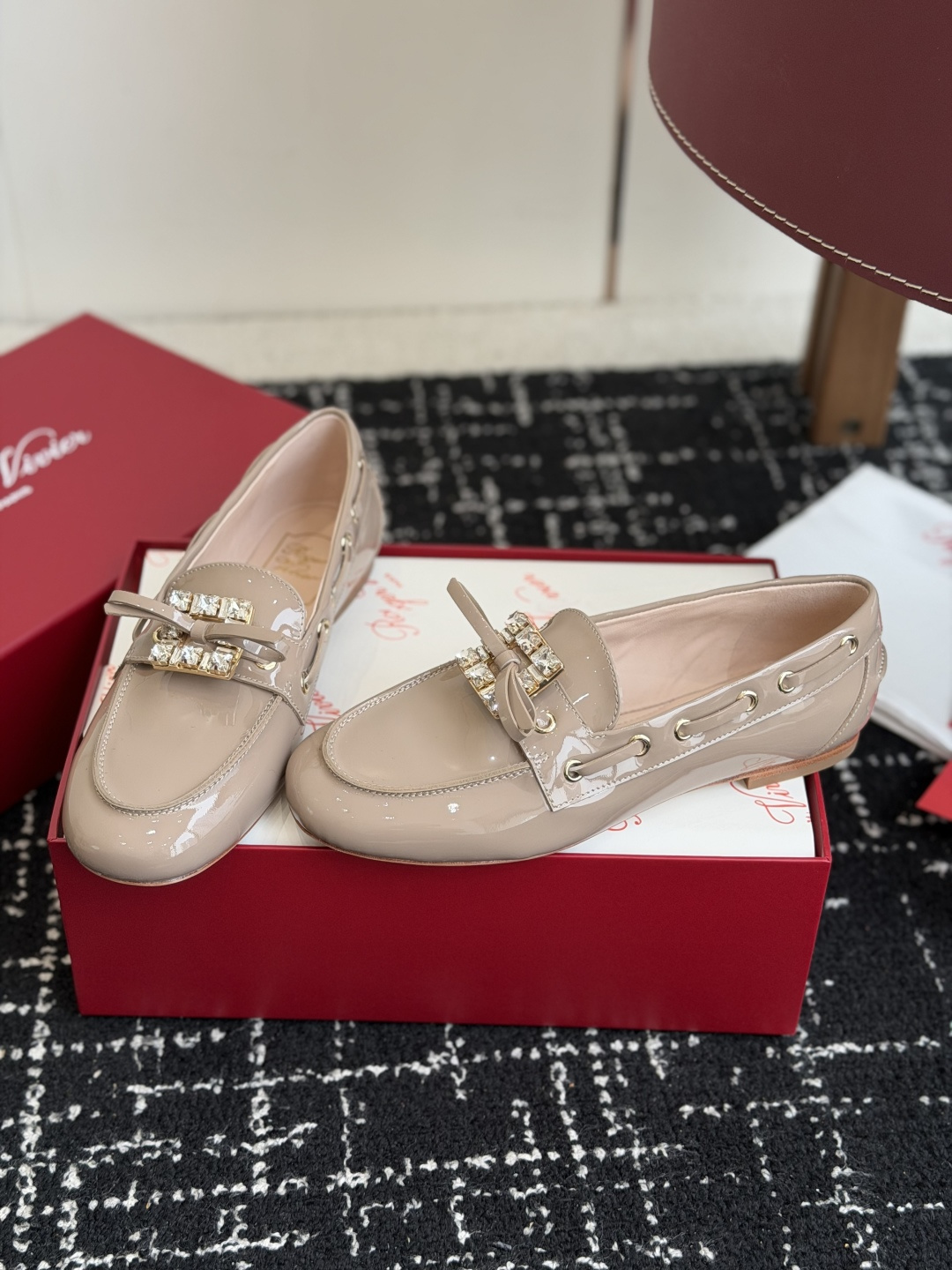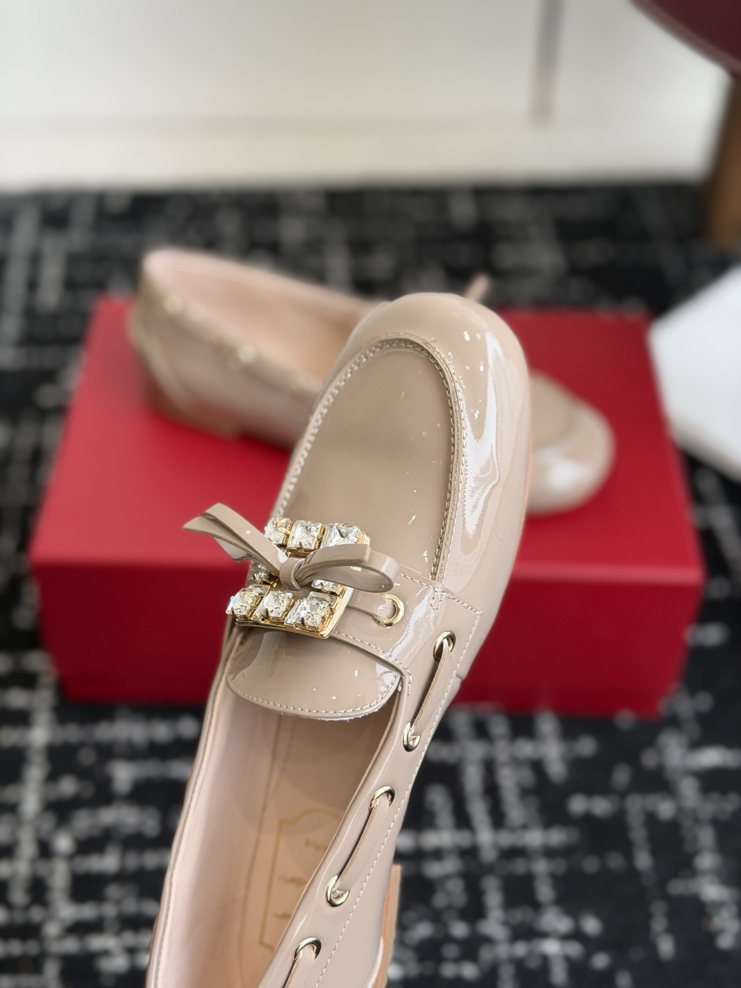 这款鞋子是AAAAA 1:1 质量 (非常棒). 使用了和原版一模一样的材料. 商标部分也保持了和罗杰维维耶/Roger Vivier一样. 图片拍摄是实物鞋子拍摄, 您所收到的实物保证和我们图片一模一样.