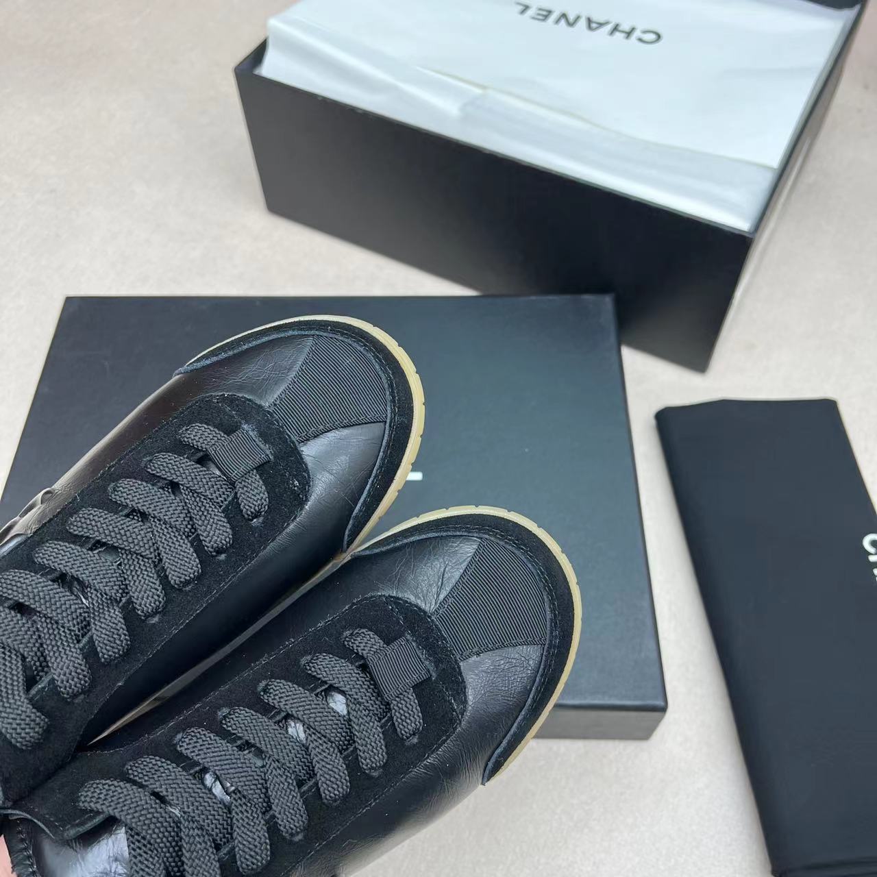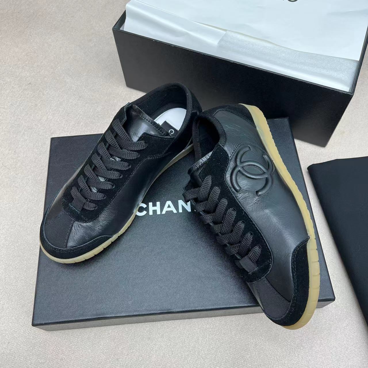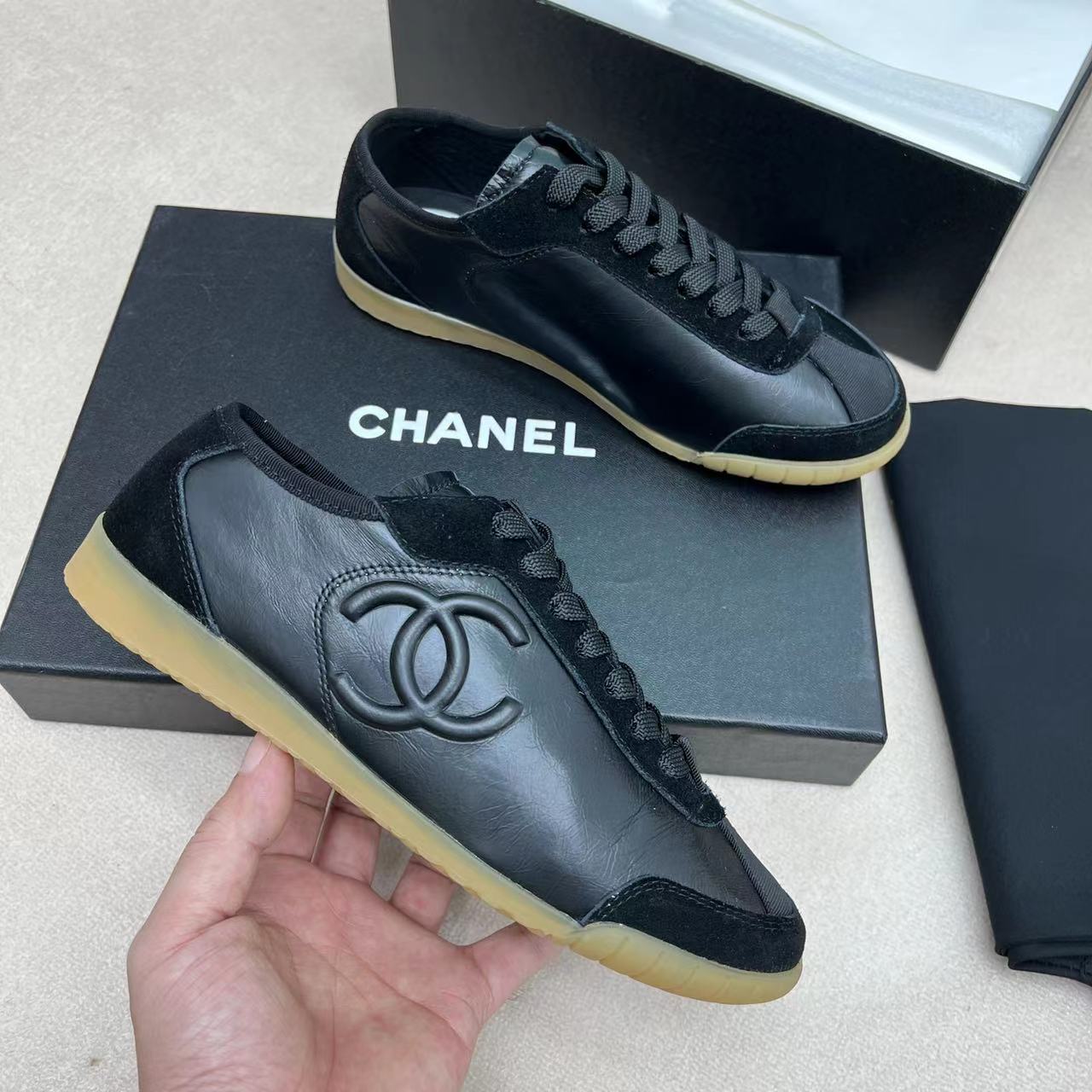 这款鞋子是AAAAA 1:1 质量 (非常棒). 使用了和原版一模一样的材料. 商标部分也保持了和香奈儿/Chanel一样. 图片拍摄是实物鞋子拍摄, 您所收到的实物保证和我们图片一模一样.