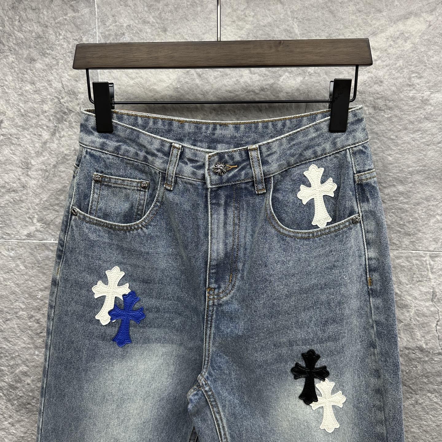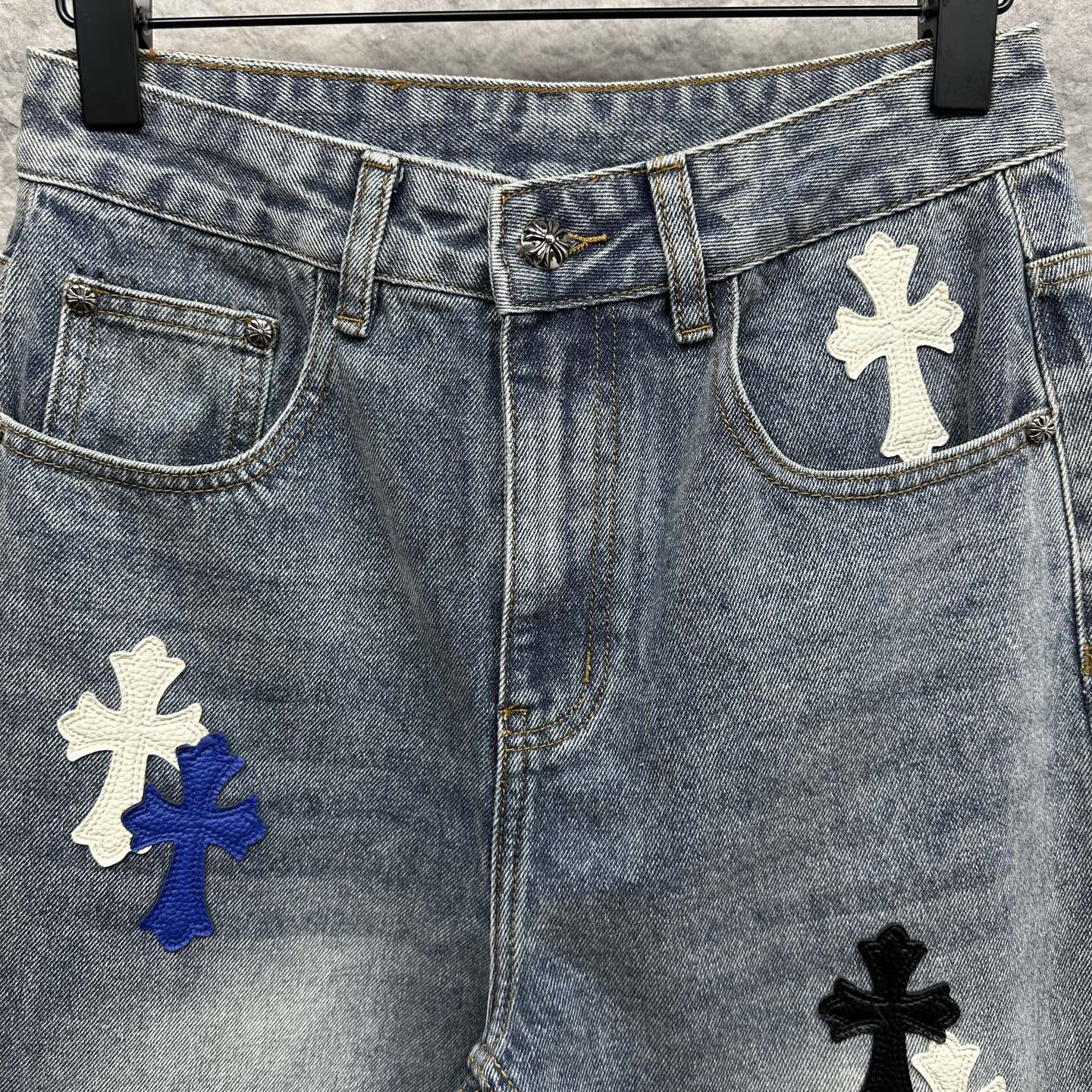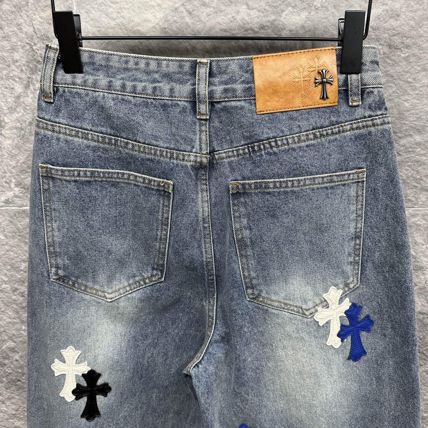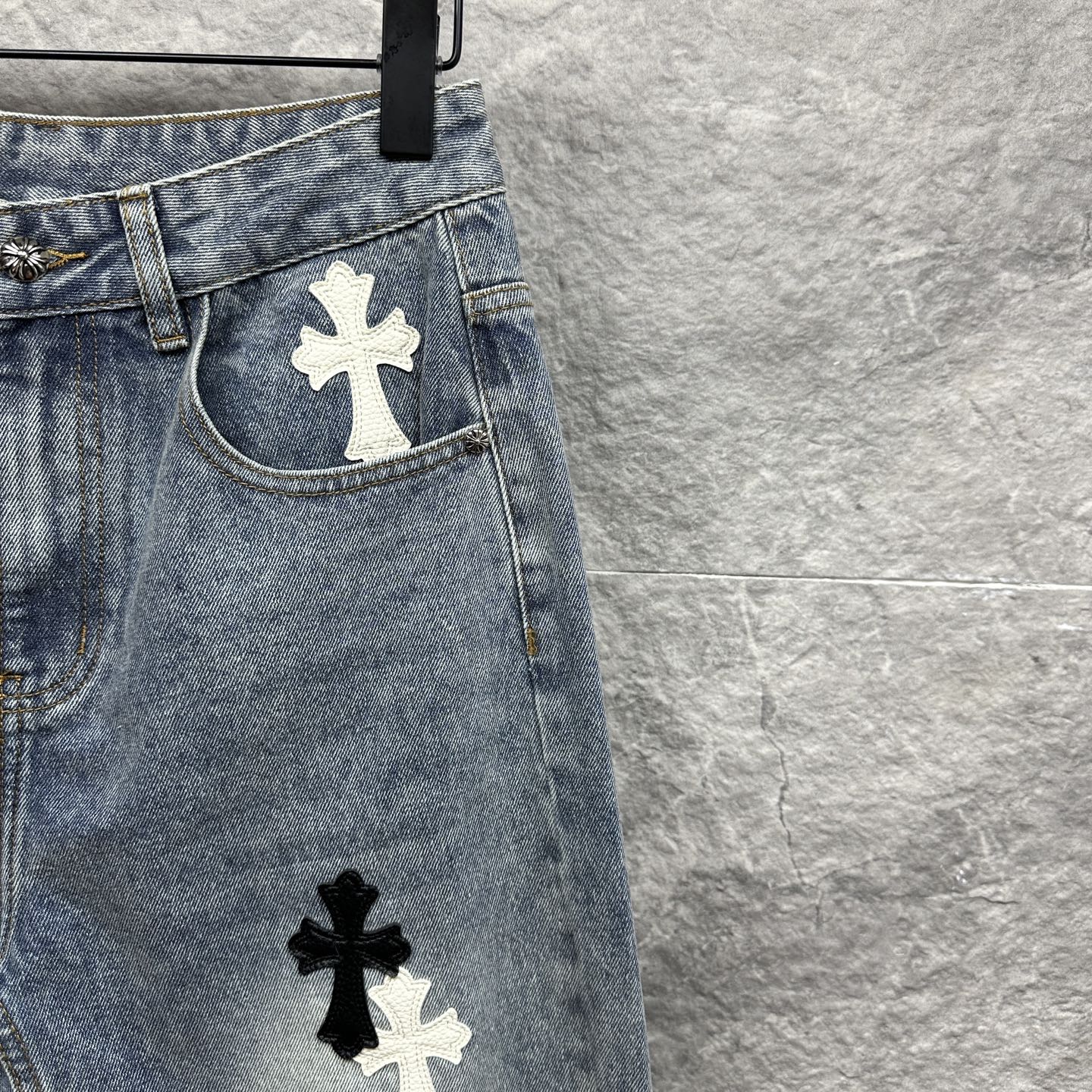 这款衣服是AAAAA 1:1 质量 (非常棒). 使用了和原版一模一样的材料. 商标部分也保持了和克罗心/Chrome Hearts一样. 图片拍摄是实物衣服拍摄, 您所收到的实物保证和我们图片一模一样.