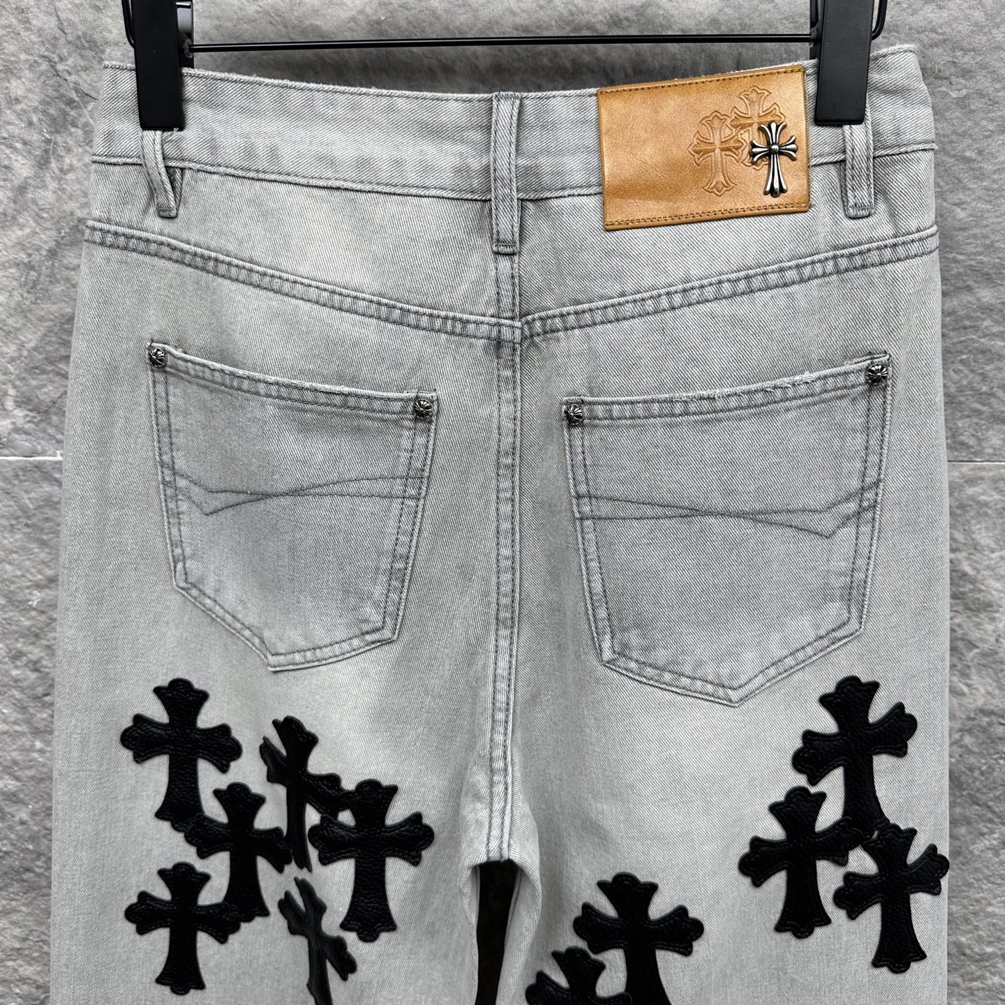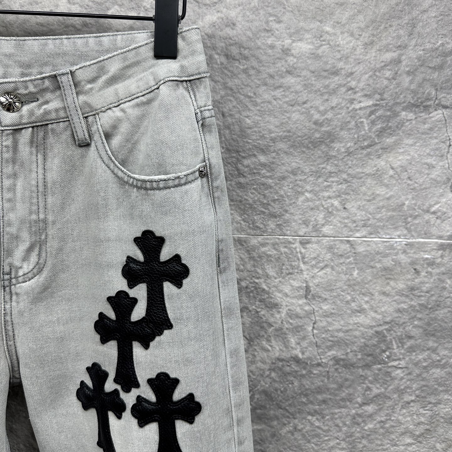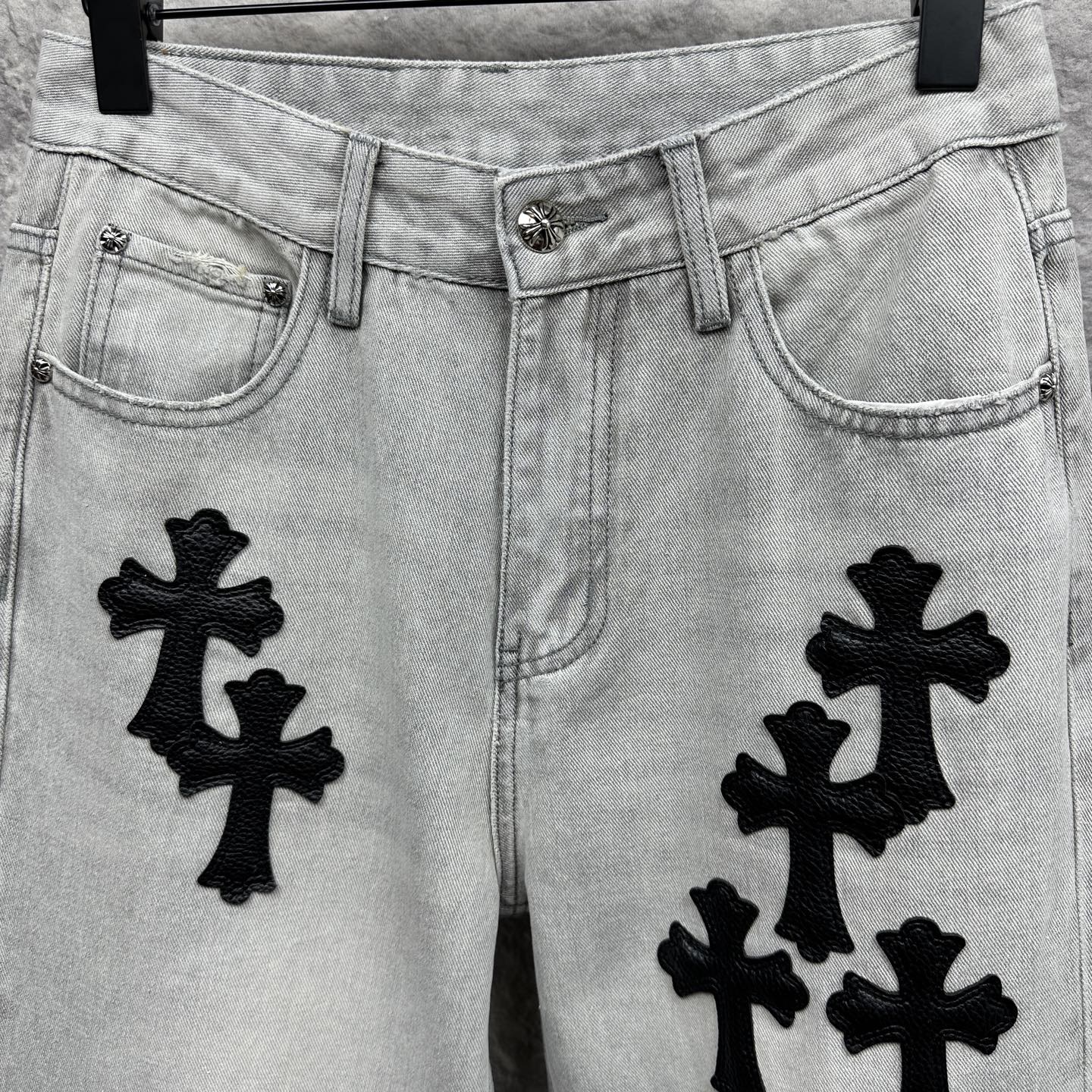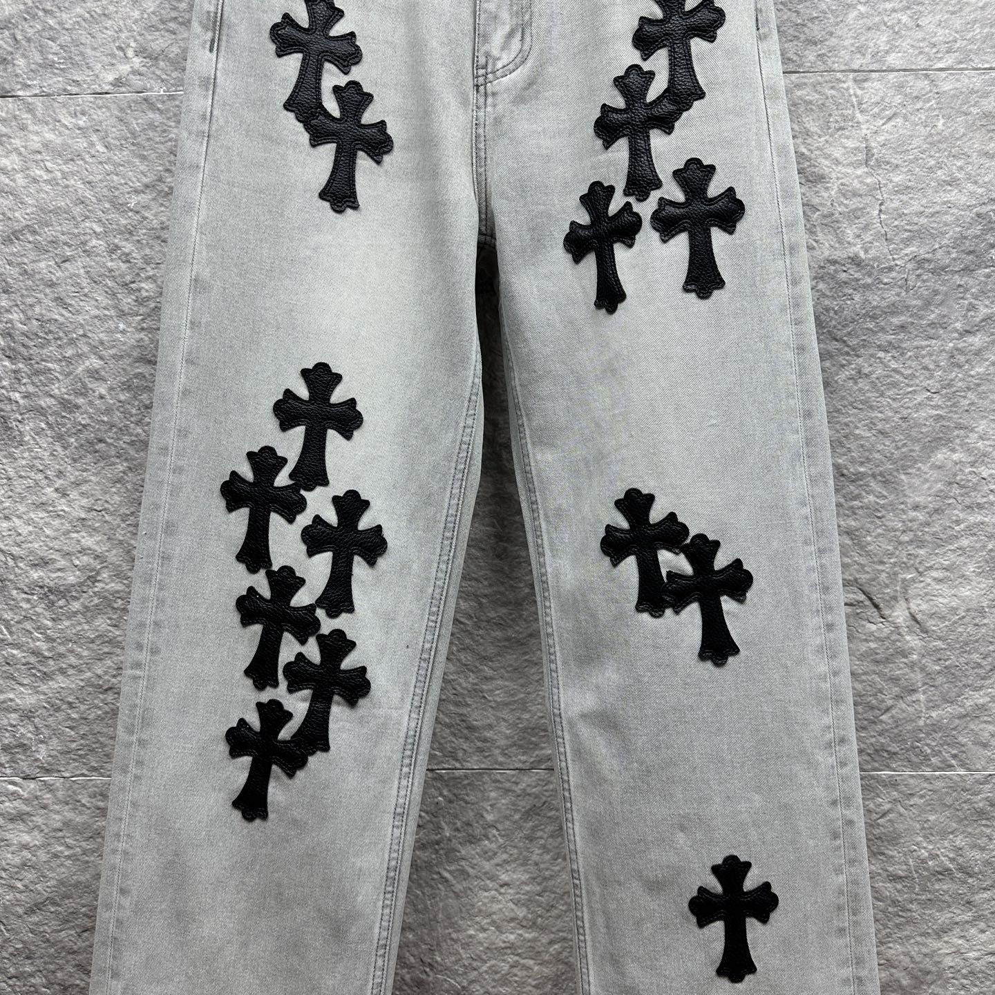 这款衣服是AAAAA 1:1 质量 (非常棒). 使用了和原版一模一样的材料. 商标部分也保持了和克罗心/Chrome Hearts一样. 图片拍摄是实物衣服拍摄, 您所收到的实物保证和我们图片一模一样.