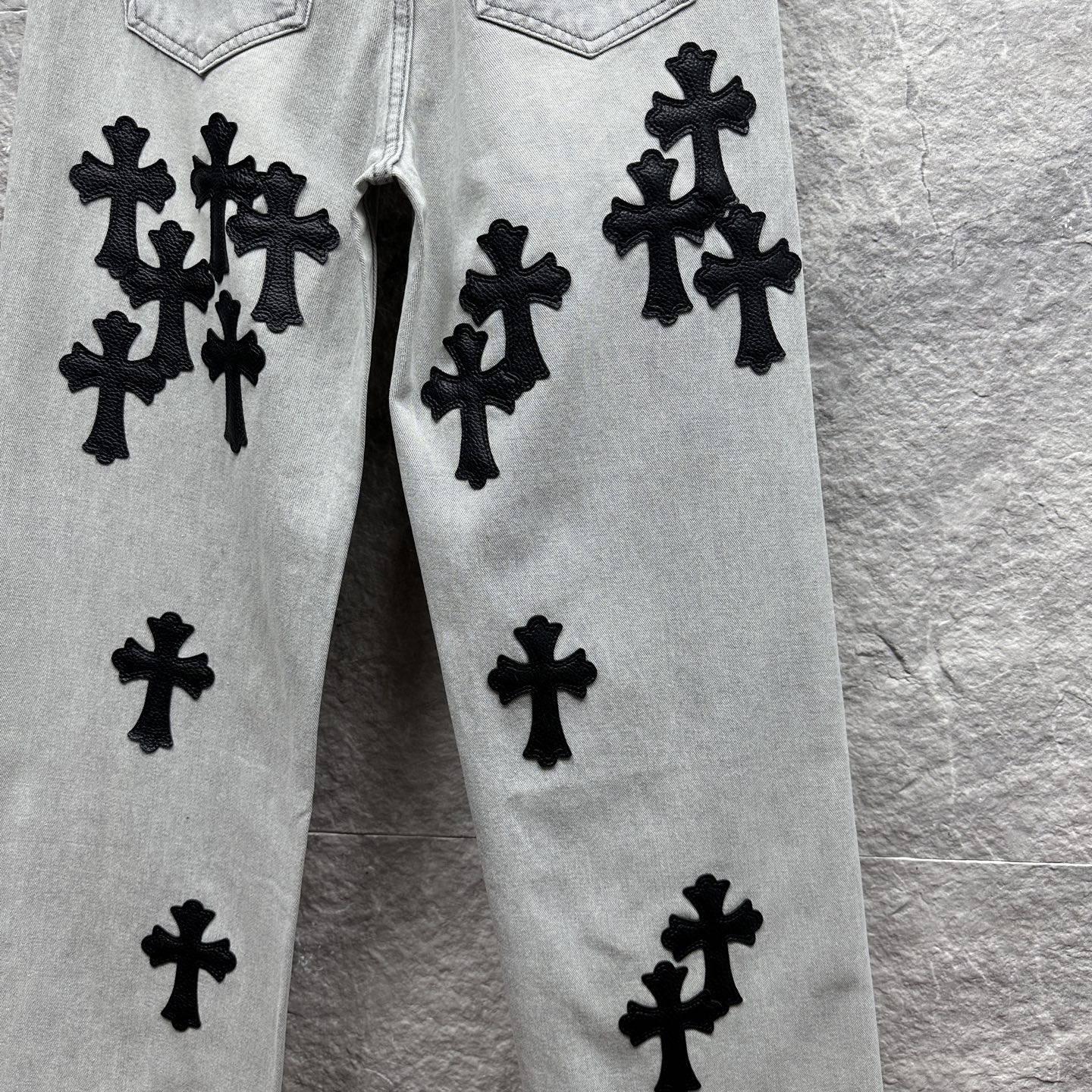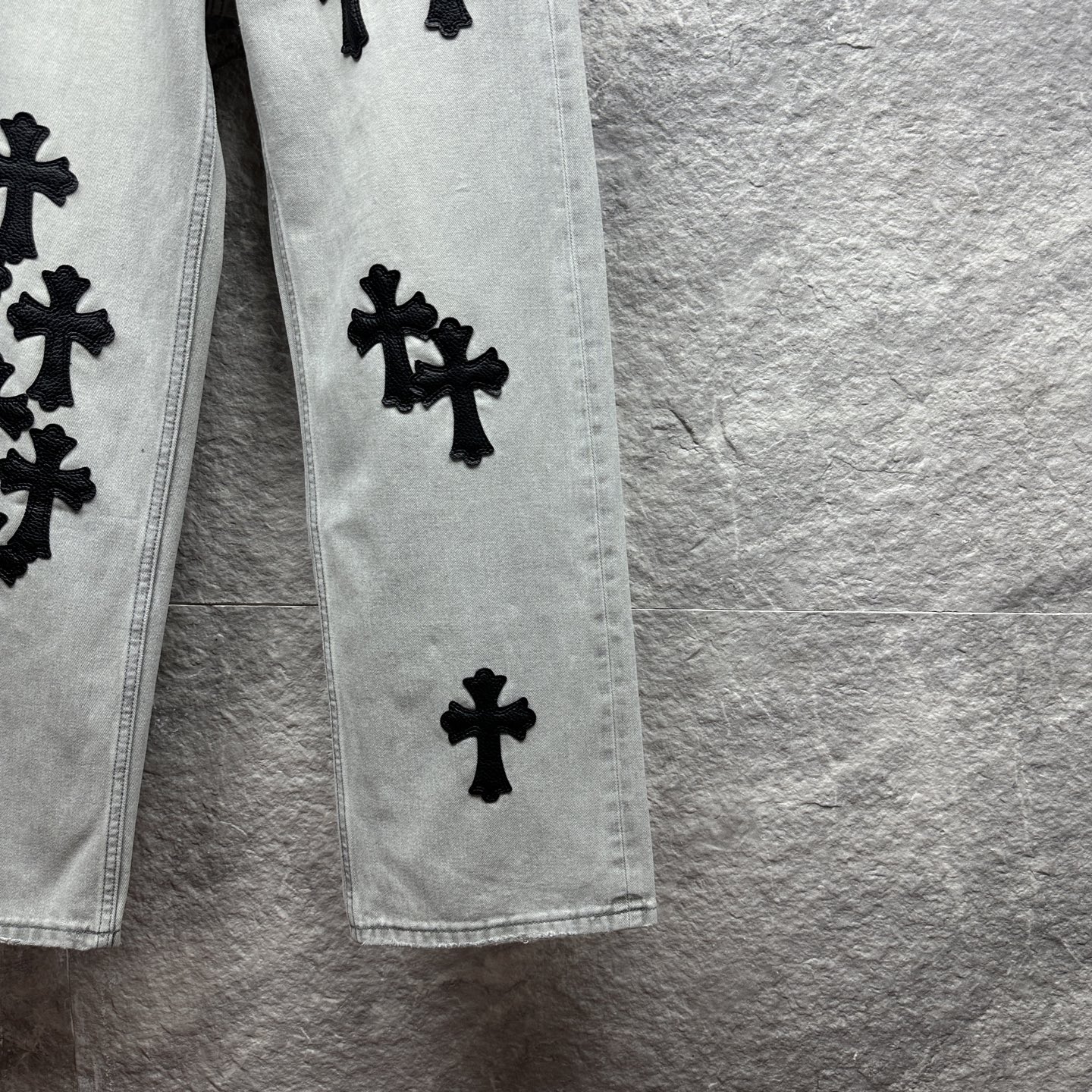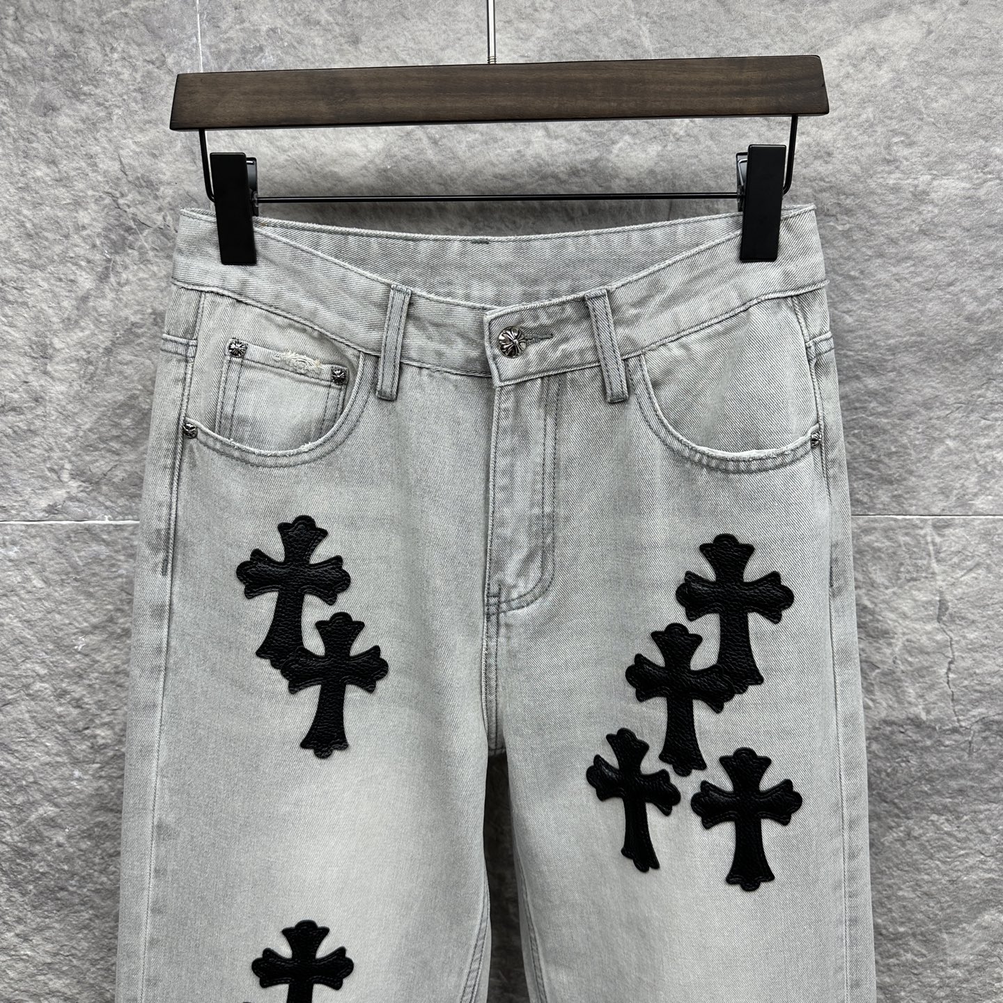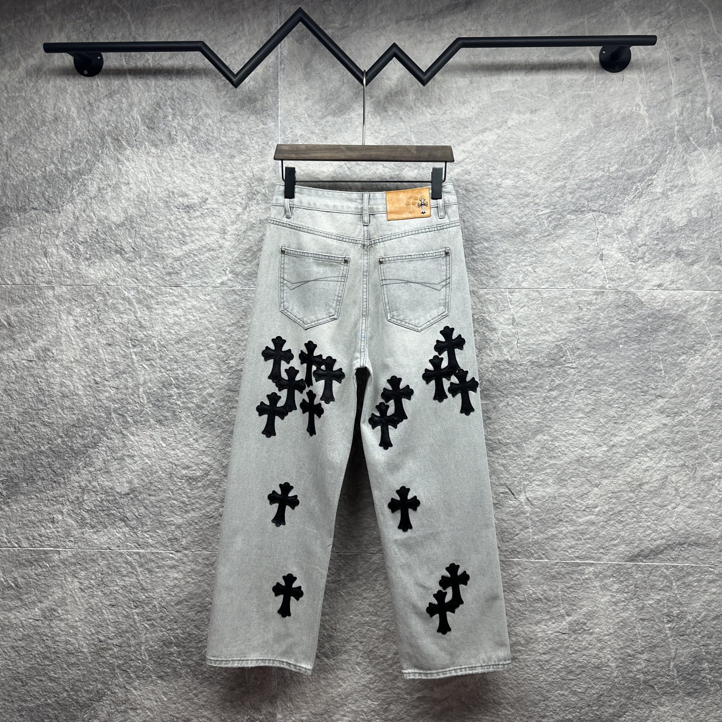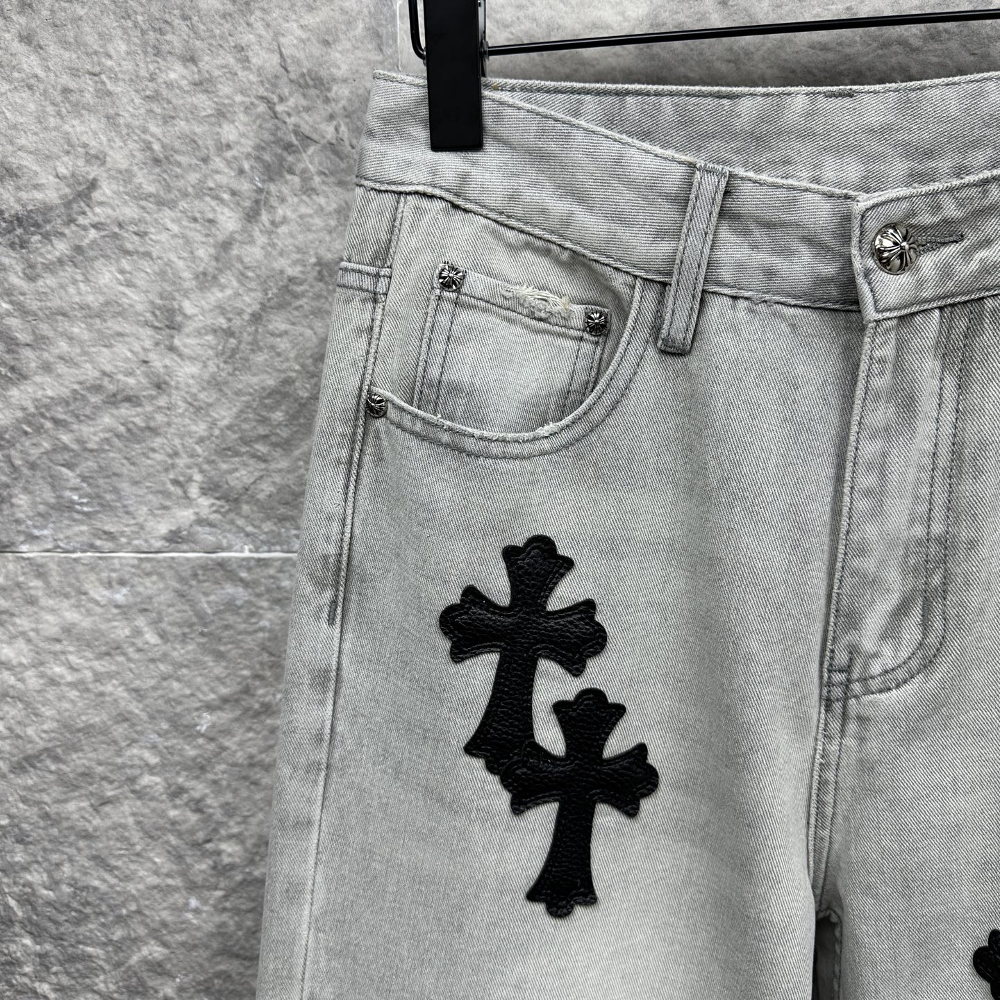 这款衣服是AAAAA 1:1 质量 (非常棒). 使用了和原版一模一样的材料. 商标部分也保持了和克罗心/Chrome Hearts一样. 图片拍摄是实物衣服拍摄, 您所收到的实物保证和我们图片一模一样.