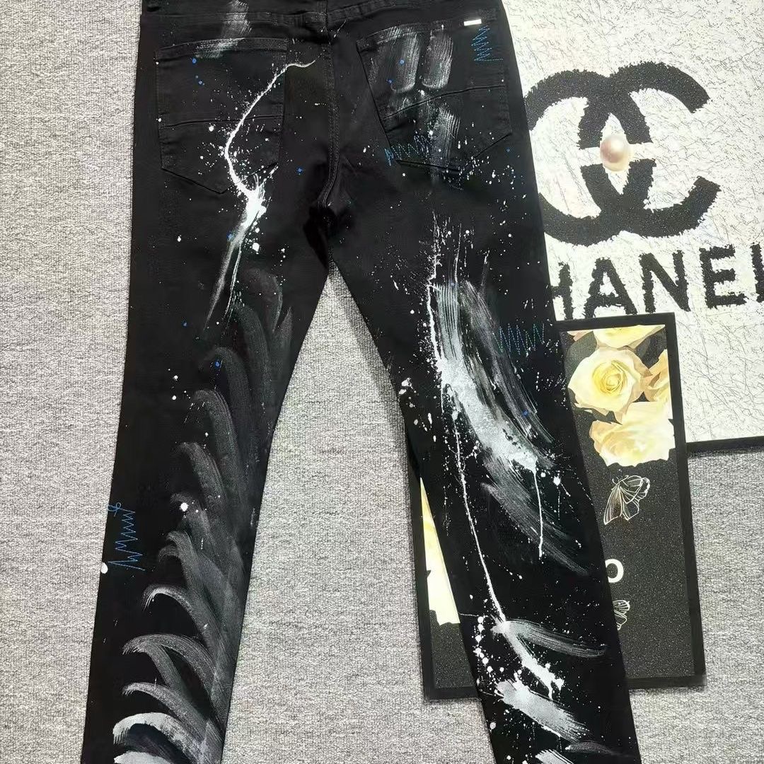 这款衣服是AAAAA 1:1 质量 (非常棒). 使用了和原版一模一样的材料. 商标部分也保持了和AMIRI一样. 图片拍摄是实物衣服拍摄, 您所收到的实物保证和我们图片一模一样.