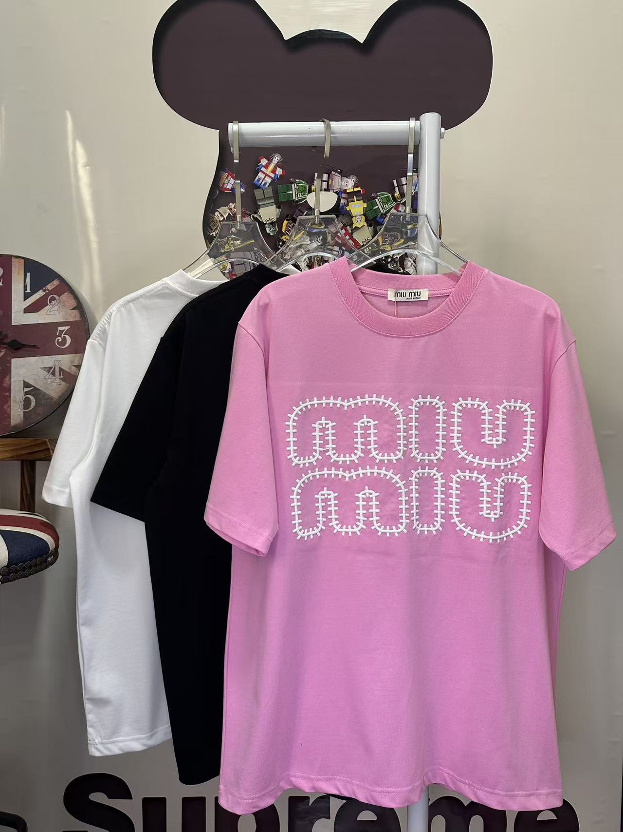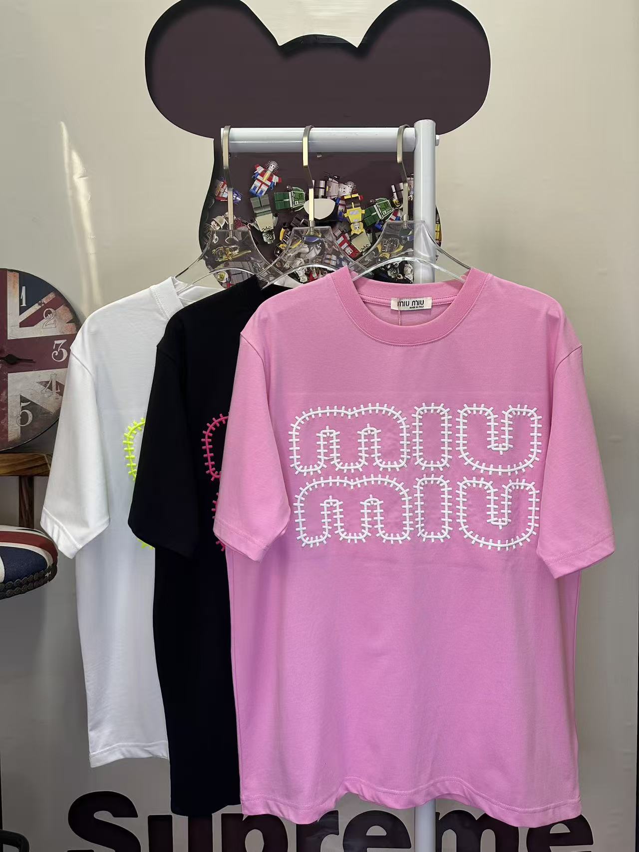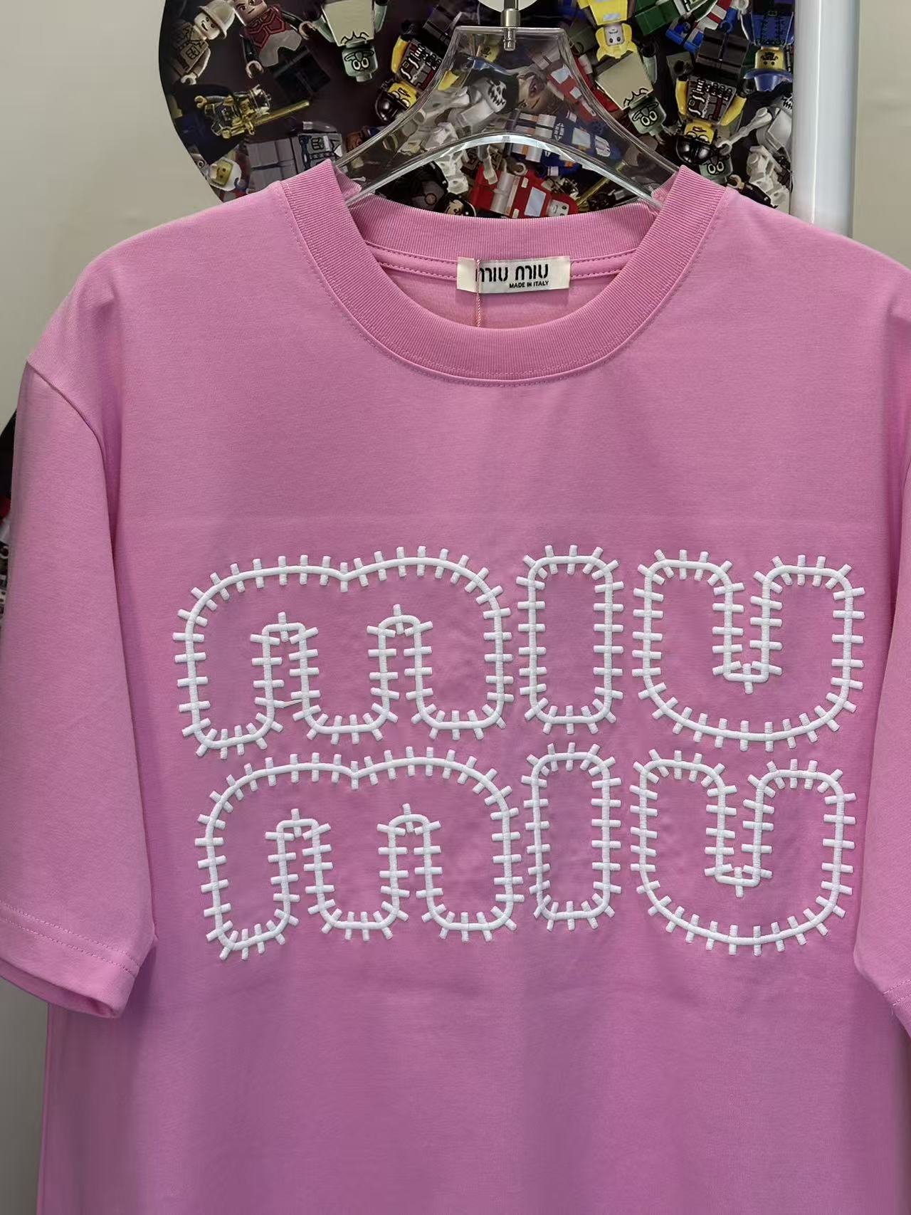 这款衣服是AAAAA 1:1 质量 (非常棒). 使用了和原版一模一样的材料. 商标部分也保持了和缪缪/Miu Miu一样. 图片拍摄是实物衣服拍摄, 您所收到的实物保证和我们图片一模一样.