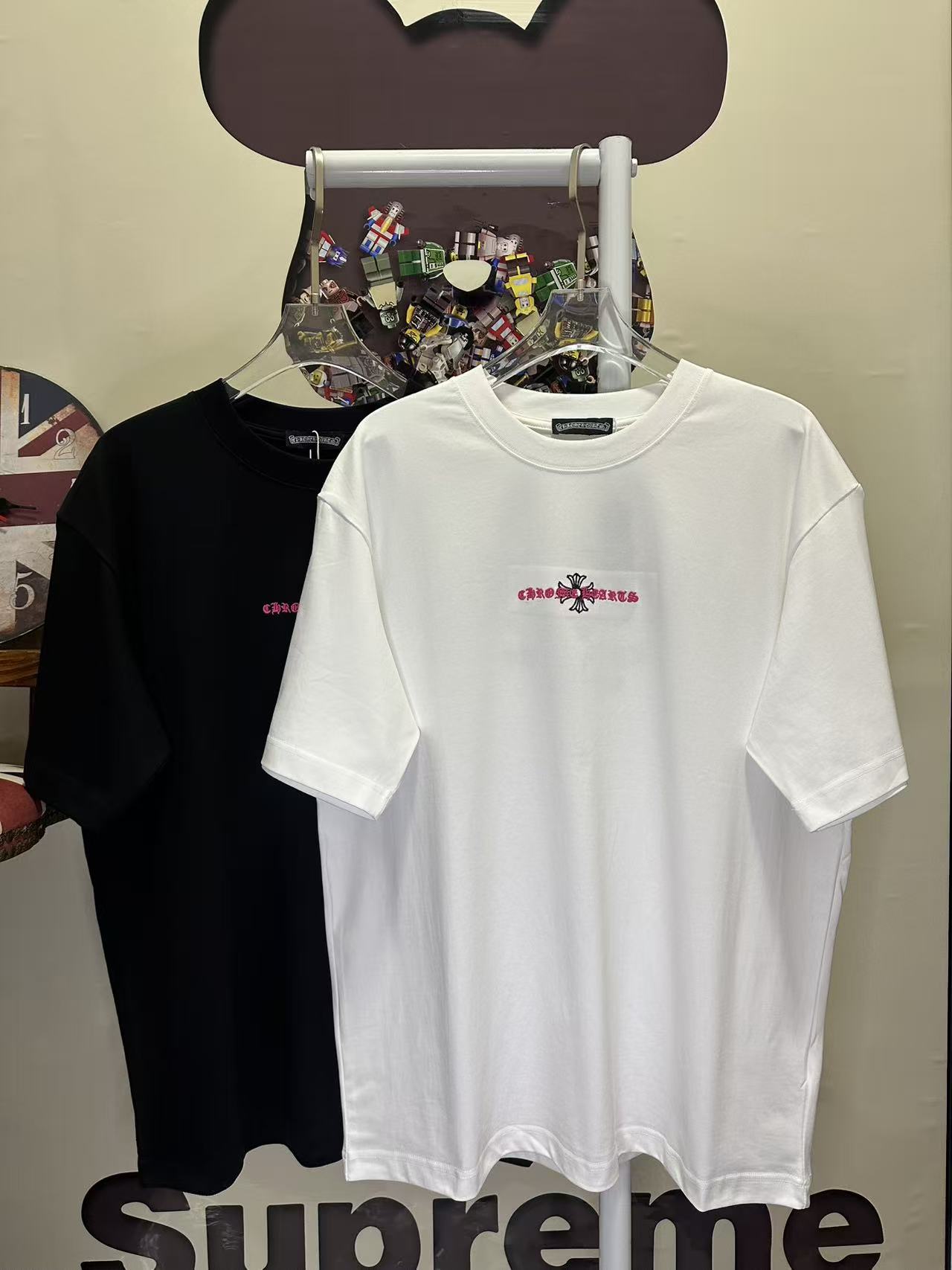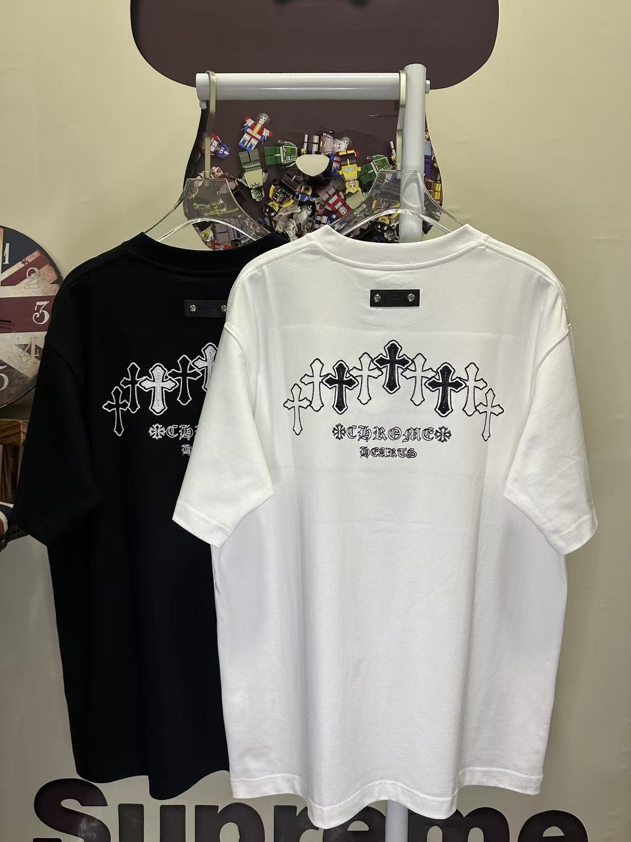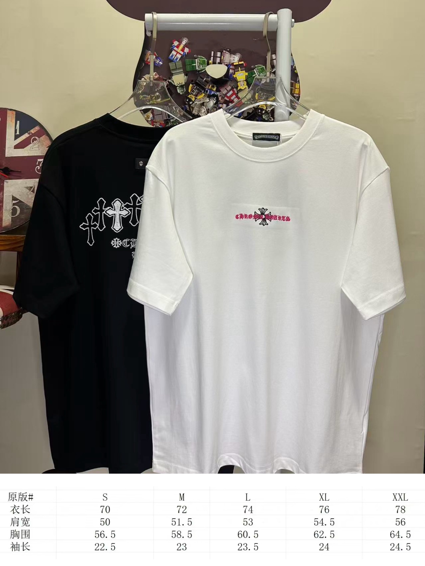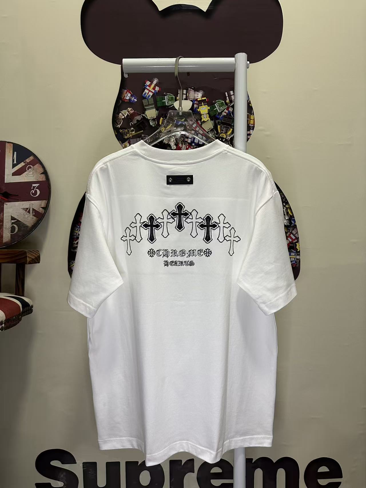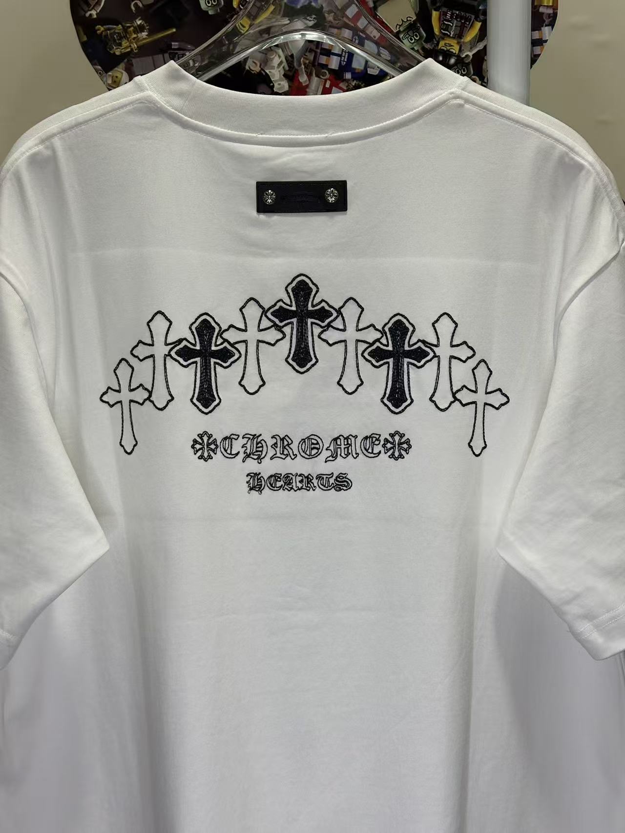 这款衣服是AAAAA 1:1 质量 (非常棒). 使用了和原版一模一样的材料. 商标部分也保持了和克罗心/Chrome Hearts一样. 图片拍摄是实物衣服拍摄, 您所收到的实物保证和我们图片一模一样.