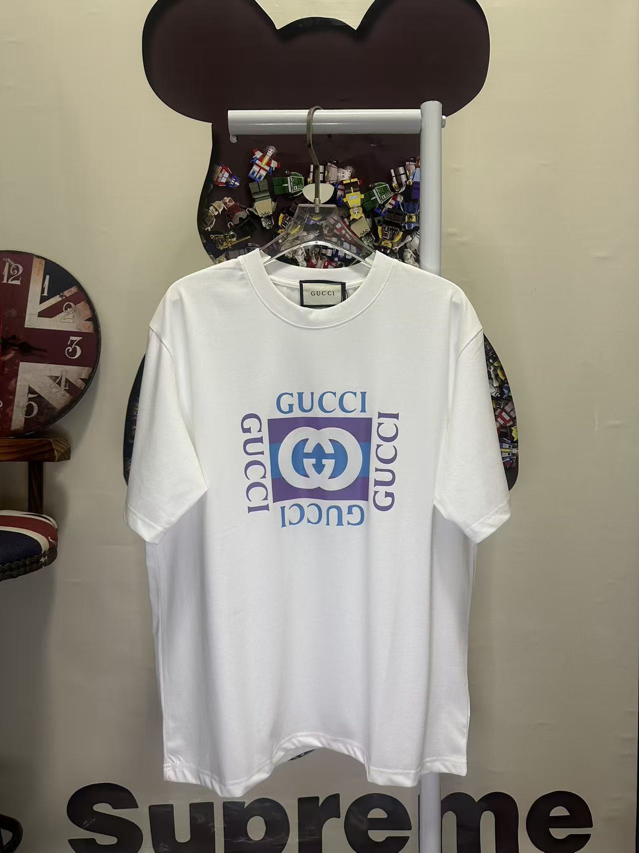 这款衣服是AAAAA 1:1 质量 (非常棒). 使用了和原版一模一样的材料. 商标部分也保持了和古奇/Gucci一样. 图片拍摄是实物衣服拍摄, 您所收到的实物保证和我们图片一模一样.