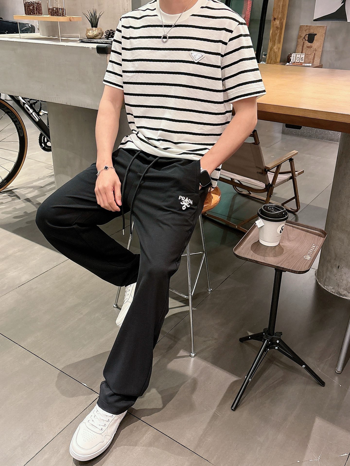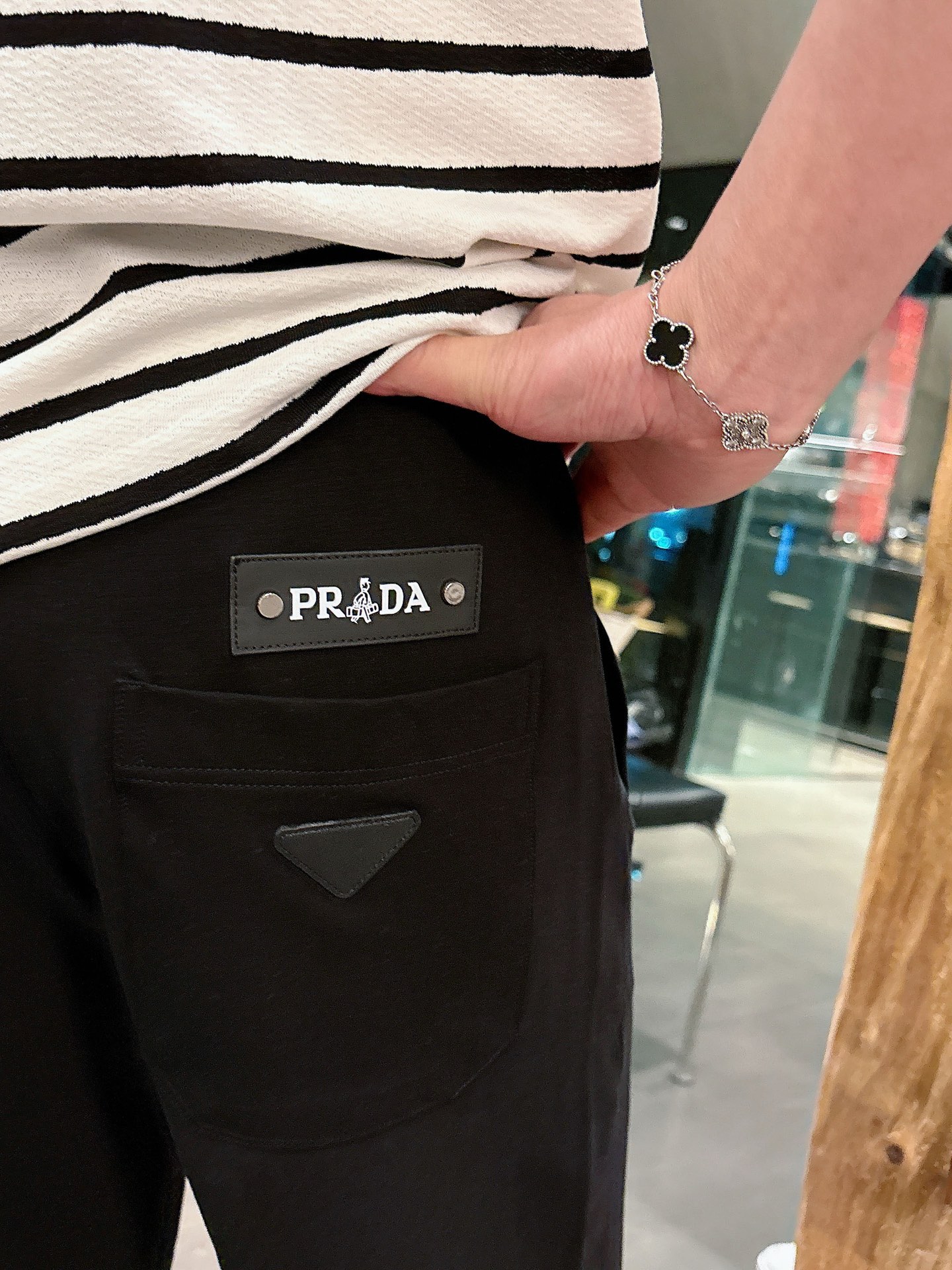 这款衣服是AAAAA 1:1 质量 (非常棒). 使用了和原版一模一样的材料. 商标部分也保持了和普拉达/Prada一样. 图片拍摄是实物衣服拍摄, 您所收到的实物保证和我们图片一模一样.