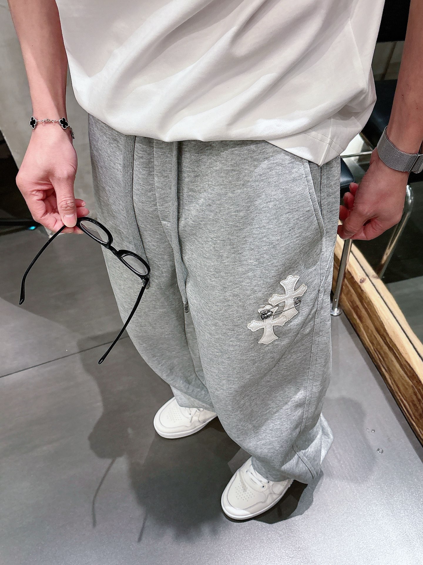这款衣服是AAAAA 1:1 质量 (非常棒). 使用了和原版一模一样的材料. 商标部分也保持了和克罗心/Chrome Hearts一样. 图片拍摄是实物衣服拍摄, 您所收到的实物保证和我们图片一模一样.