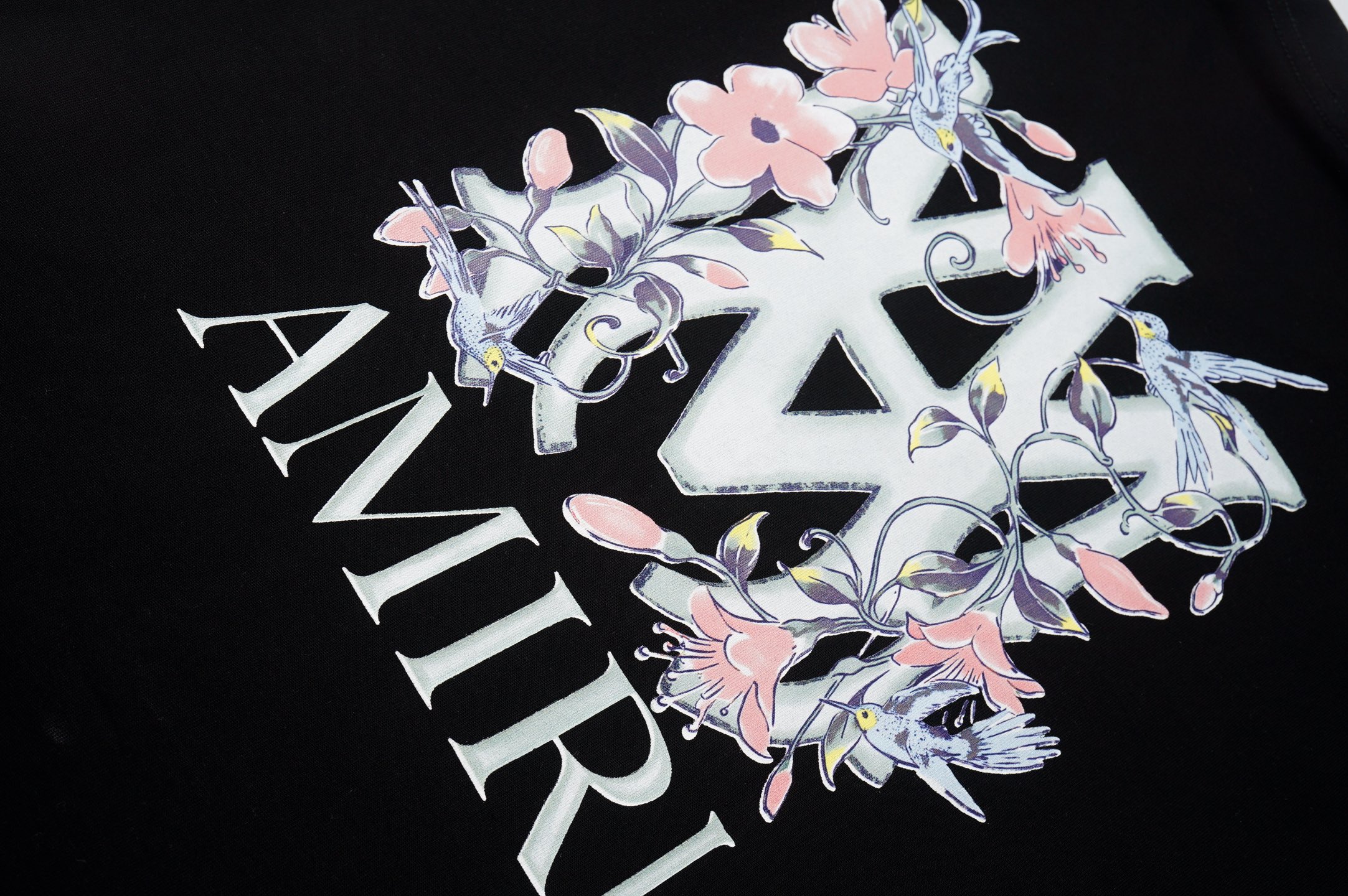 这款衣服是AAAAA 1:1 质量 (非常棒). 使用了和原版一模一样的材料. 商标部分也保持了和AMIRI一样. 图片拍摄是实物衣服拍摄, 您所收到的实物保证和我们图片一模一样.