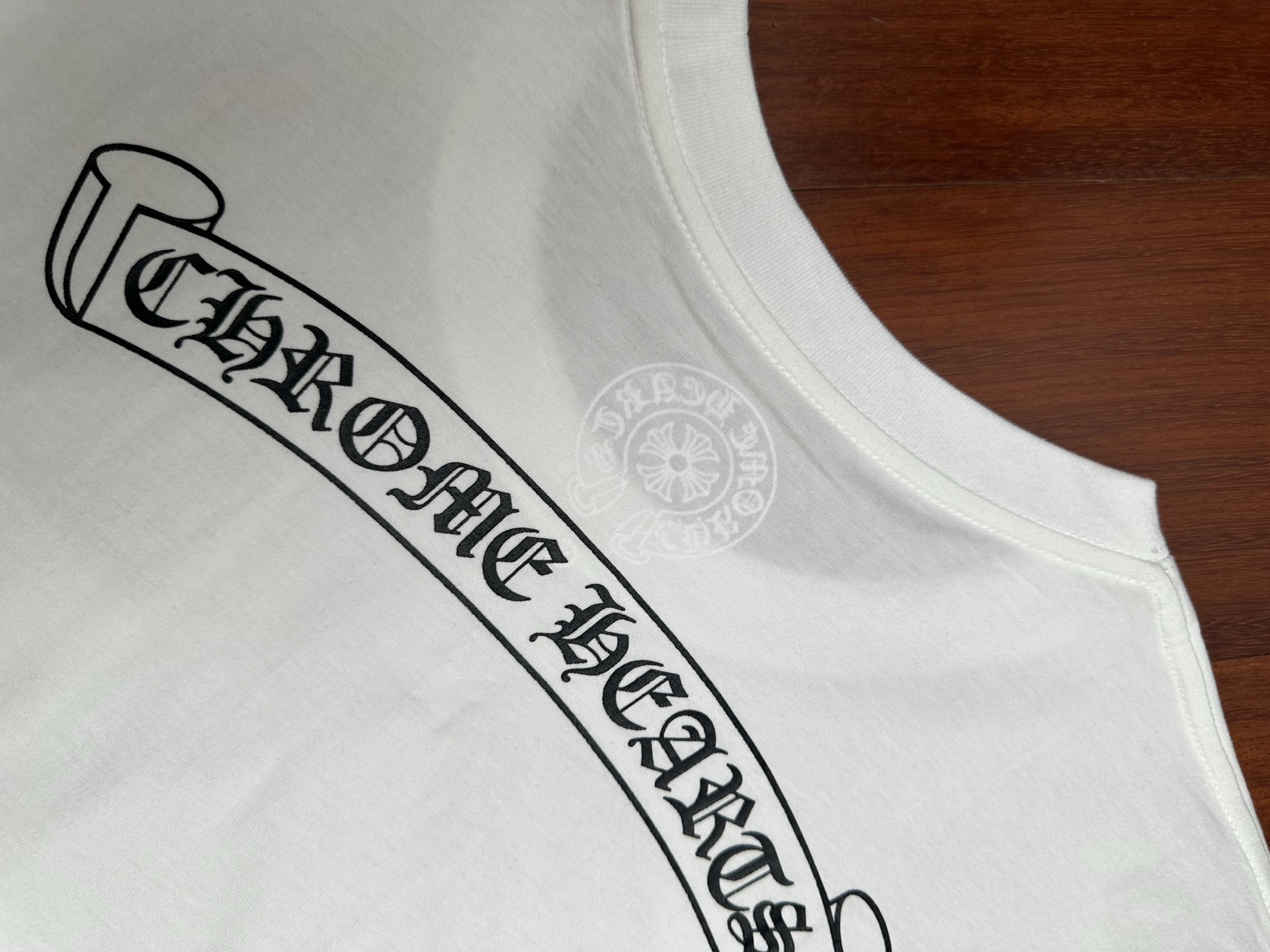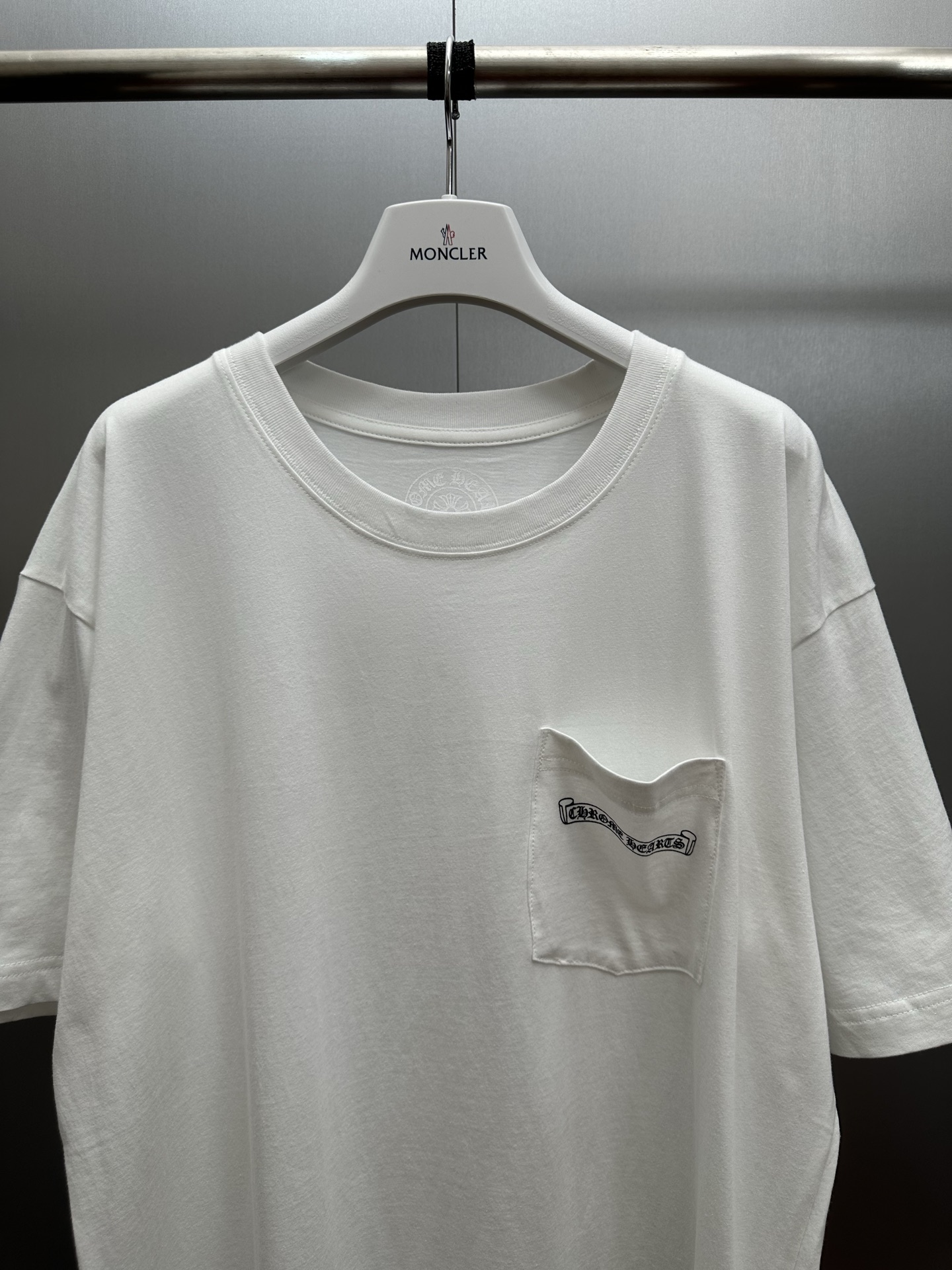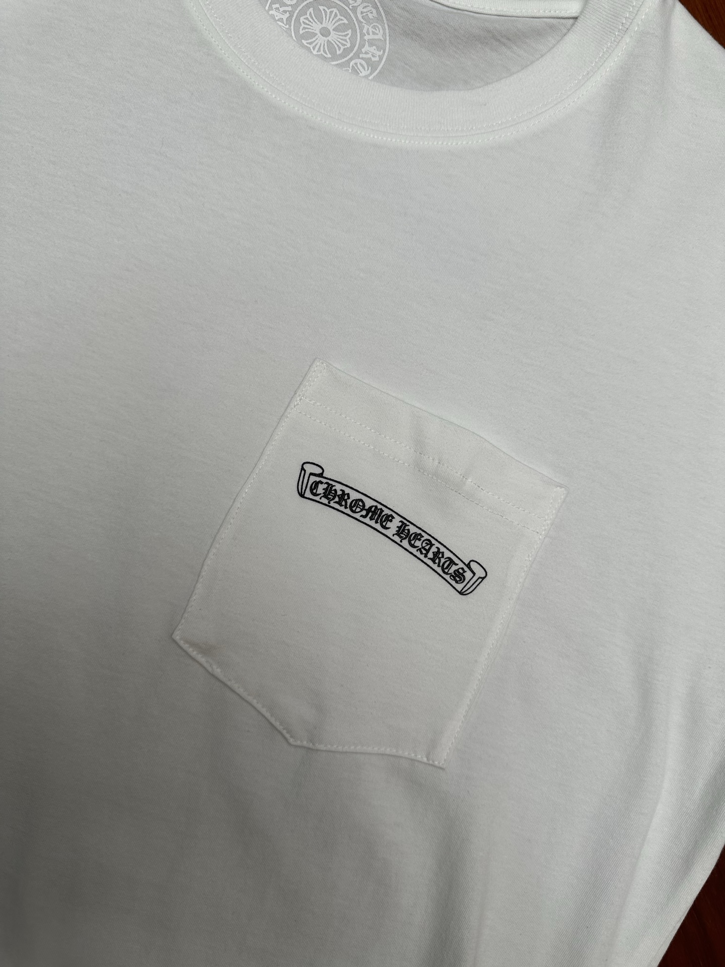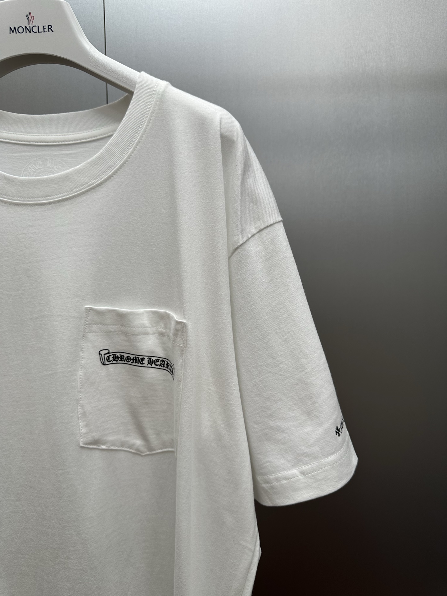 这款衣服是AAAAA 1:1 质量 (非常棒). 使用了和原版一模一样的材料. 商标部分也保持了和克罗心/Chrome Hearts一样. 图片拍摄是实物衣服拍摄, 您所收到的实物保证和我们图片一模一样.