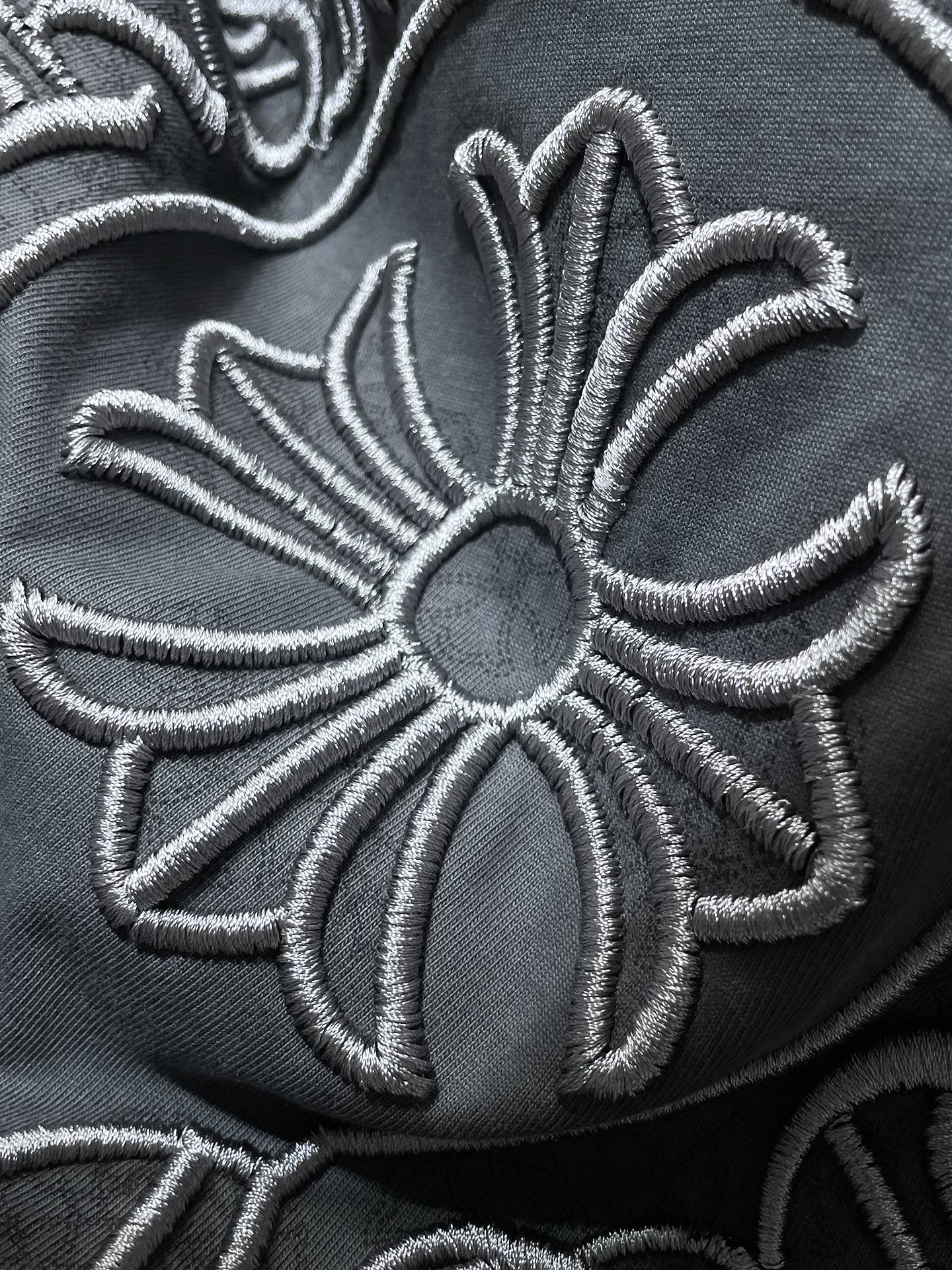 这款衣服是AAAAA 1:1 质量 (非常棒). 使用了和原版一模一样的材料. 商标部分也保持了和克罗心/Chrome Hearts一样. 图片拍摄是实物衣服拍摄, 您所收到的实物保证和我们图片一模一样.