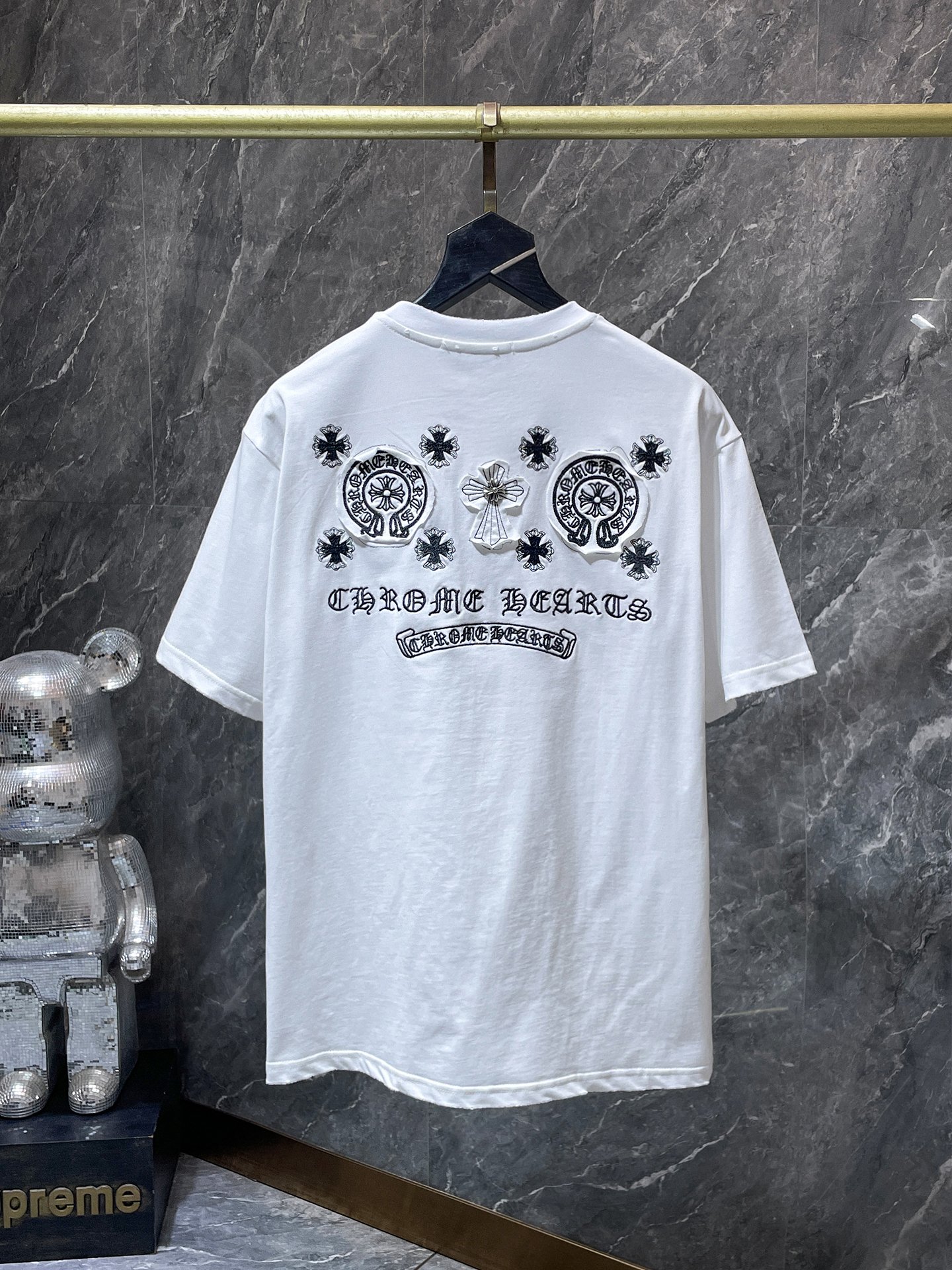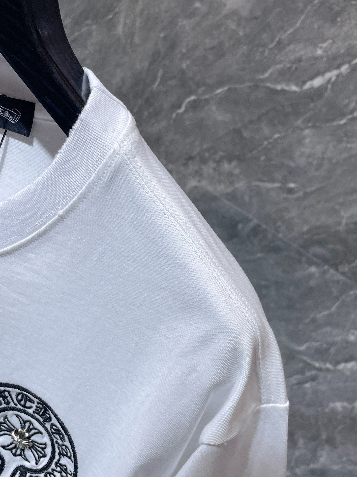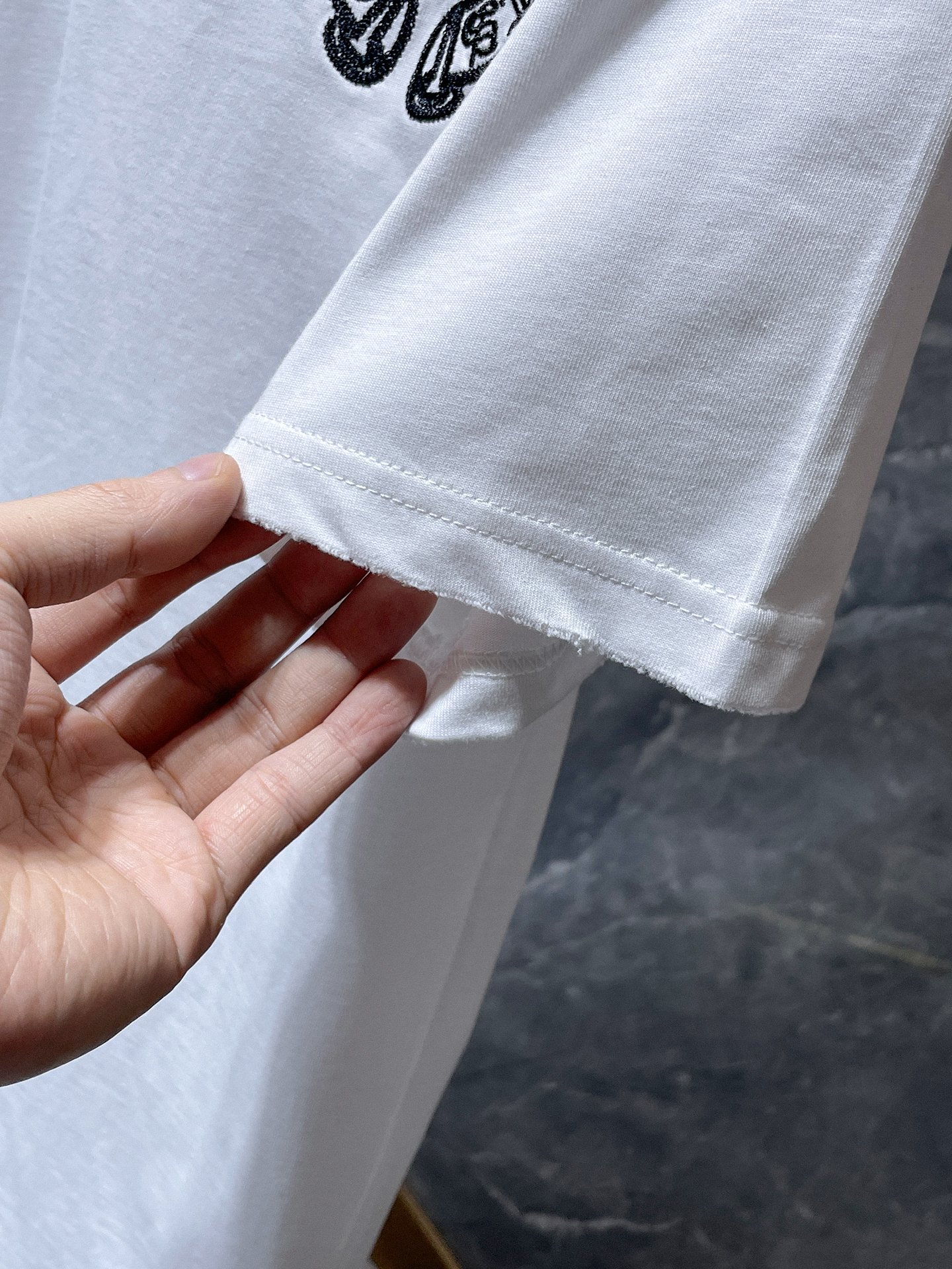 这款衣服是AAAAA 1:1 质量 (非常棒). 使用了和原版一模一样的材料. 商标部分也保持了和克罗心/Chrome Hearts一样. 图片拍摄是实物衣服拍摄, 您所收到的实物保证和我们图片一模一样.