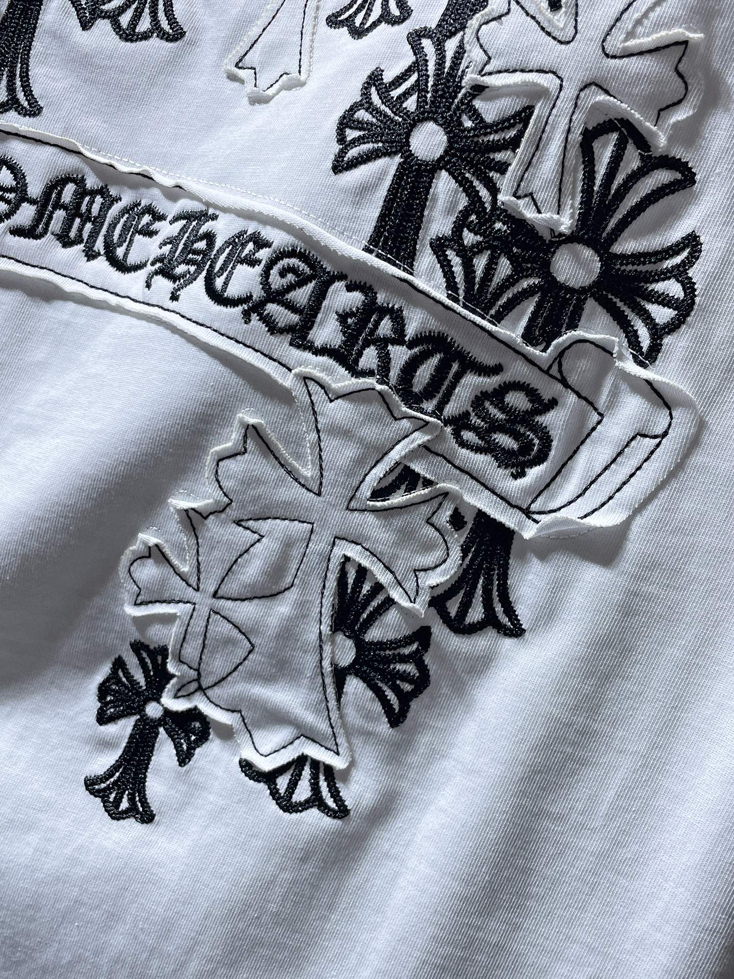 这款衣服是AAAAA 1:1 质量 (非常棒). 使用了和原版一模一样的材料. 商标部分也保持了和克罗心/Chrome Hearts一样. 图片拍摄是实物衣服拍摄, 您所收到的实物保证和我们图片一模一样.