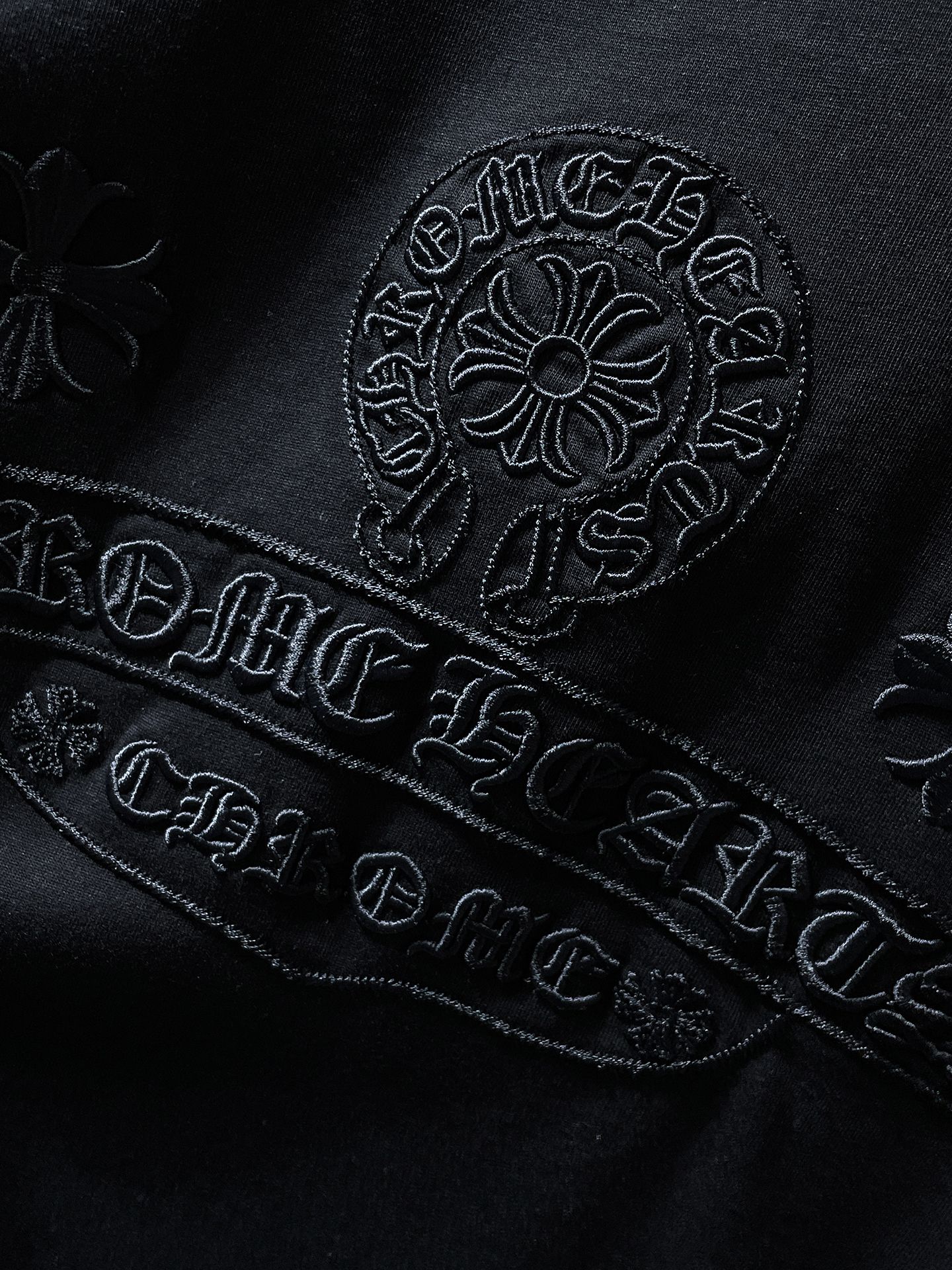 这款衣服是AAAAA 1:1 质量 (非常棒). 使用了和原版一模一样的材料. 商标部分也保持了和克罗心/Chrome Hearts一样. 图片拍摄是实物衣服拍摄, 您所收到的实物保证和我们图片一模一样.