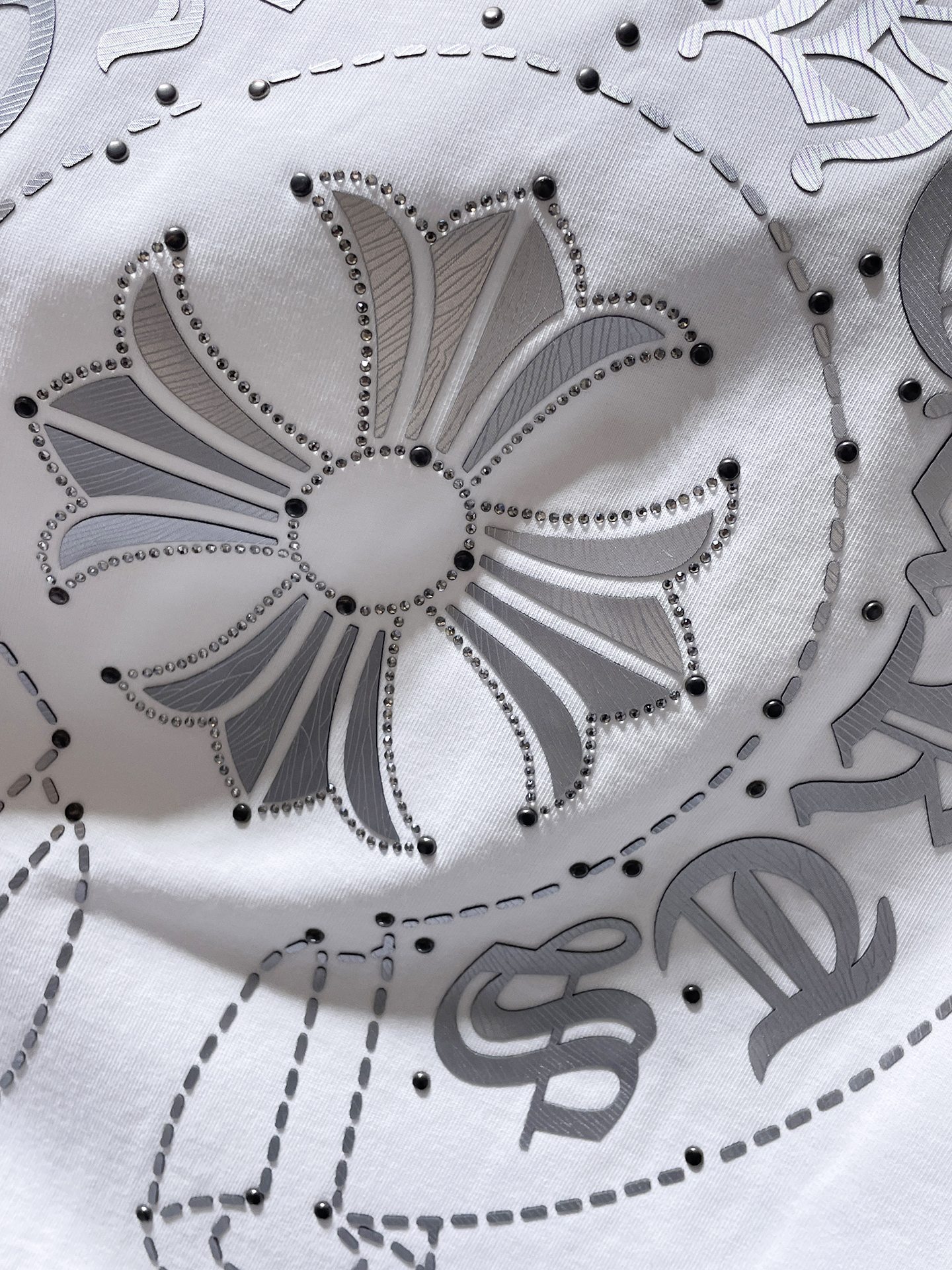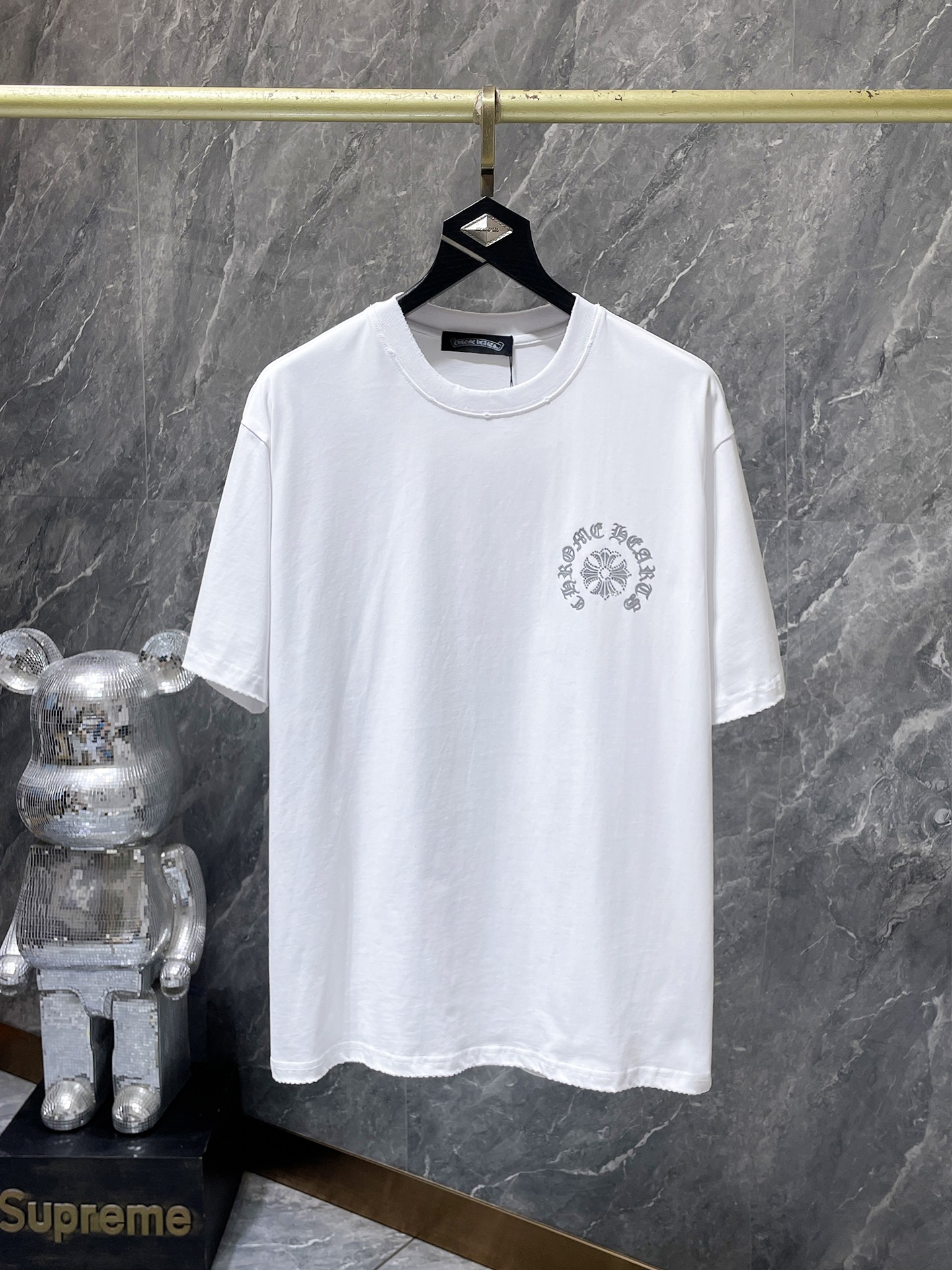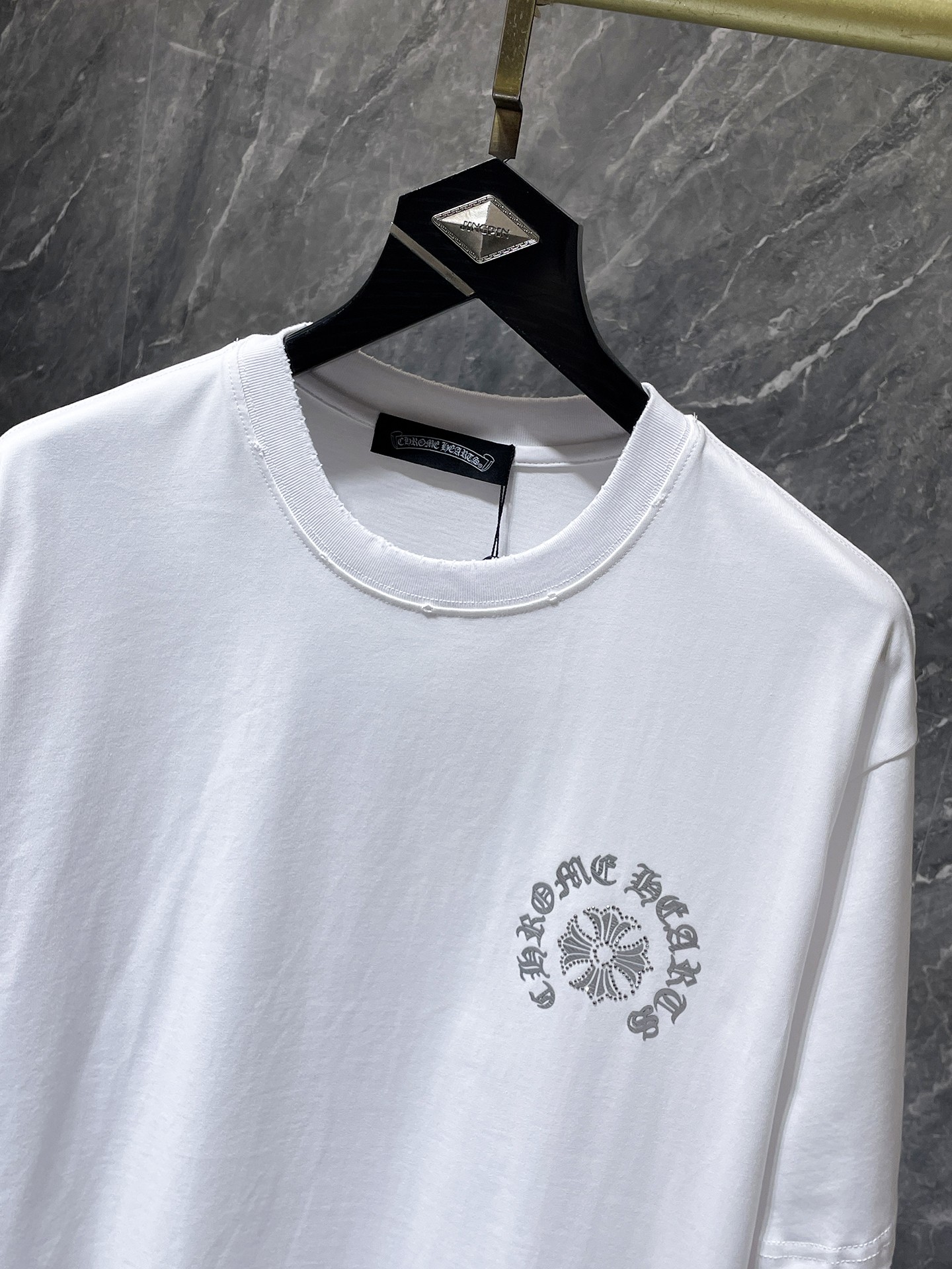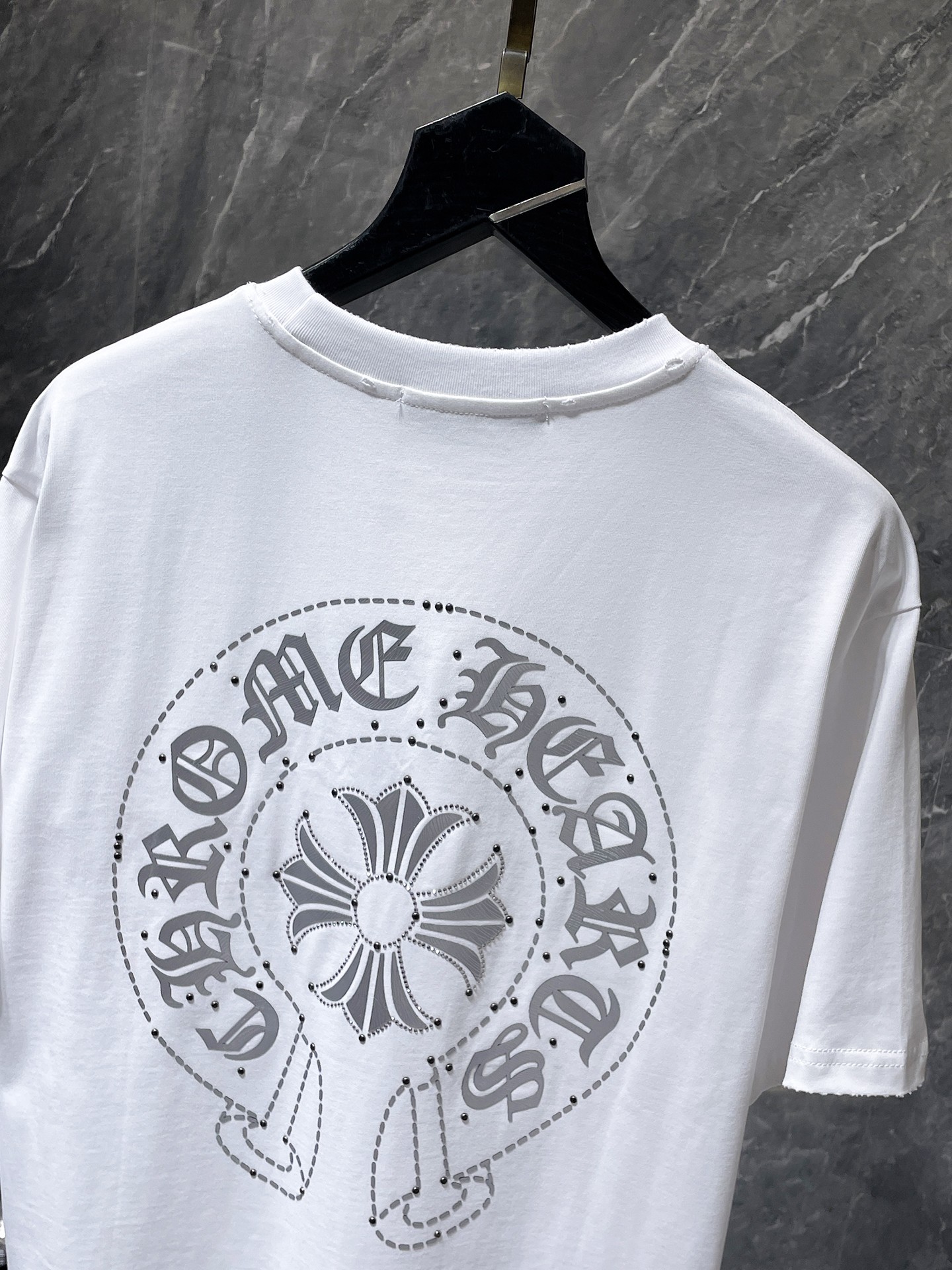 这款衣服是AAAAA 1:1 质量 (非常棒). 使用了和原版一模一样的材料. 商标部分也保持了和克罗心/Chrome Hearts一样. 图片拍摄是实物衣服拍摄, 您所收到的实物保证和我们图片一模一样.