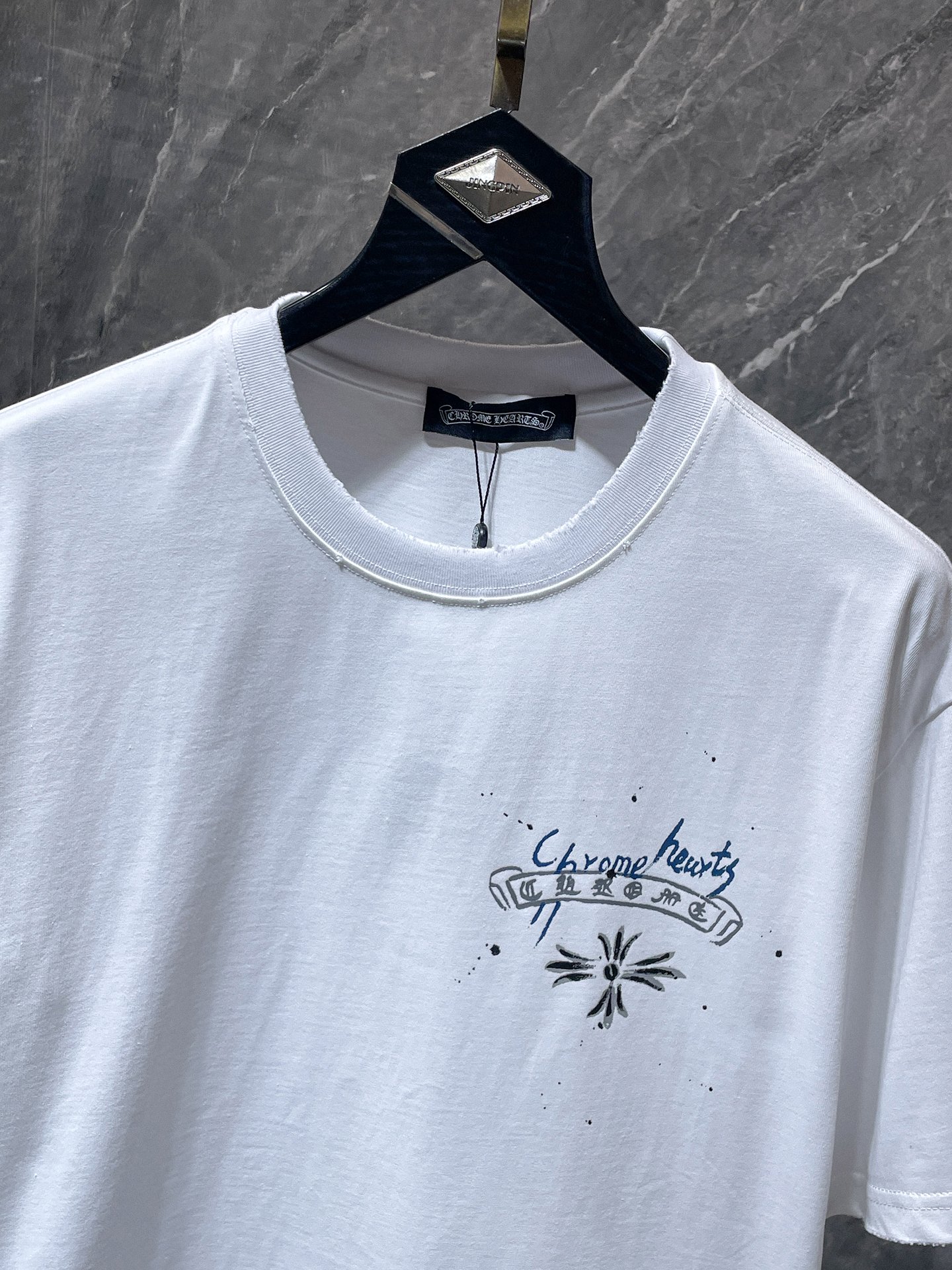 这款衣服是AAAAA 1:1 质量 (非常棒). 使用了和原版一模一样的材料. 商标部分也保持了和克罗心/Chrome Hearts一样. 图片拍摄是实物衣服拍摄, 您所收到的实物保证和我们图片一模一样.