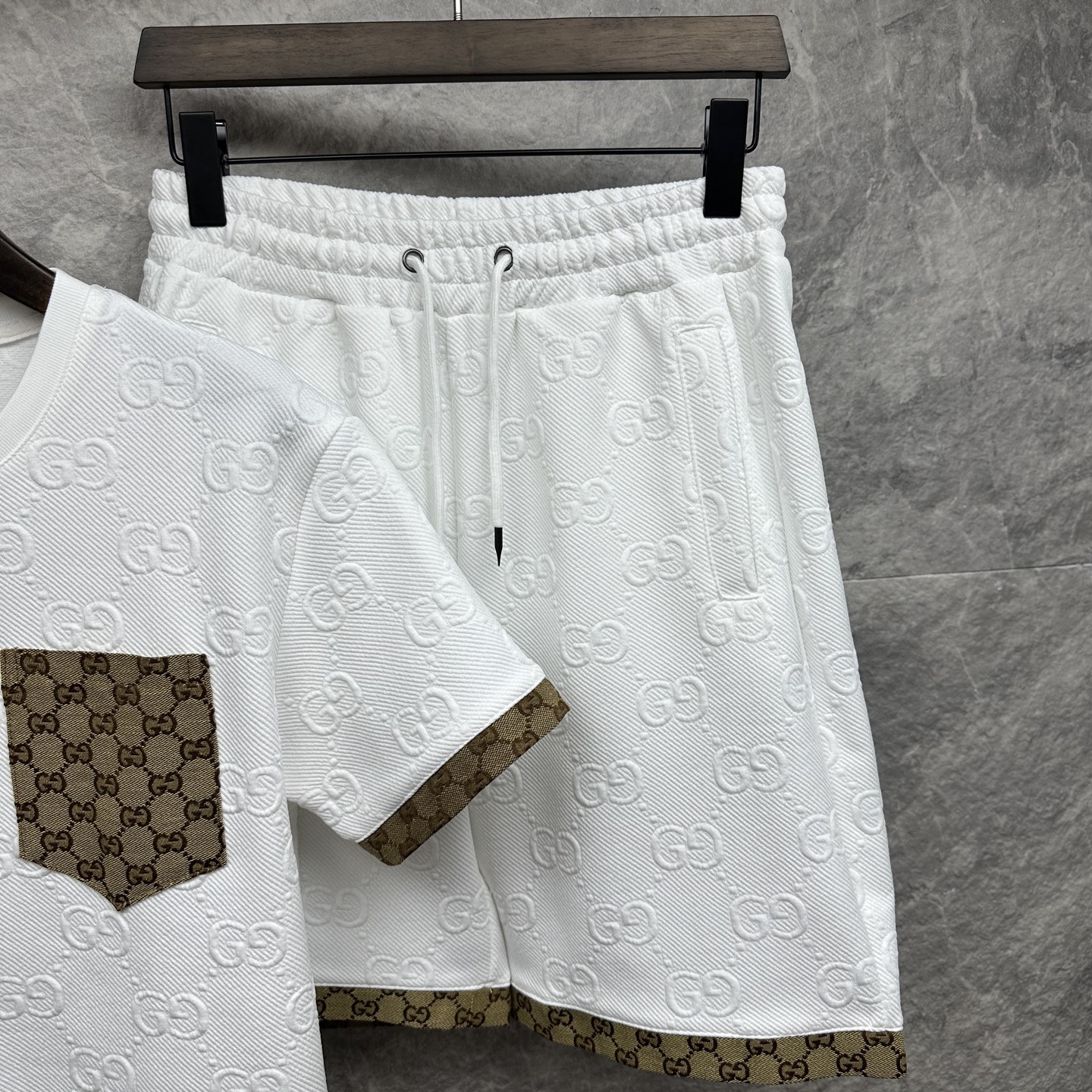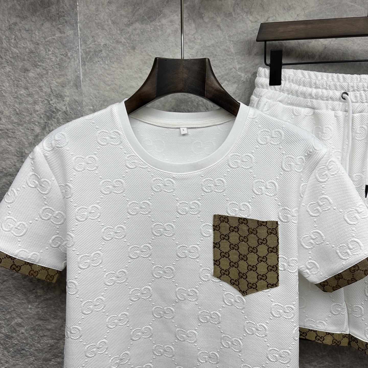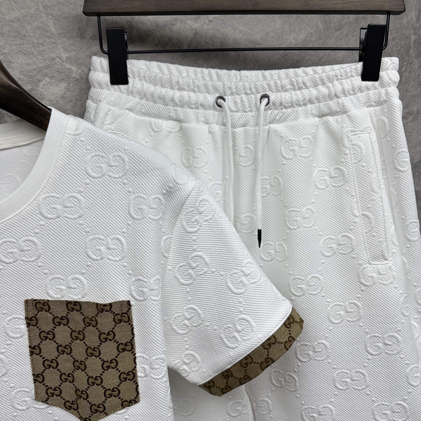 这款衣服是AAAAA 1:1 质量 (非常棒). 使用了和原版一模一样的材料. 商标部分也保持了和古奇/Gucci一样. 图片拍摄是实物衣服拍摄, 您所收到的实物保证和我们图片一模一样.