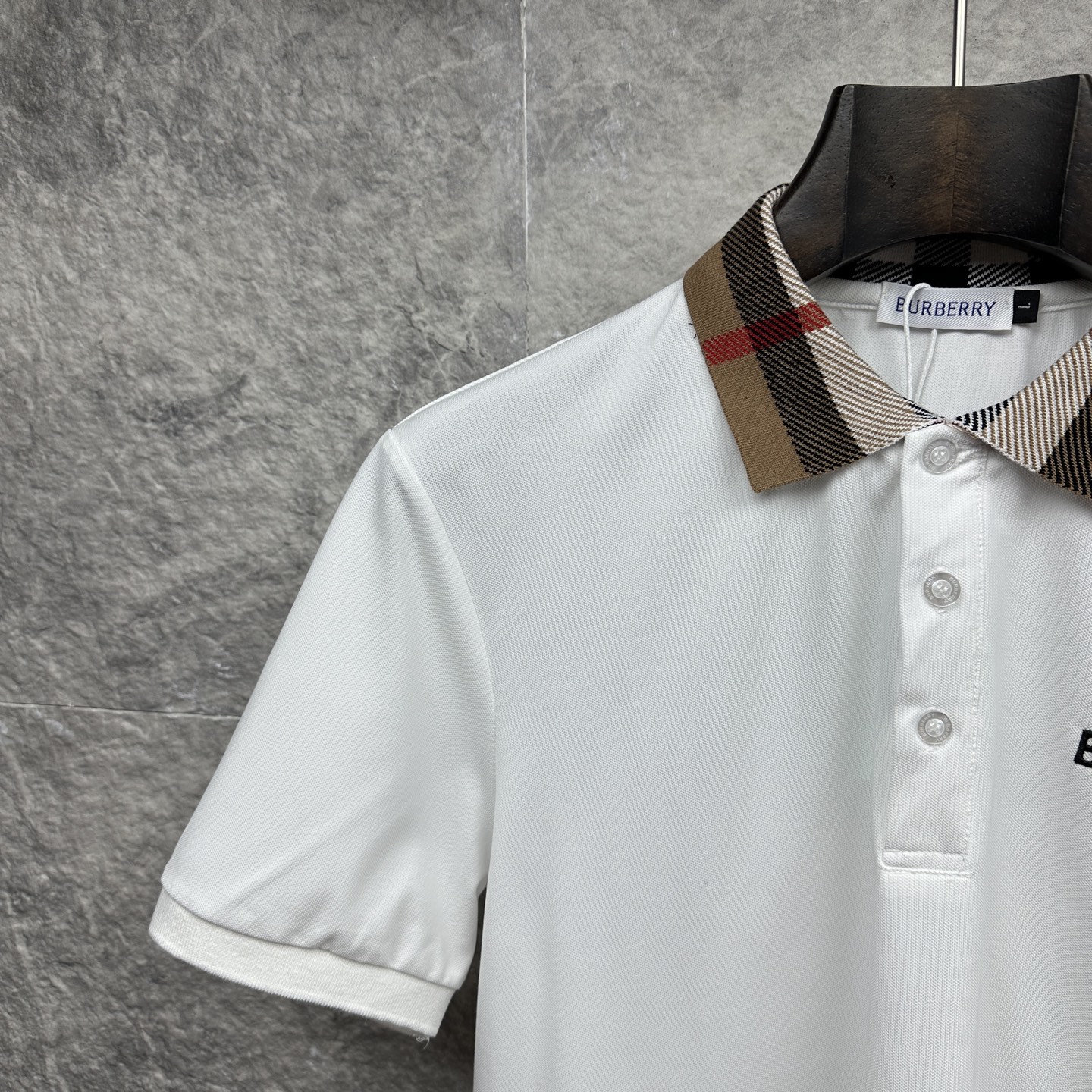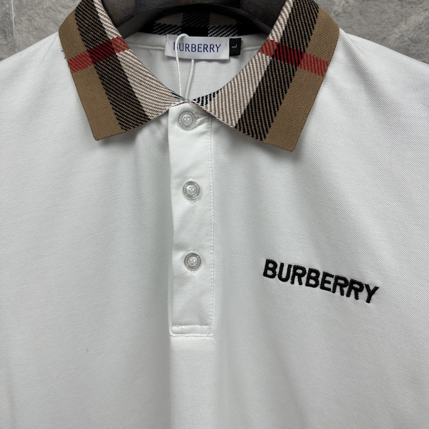 这款衣服是AAAAA 1:1 质量 (非常棒). 使用了和原版一模一样的材料. 商标部分也保持了和巴宝莉/Burberry一样. 图片拍摄是实物衣服拍摄, 您所收到的实物保证和我们图片一模一样.