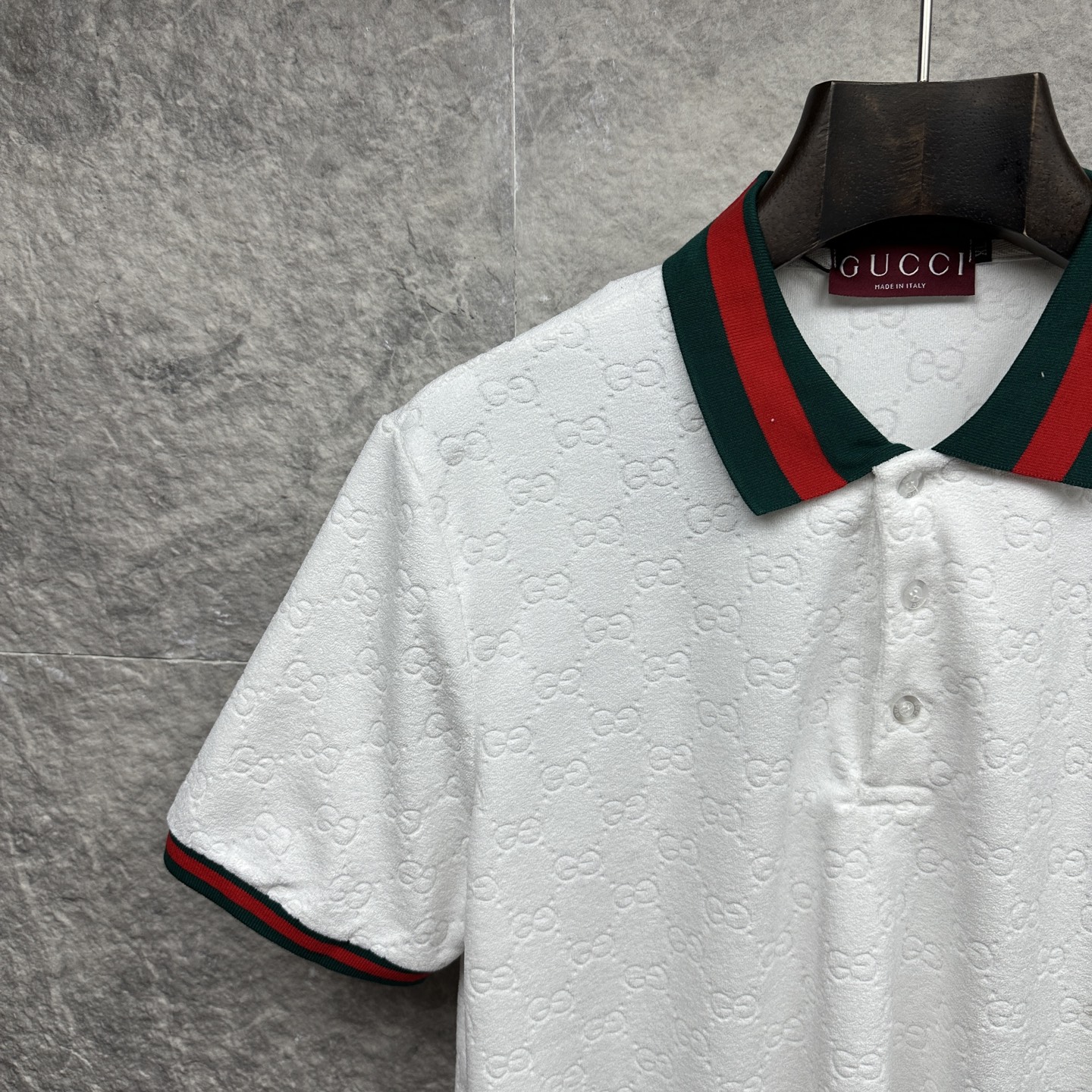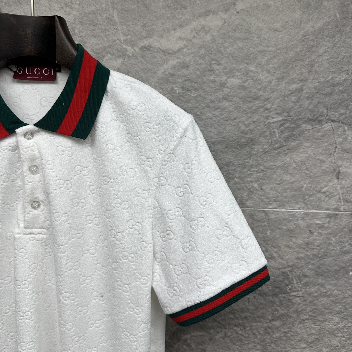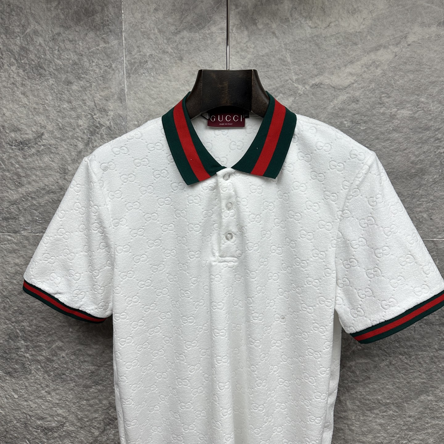 这款衣服是AAAAA 1:1 质量 (非常棒). 使用了和原版一模一样的材料. 商标部分也保持了和古奇/Gucci一样. 图片拍摄是实物衣服拍摄, 您所收到的实物保证和我们图片一模一样.