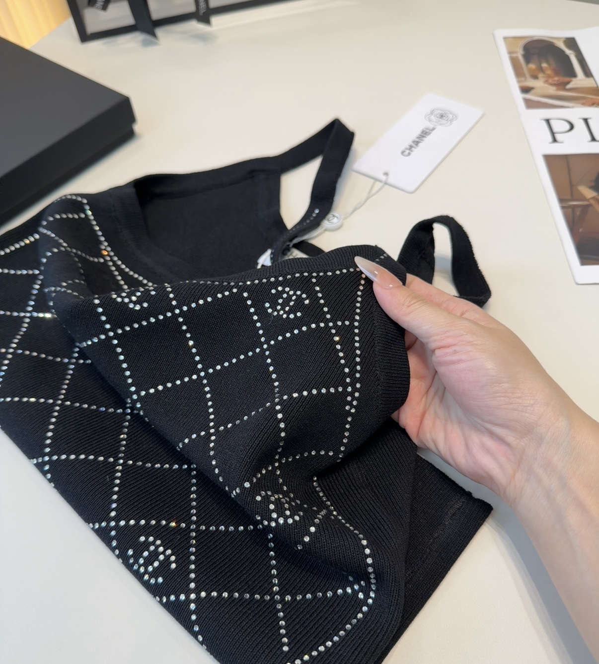 这款围巾是AAAAA 1:1 质量 (非常棒). 使用了和原版一模一样的材料. 商标部分也保持了和香奈儿/Chanel一样. 图片拍摄是实物围巾拍摄, 您所收到的实物保证和我们图片一模一样.