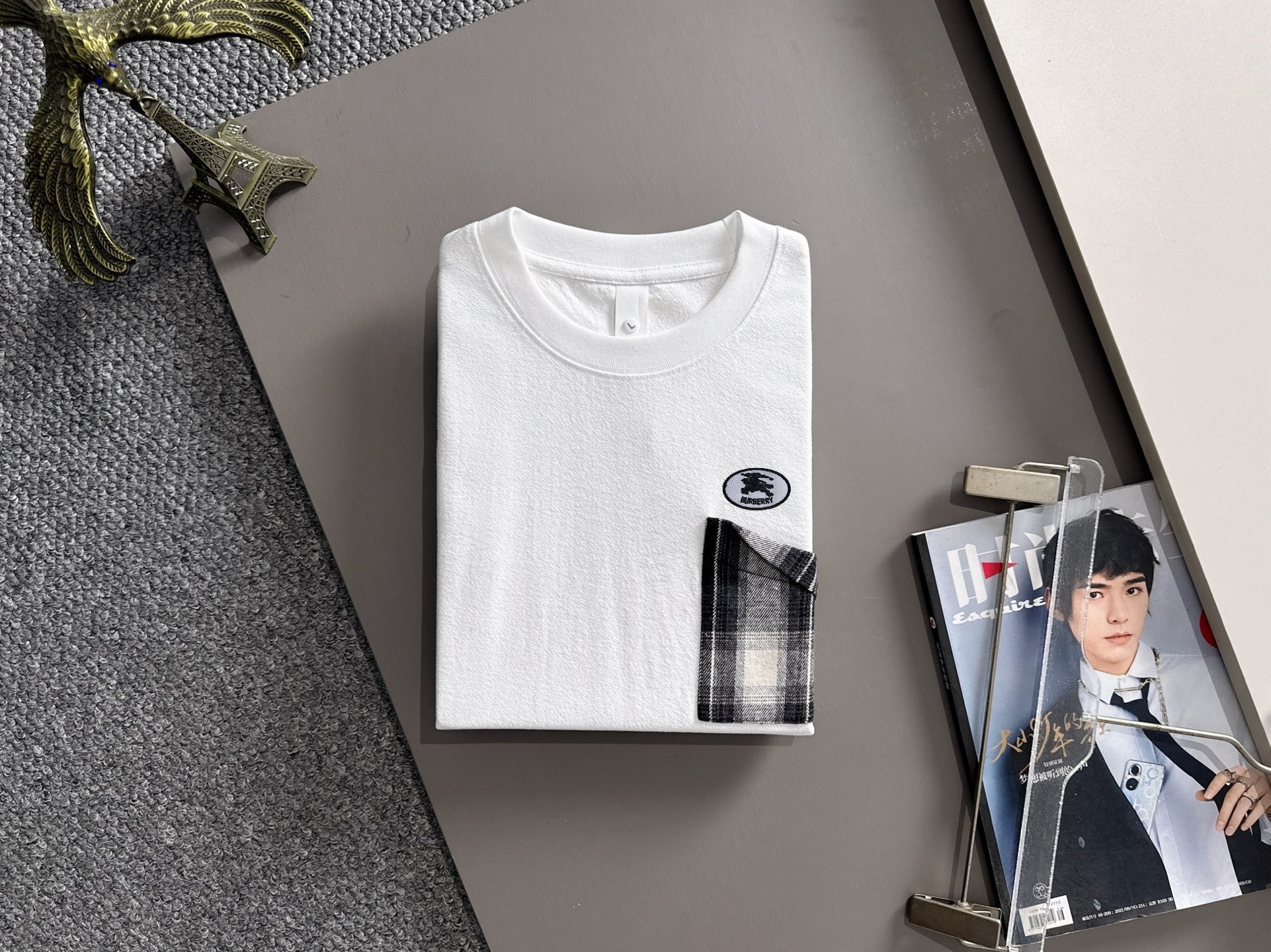 这款衣服是AAAAA 1:1 质量 (非常棒). 使用了和原版一模一样的材料. 商标部分也保持了和巴宝莉/Burberry一样. 图片拍摄是实物衣服拍摄, 您所收到的实物保证和我们图片一模一样.