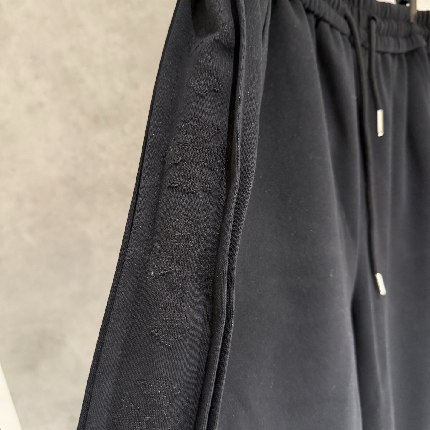 这款衣服是AAAAA 1:1 质量 (非常棒). 使用了和原版一模一样的材料. 商标部分也保持了和克罗心/Chrome Hearts一样. 图片拍摄是实物衣服拍摄, 您所收到的实物保证和我们图片一模一样.