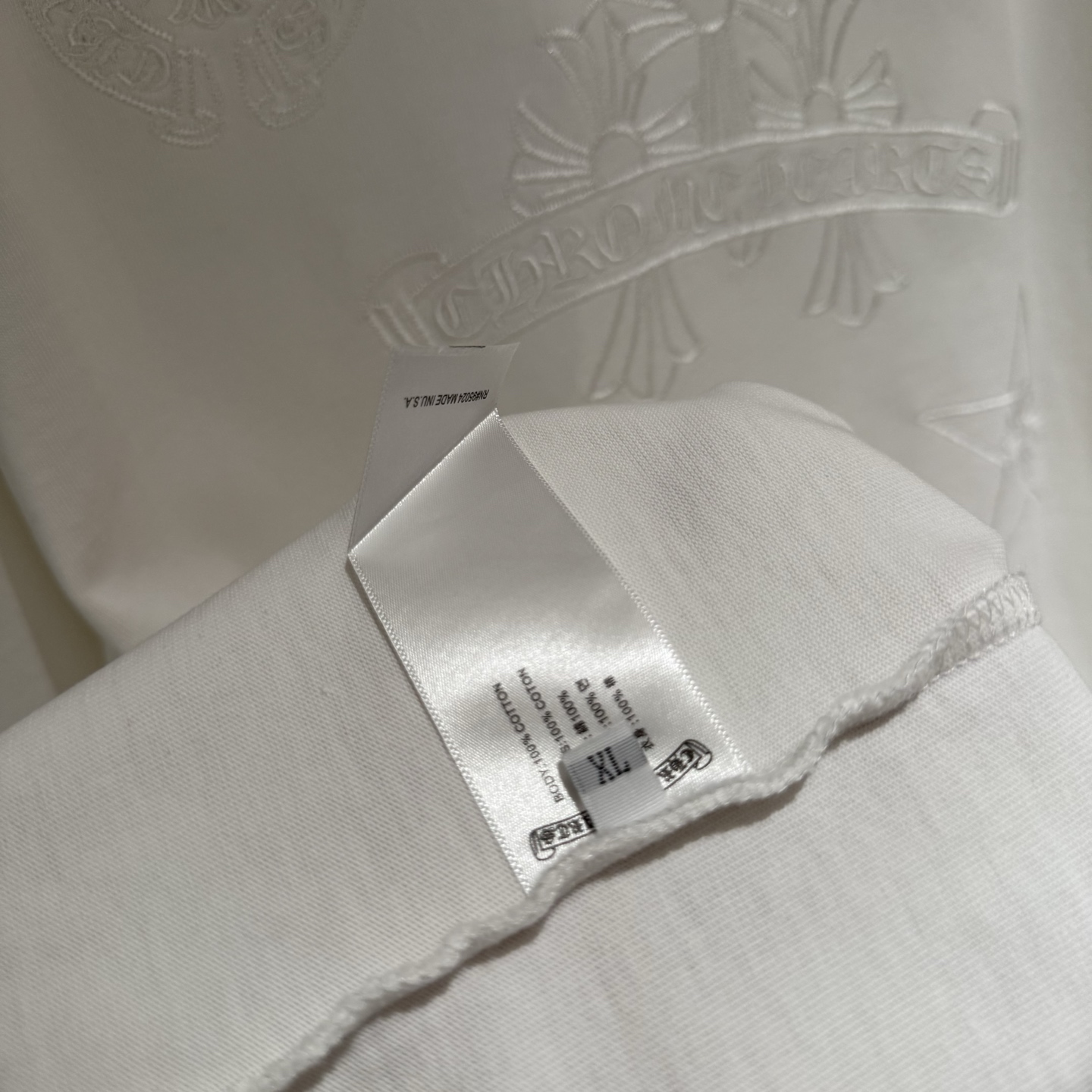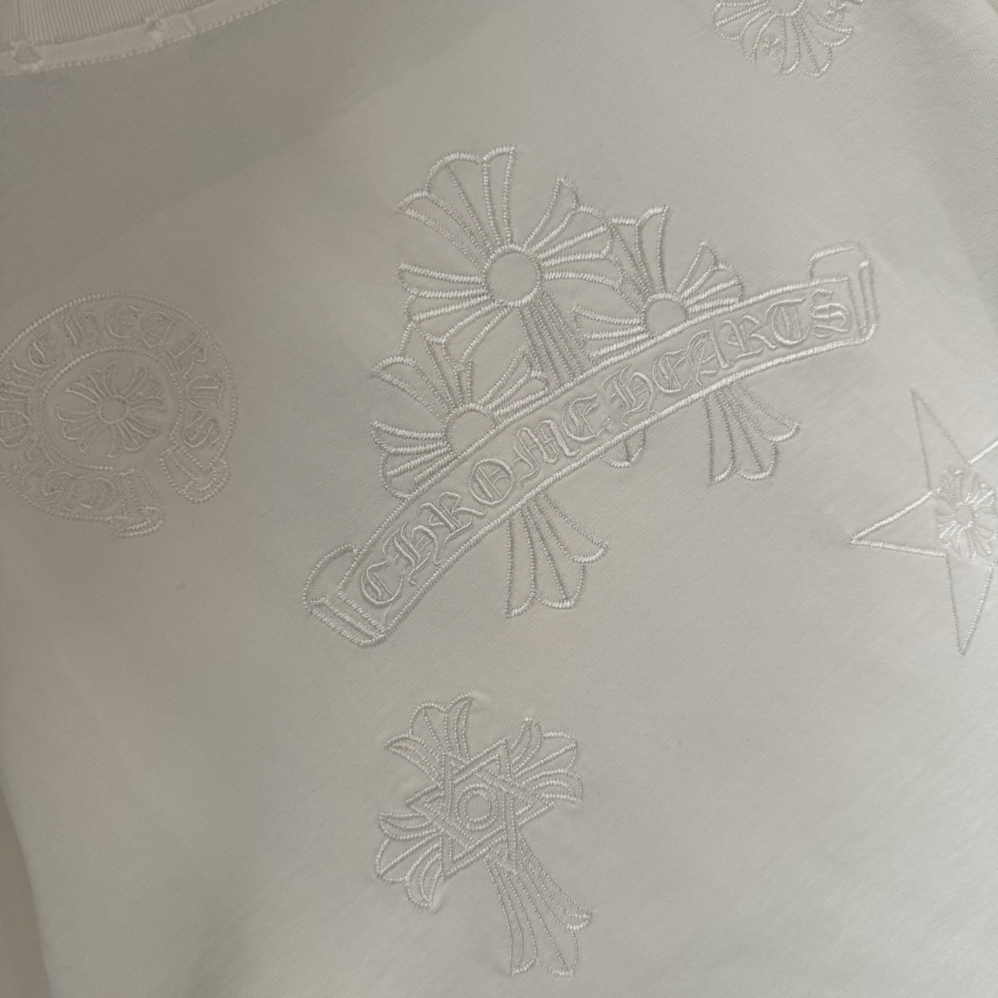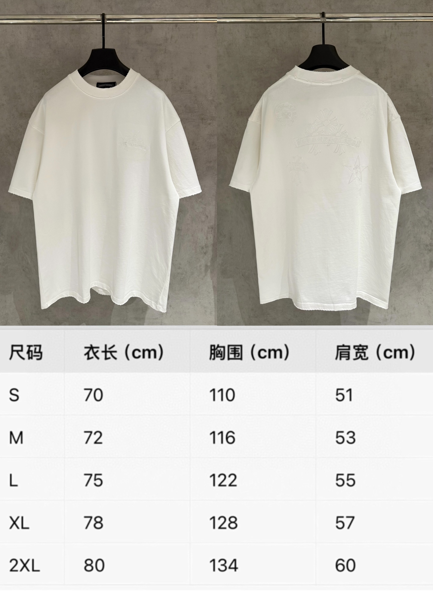 这款衣服是AAAAA 1:1 质量 (非常棒). 使用了和原版一模一样的材料. 商标部分也保持了和克罗心/Chrome Hearts一样. 图片拍摄是实物衣服拍摄, 您所收到的实物保证和我们图片一模一样.