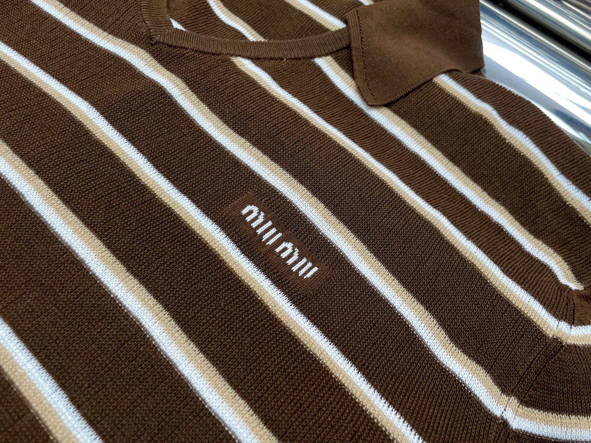 这款衣服是AAAAA 1:1 质量 (非常棒). 使用了和原版一模一样的材料. 商标部分也保持了和缪缪/Miu Miu一样. 图片拍摄是实物衣服拍摄, 您所收到的实物保证和我们图片一模一样.