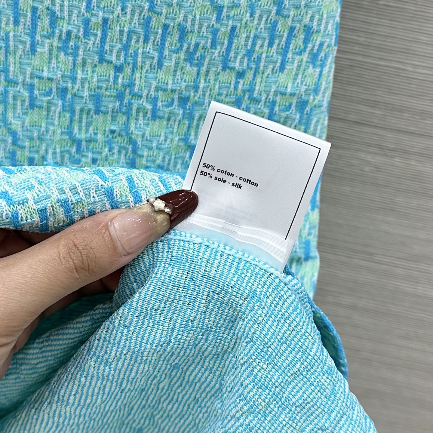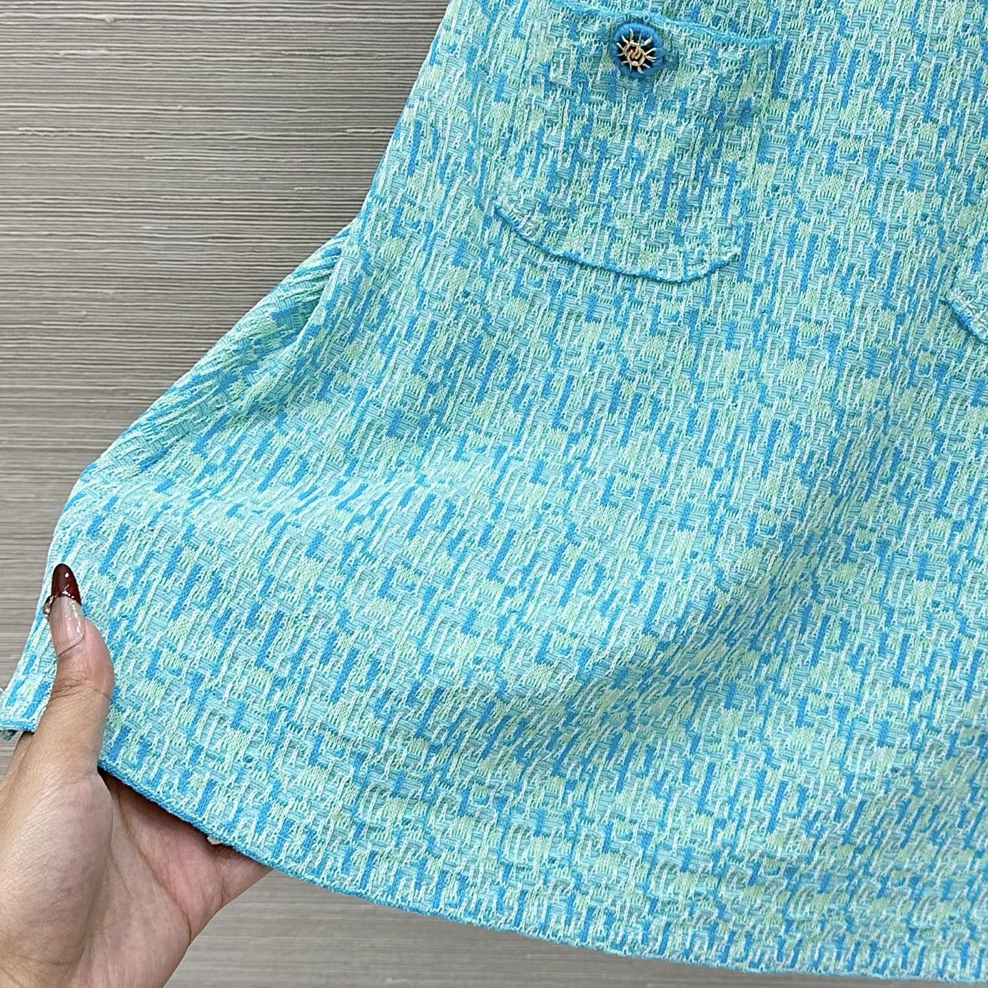 这款衣服是AAAAA 1:1 质量 (非常棒). 使用了和原版一模一样的材料. 商标部分也保持了和香奈儿/Chanel一样. 图片拍摄是实物衣服拍摄, 您所收到的实物保证和我们图片一模一样.