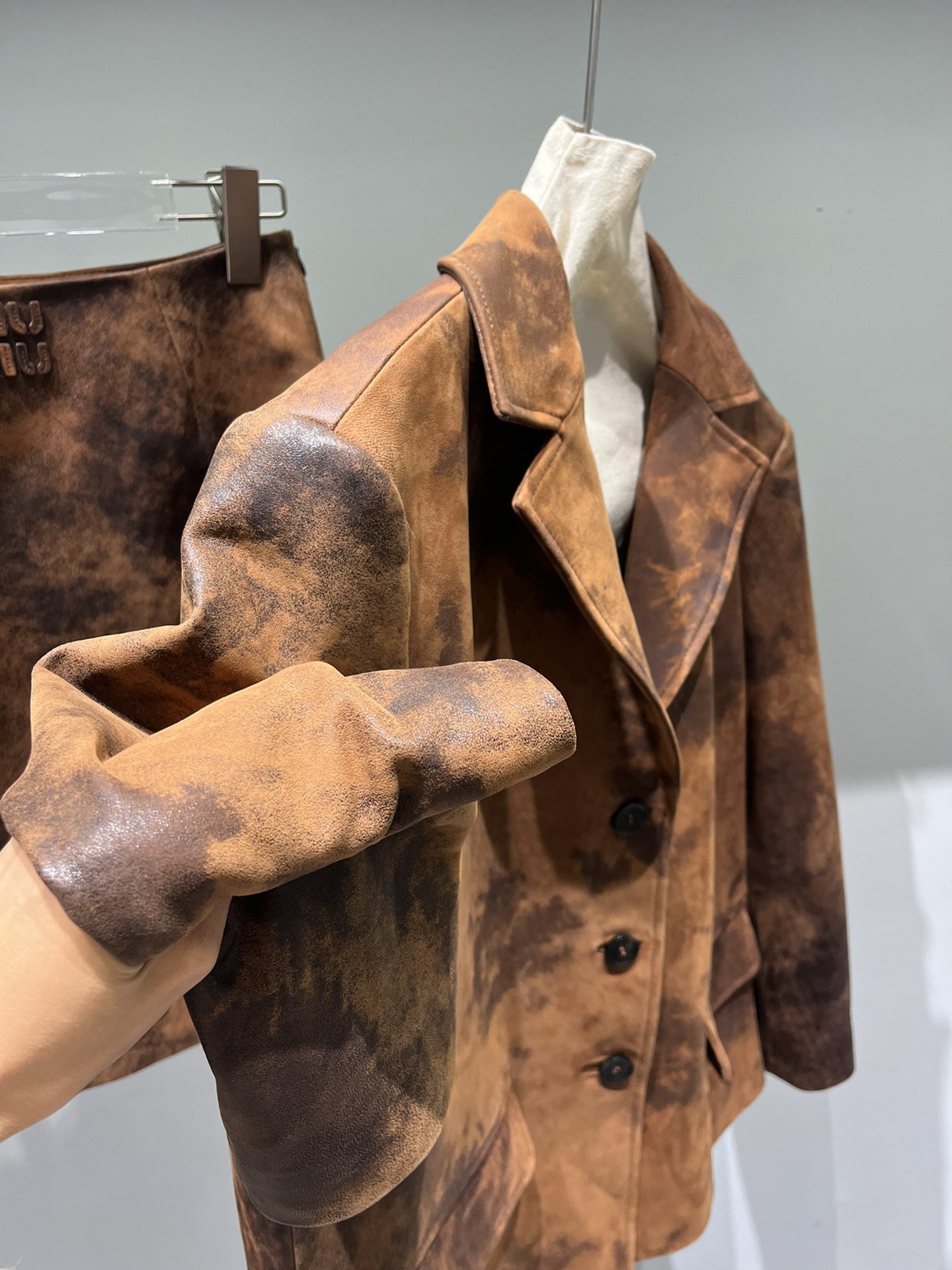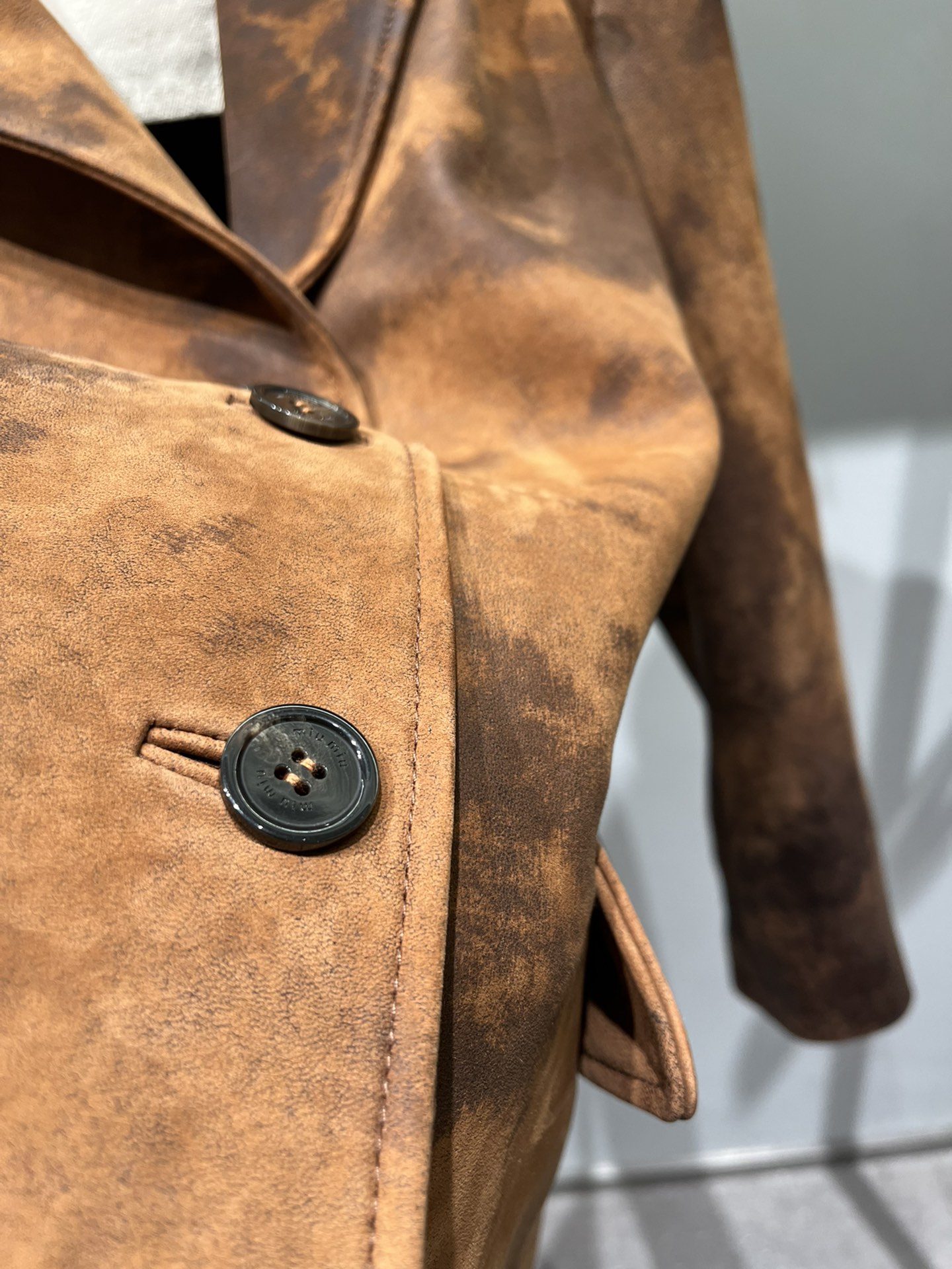 这款衣服是AAAAA 1:1 质量 (非常棒). 使用了和原版一模一样的材料. 商标部分也保持了和缪缪/Miu Miu一样. 图片拍摄是实物衣服拍摄, 您所收到的实物保证和我们图片一模一样.