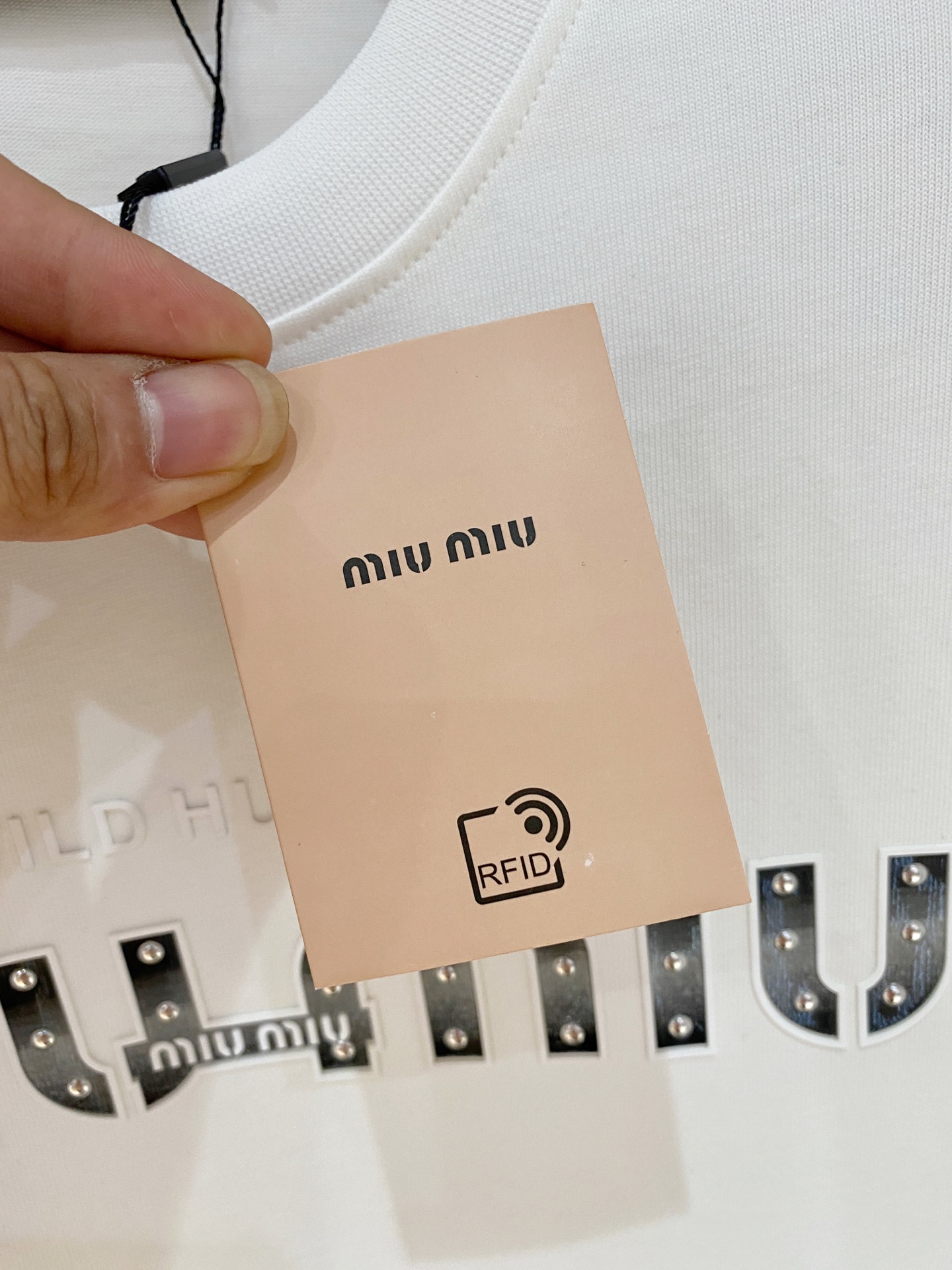这款衣服是AAAAA 1:1 质量 (非常棒). 使用了和原版一模一样的材料. 商标部分也保持了和缪缪/Miu Miu一样. 图片拍摄是实物衣服拍摄, 您所收到的实物保证和我们图片一模一样.