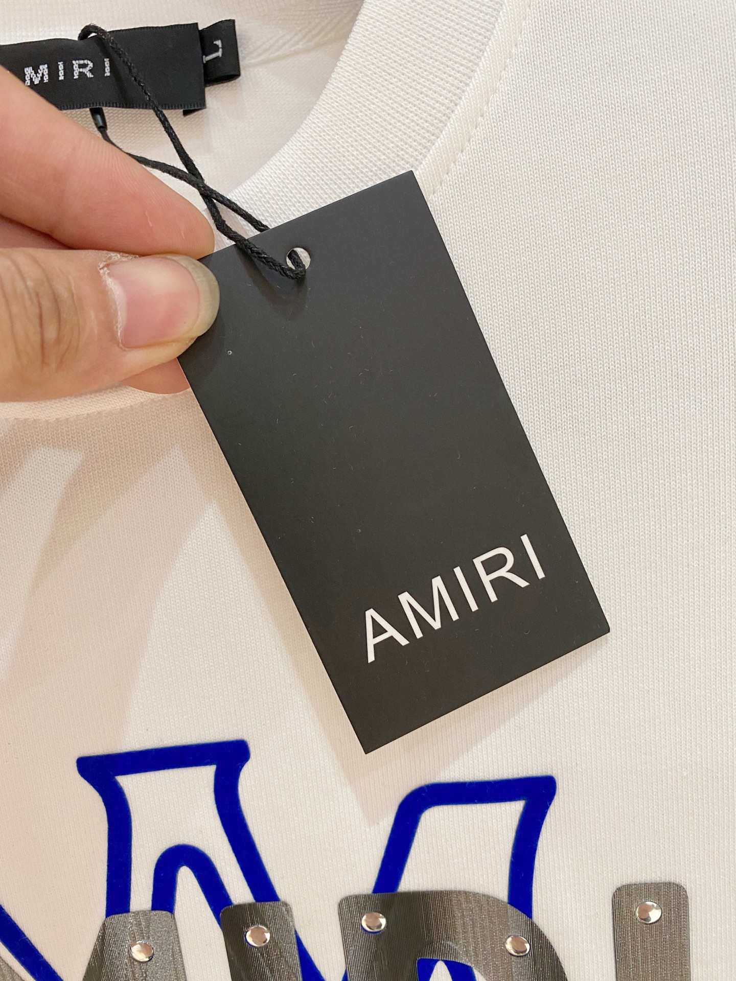 这款衣服是AAAAA 1:1 质量 (非常棒). 使用了和原版一模一样的材料. 商标部分也保持了和AMIRI一样. 图片拍摄是实物衣服拍摄, 您所收到的实物保证和我们图片一模一样.