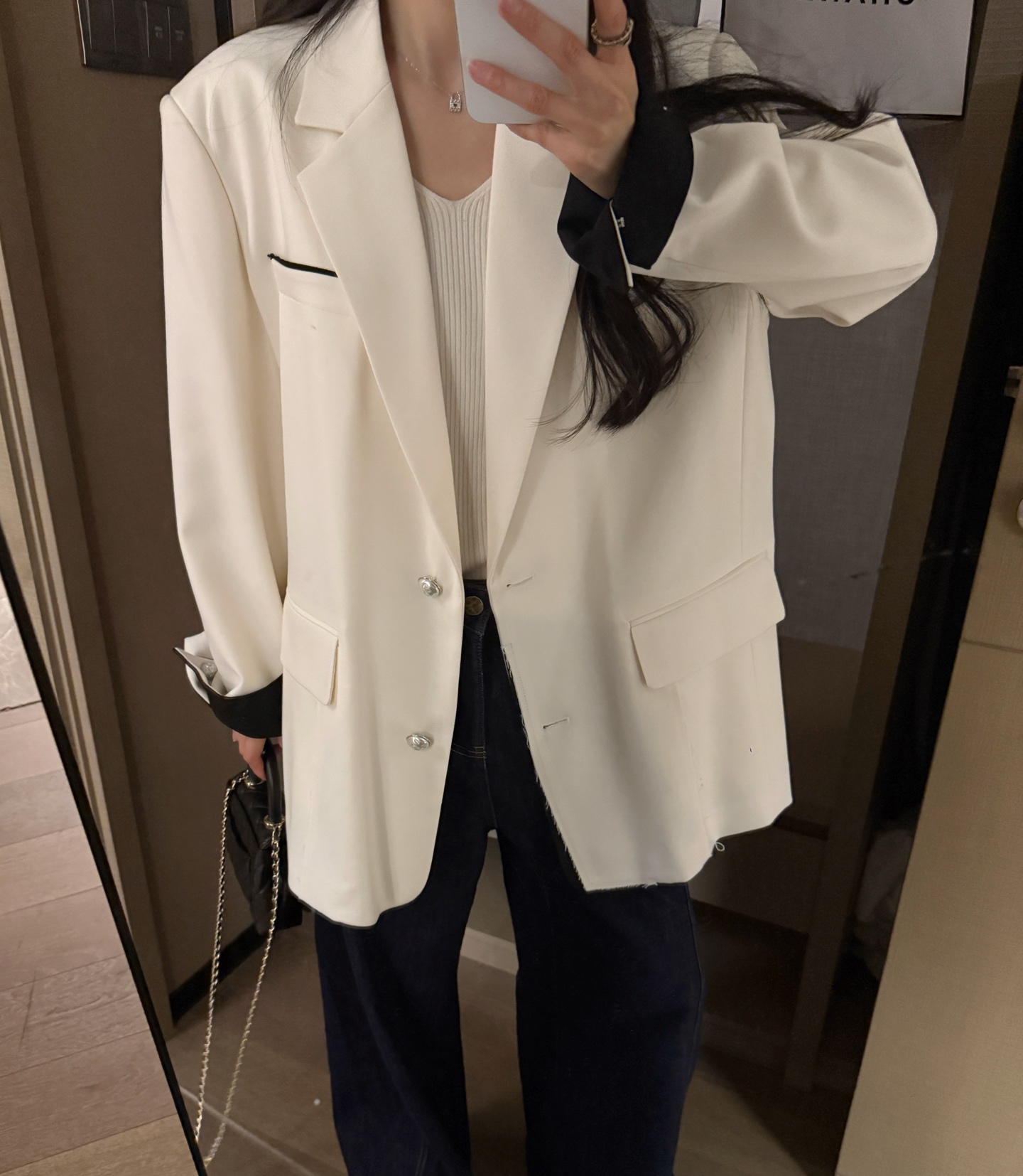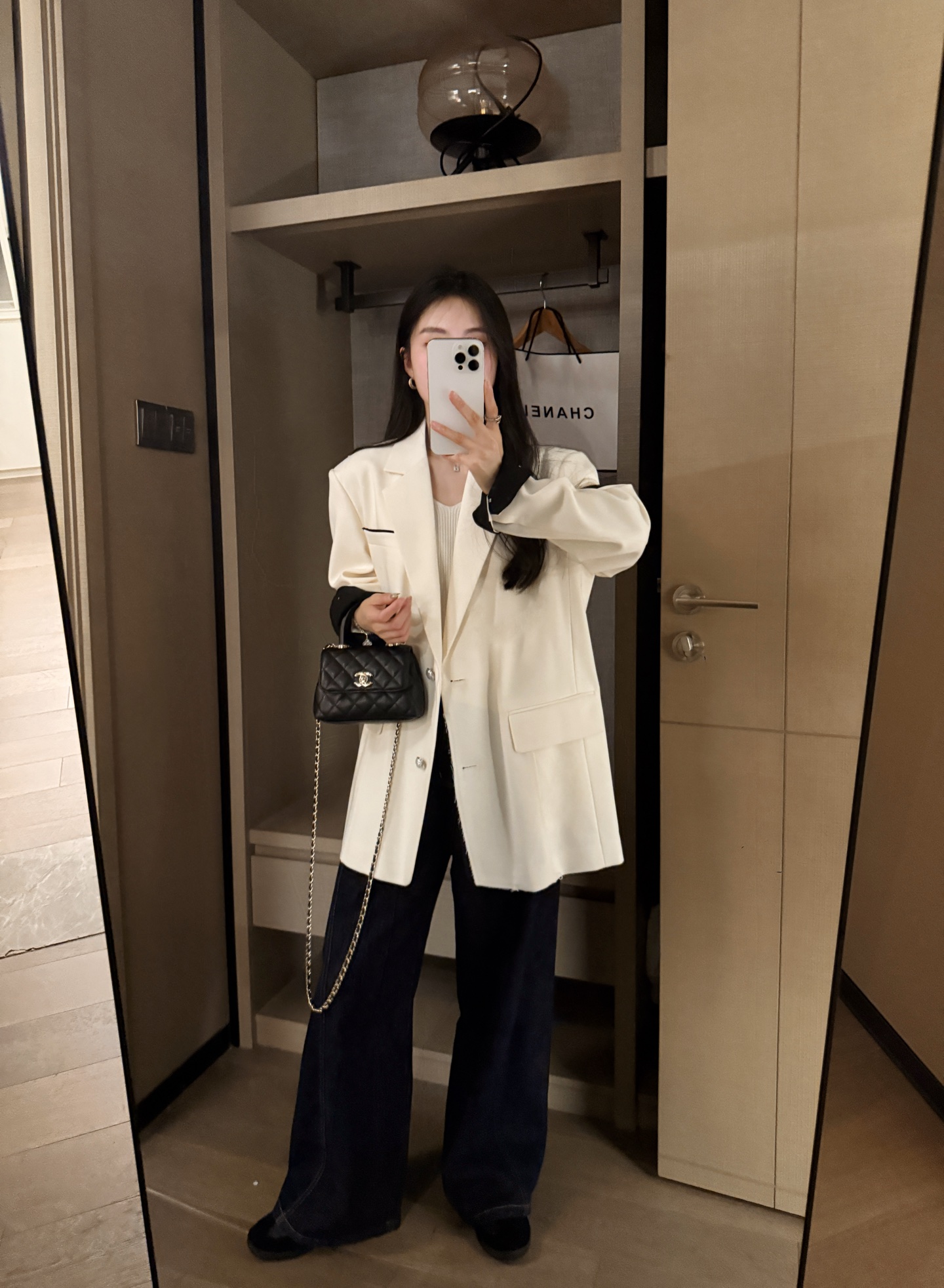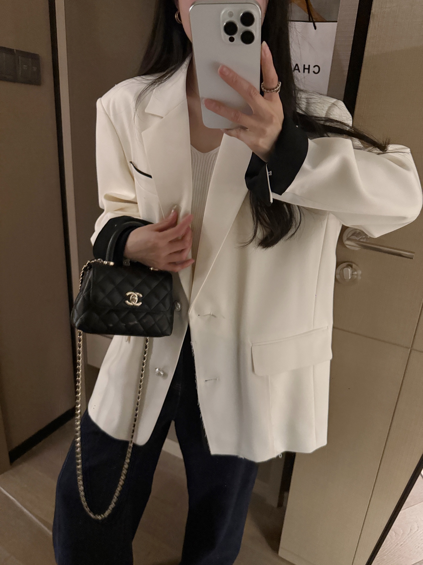这款衣服是AAAAA 1:1 质量 (非常棒). 使用了和原版一模一样的材料. 商标部分也保持了和香奈儿/Chanel一样. 图片拍摄是实物衣服拍摄, 您所收到的实物保证和我们图片一模一样.