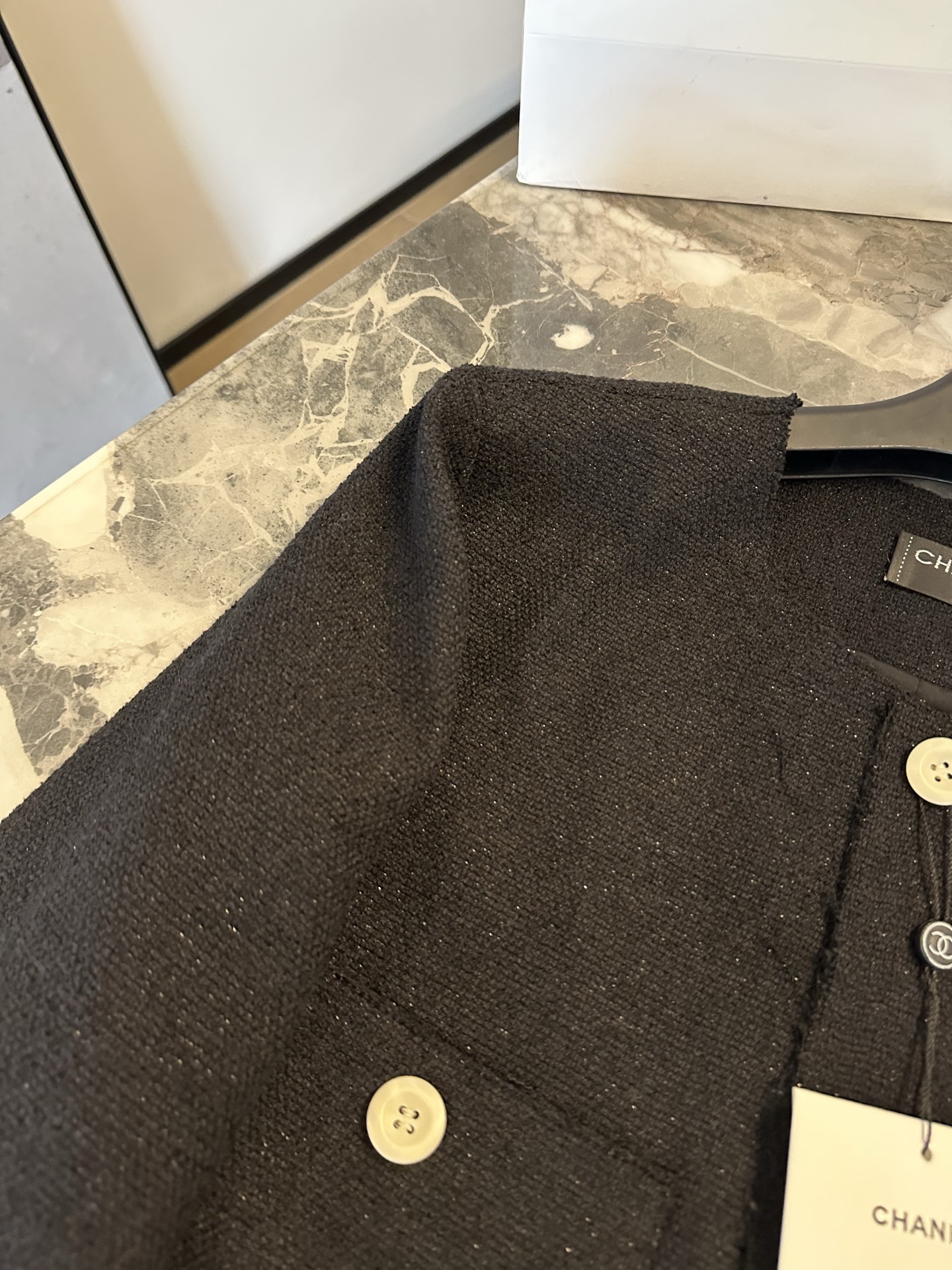 这款衣服是AAAAA 1:1 质量 (非常棒). 使用了和原版一模一样的材料. 商标部分也保持了和香奈儿/Chanel一样. 图片拍摄是实物衣服拍摄, 您所收到的实物保证和我们图片一模一样.