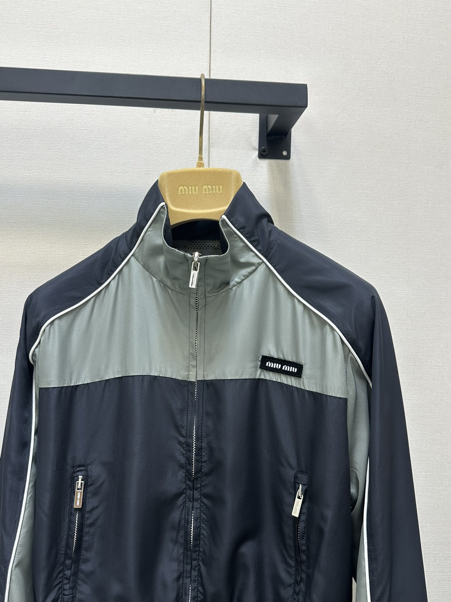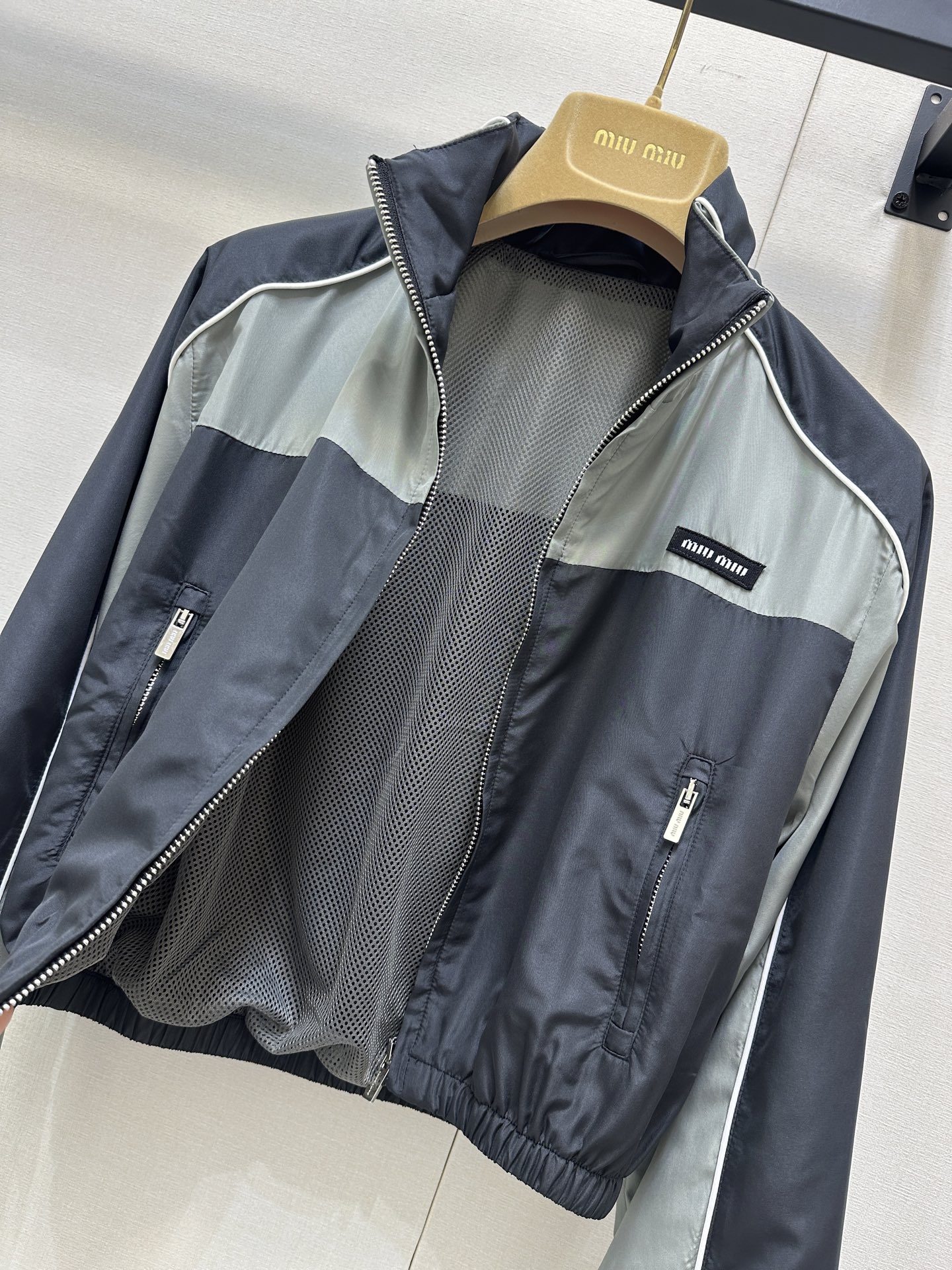 这款衣服是AAAAA 1:1 质量 (非常棒). 使用了和原版一模一样的材料. 商标部分也保持了和缪缪/Miu Miu一样. 图片拍摄是实物衣服拍摄, 您所收到的实物保证和我们图片一模一样.