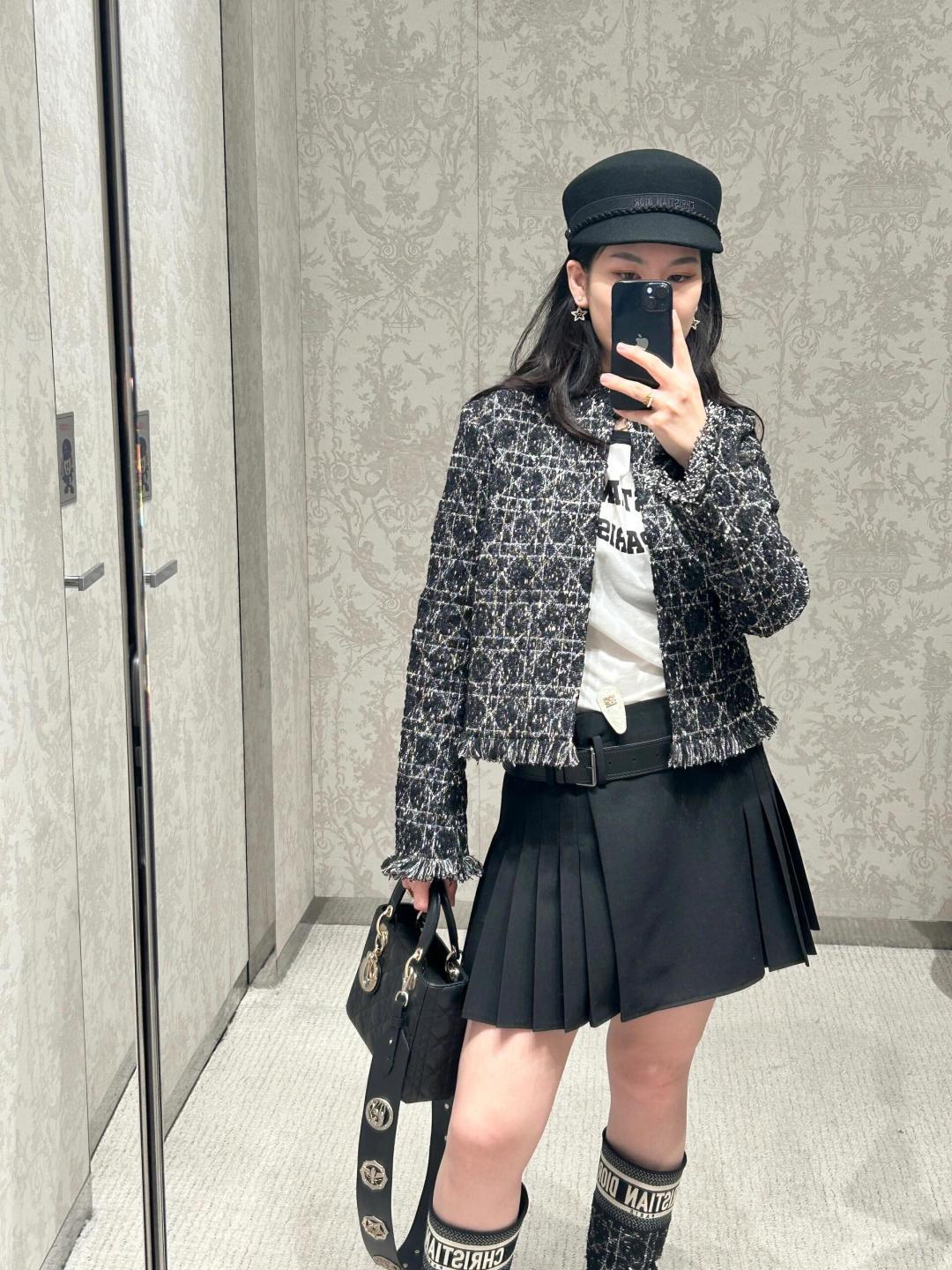 这款衣服是AAAAA 1:1 质量 (非常棒). 使用了和原版一模一样的材料. 商标部分也保持了和缪缪/Miu Miu一样. 图片拍摄是实物衣服拍摄, 您所收到的实物保证和我们图片一模一样.