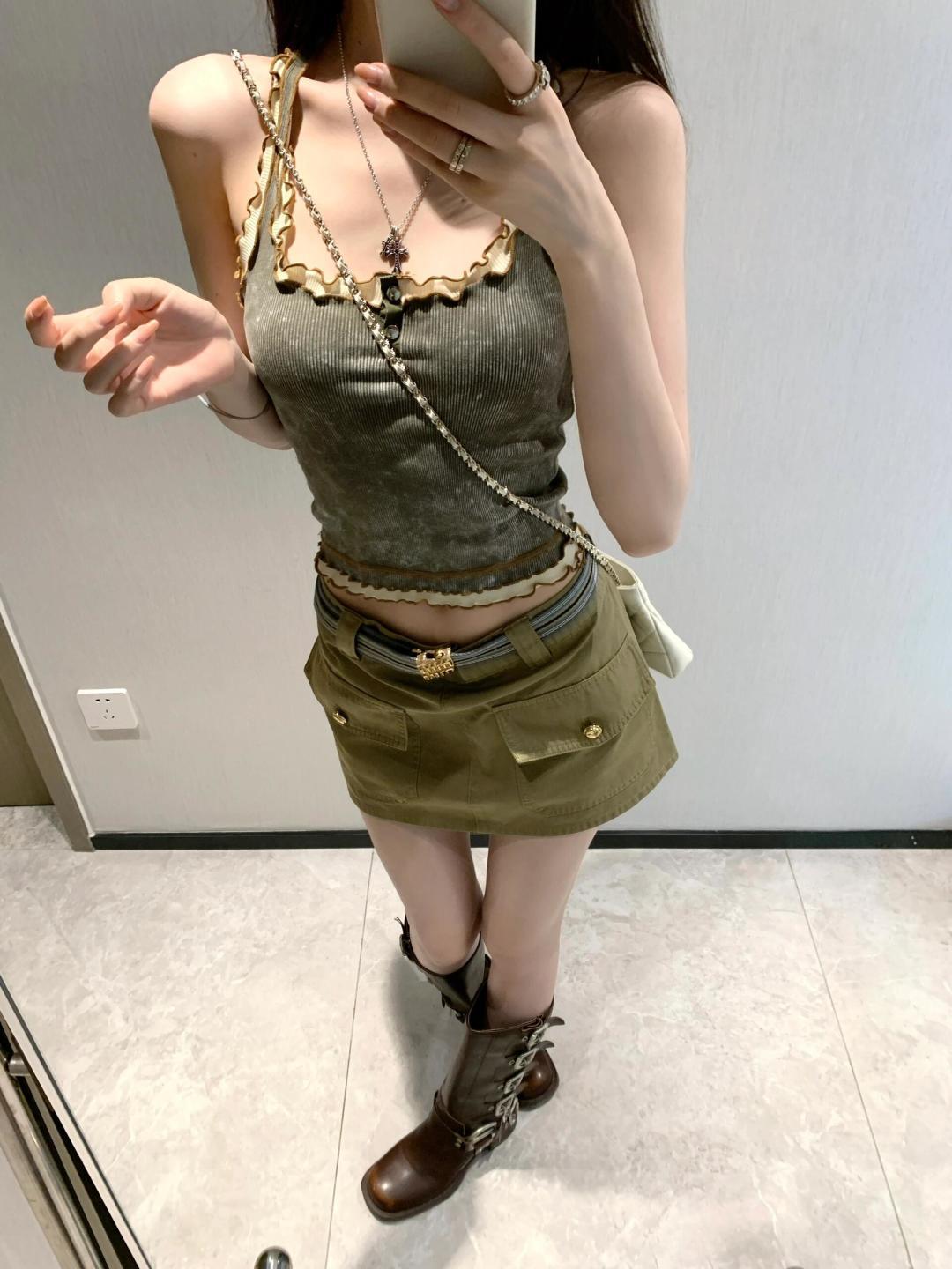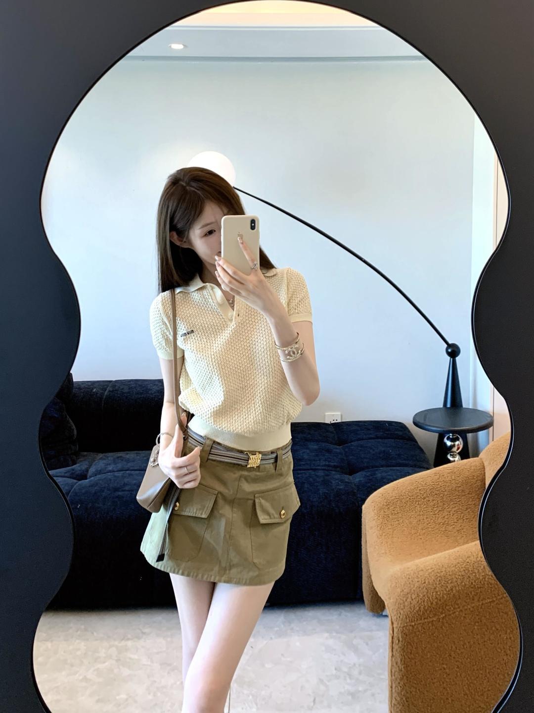 这款衣服是AAAAA 1:1 质量 (非常棒). 使用了和原版一模一样的材料. 商标部分也保持了和缪缪/Miu Miu一样. 图片拍摄是实物衣服拍摄, 您所收到的实物保证和我们图片一模一样.