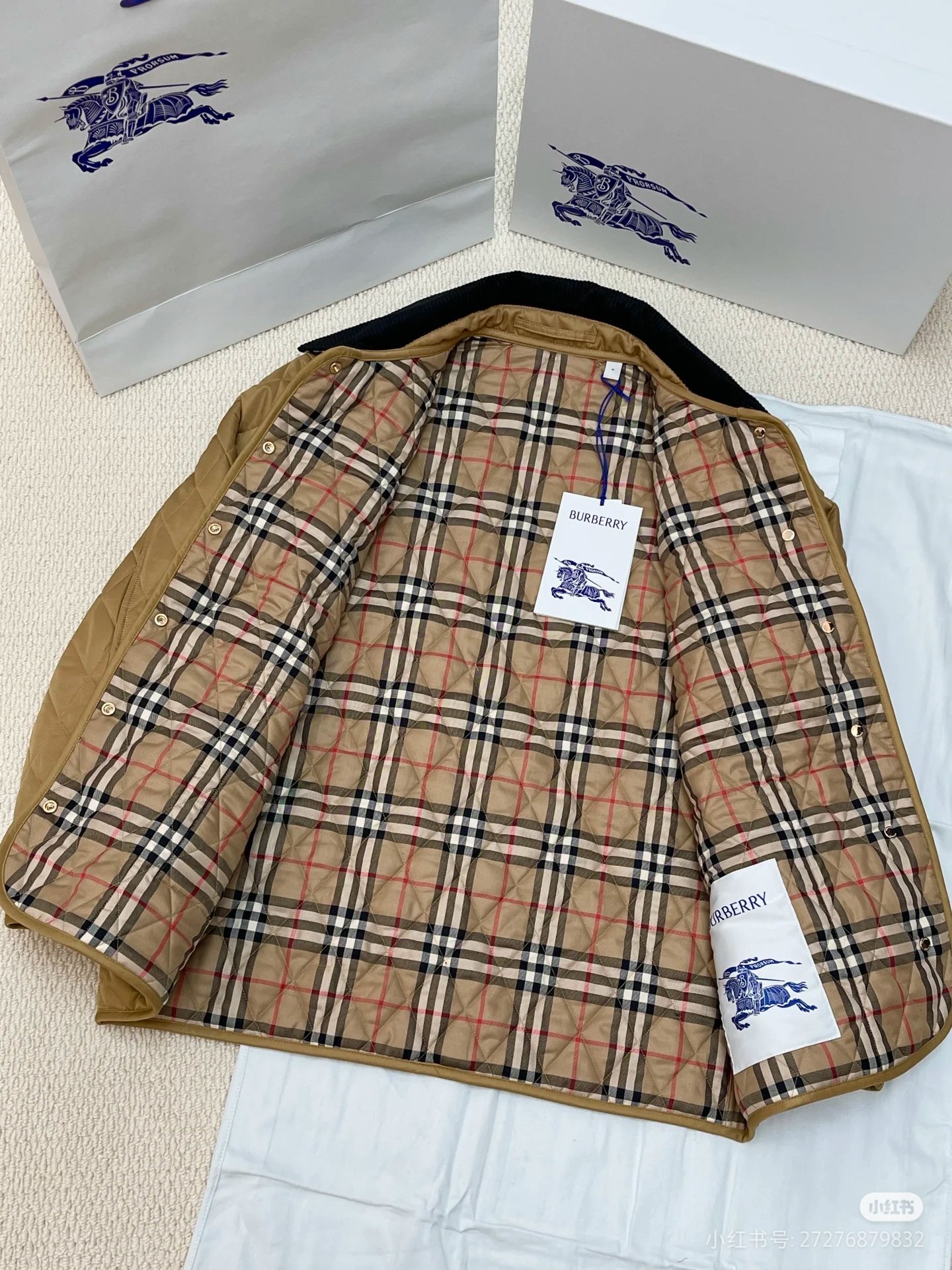 这款衣服是AAAAA 1:1 质量 (非常棒). 使用了和原版一模一样的材料. 商标部分也保持了和巴宝莉/Burberry一样. 图片拍摄是实物衣服拍摄, 您所收到的实物保证和我们图片一模一样.